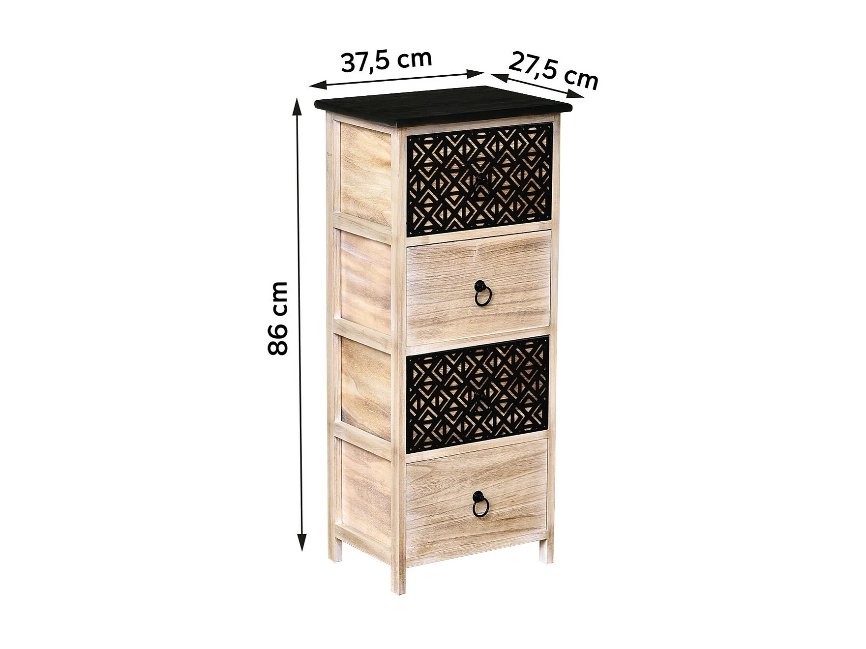 Meuble de rangement en Bois naturel et Noir avec 4 Tiroirs H 86 cm