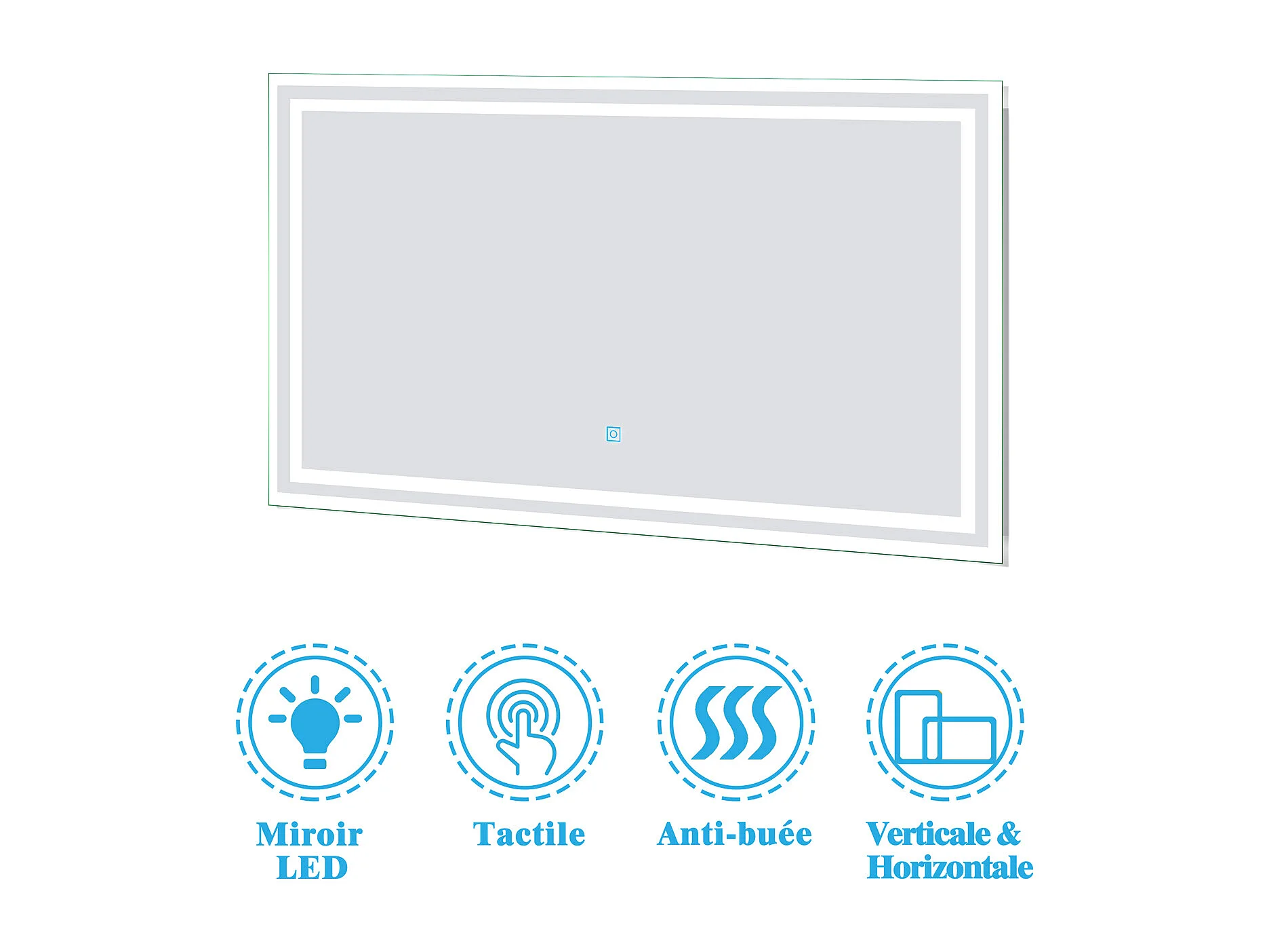 Meuble Salle de Bain Blanc 80cm simple vasque + colonne + miroir LED