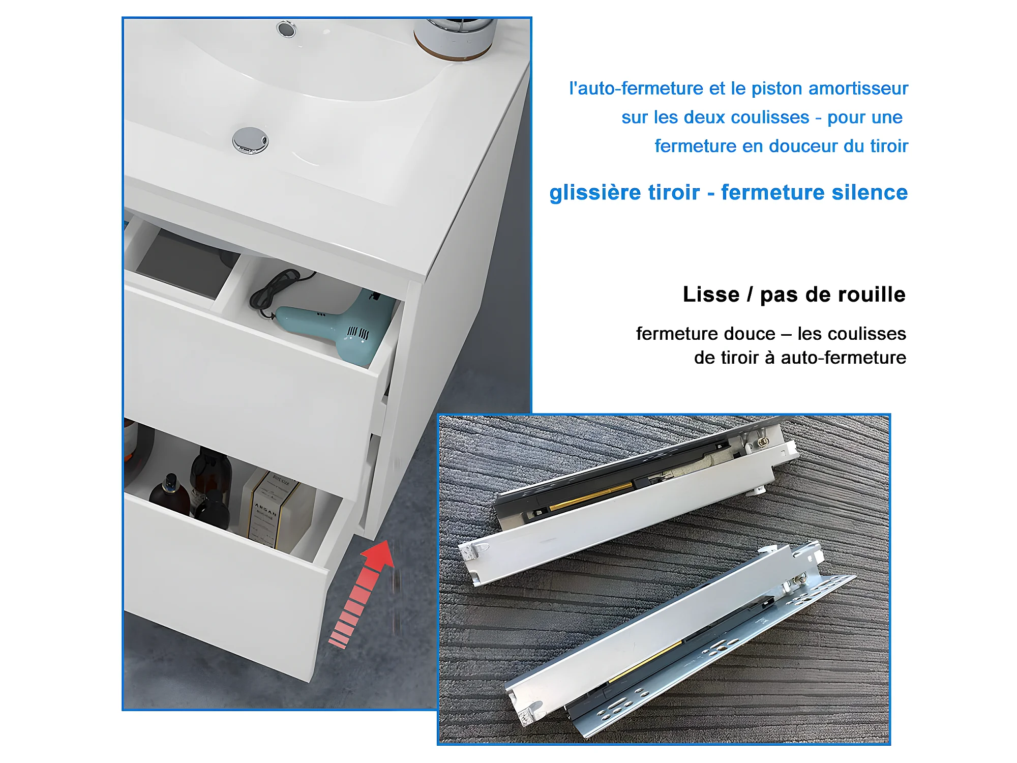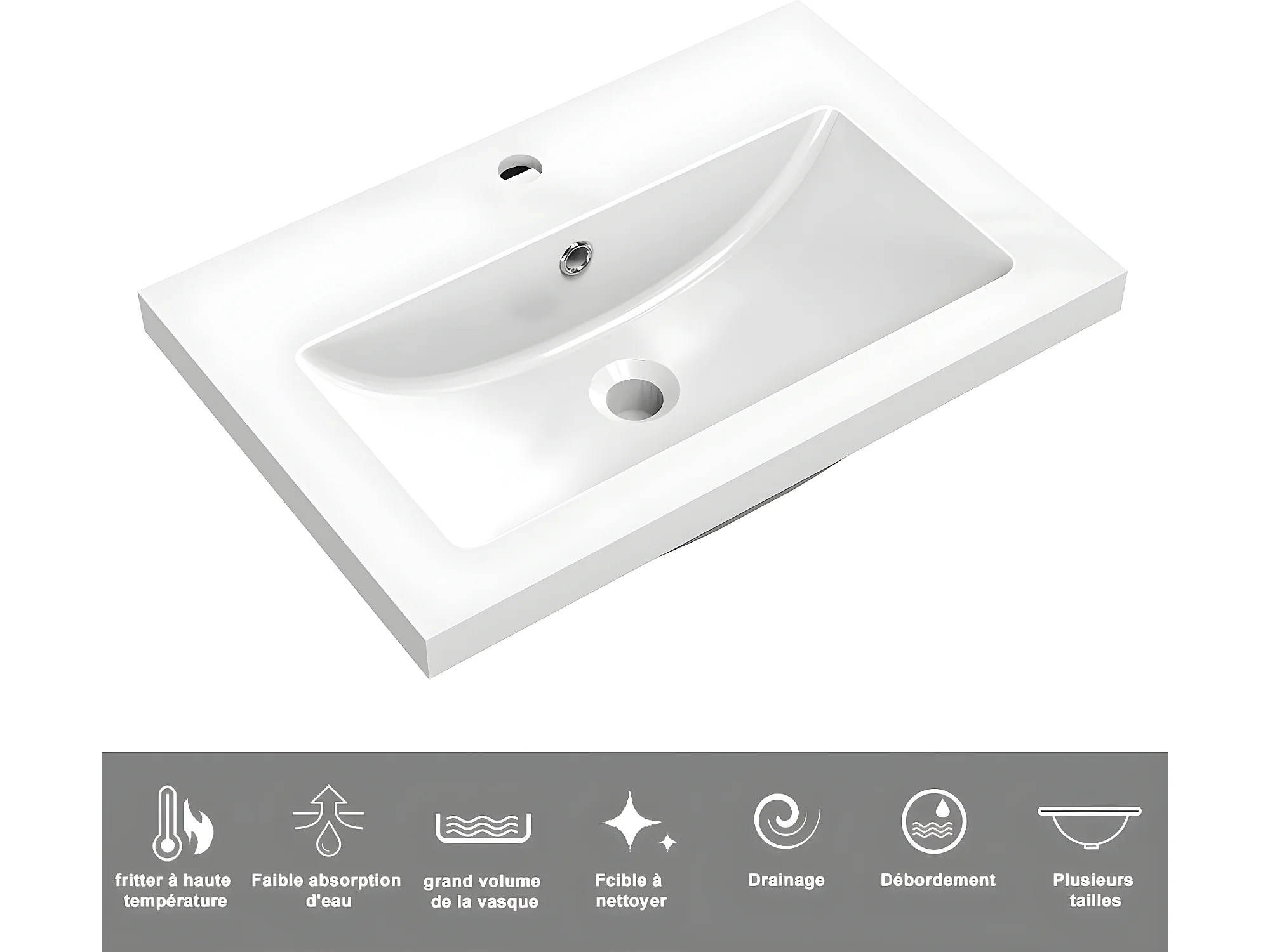 Meuble salle de bain blanc deux tiroirs avec une vasque à suspendre 60x38.5x52cm Aica