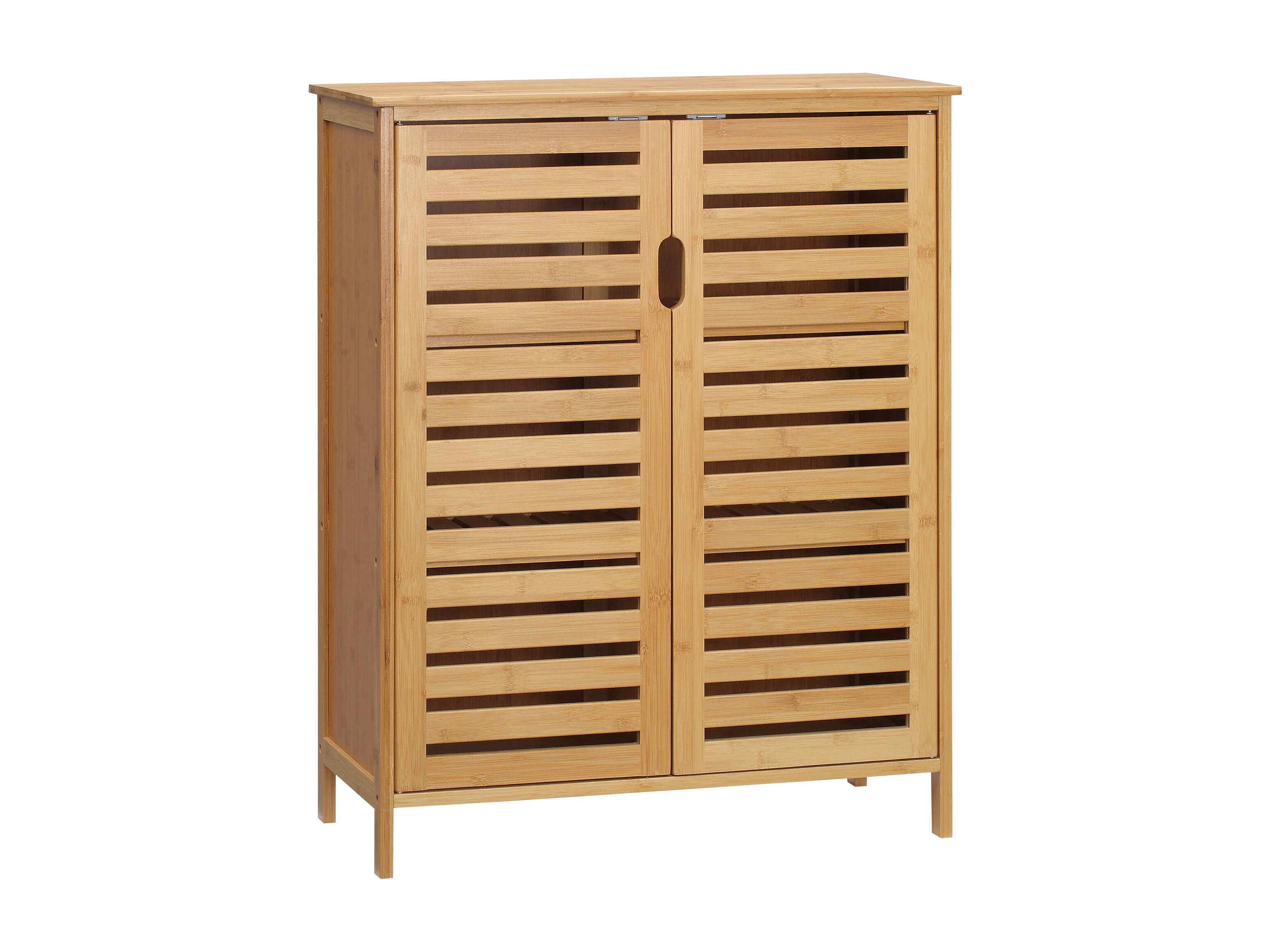 Meuble salle de bain bois bambou 2 portes 2 étagères dim. 60 x 30 x 120 cm naturel