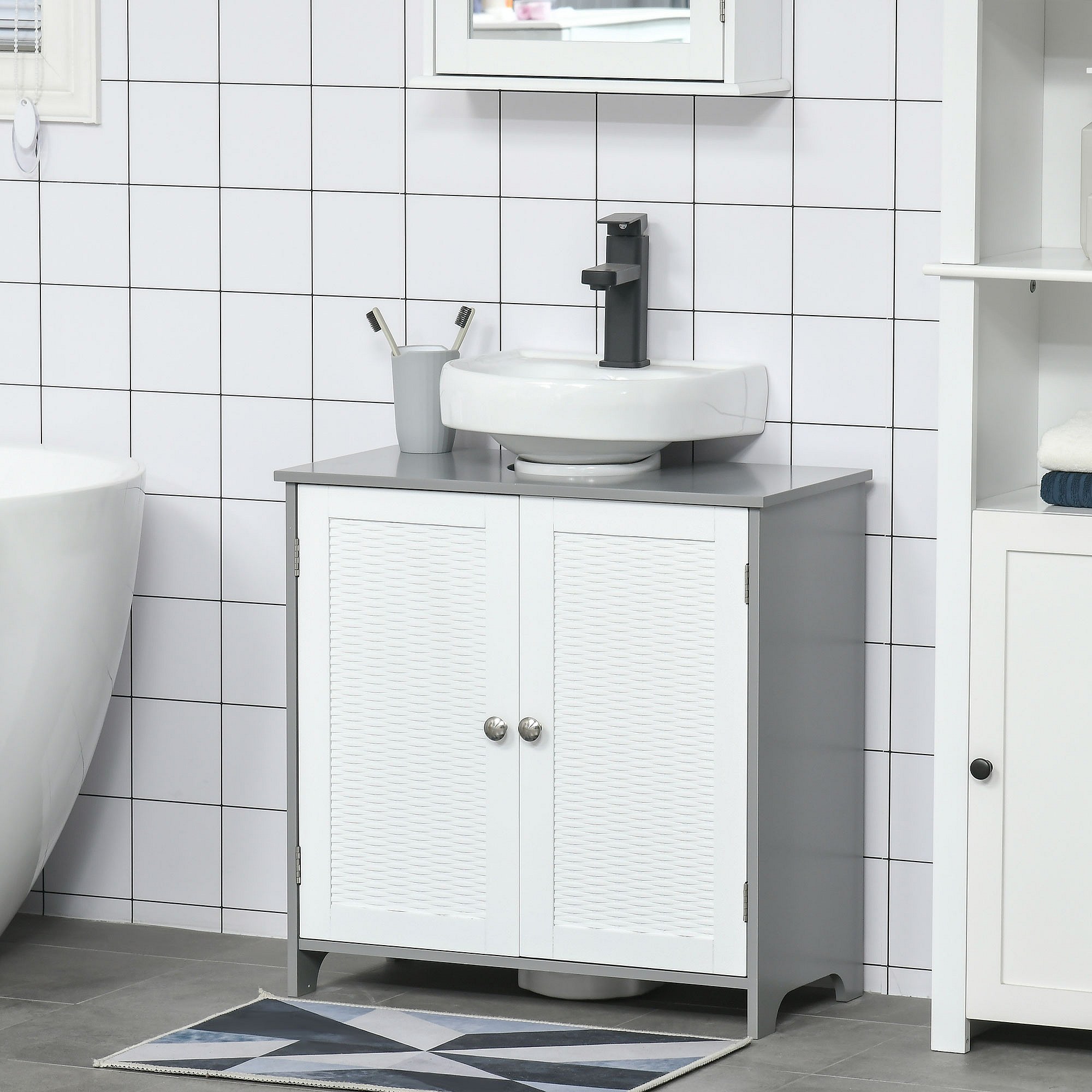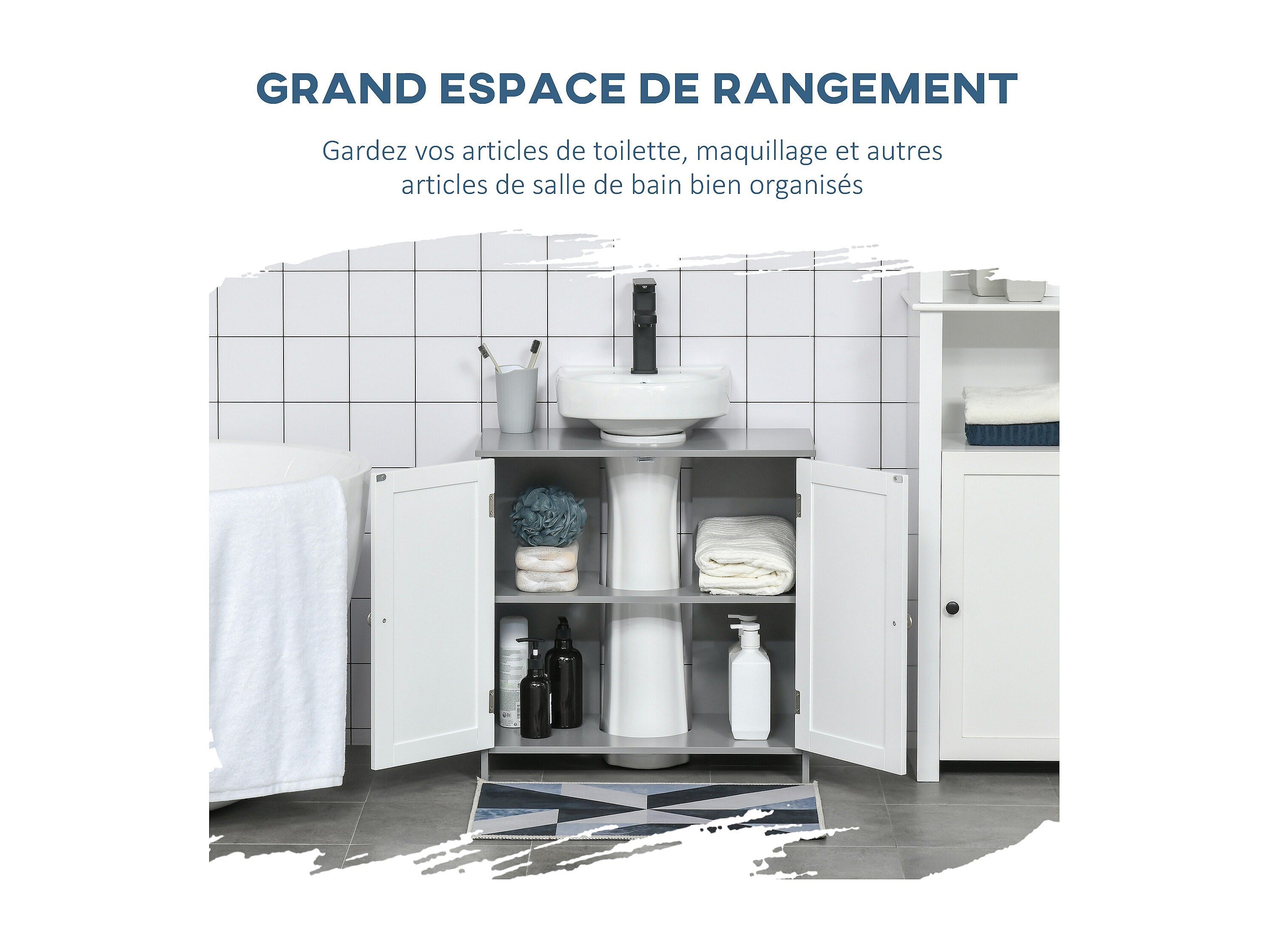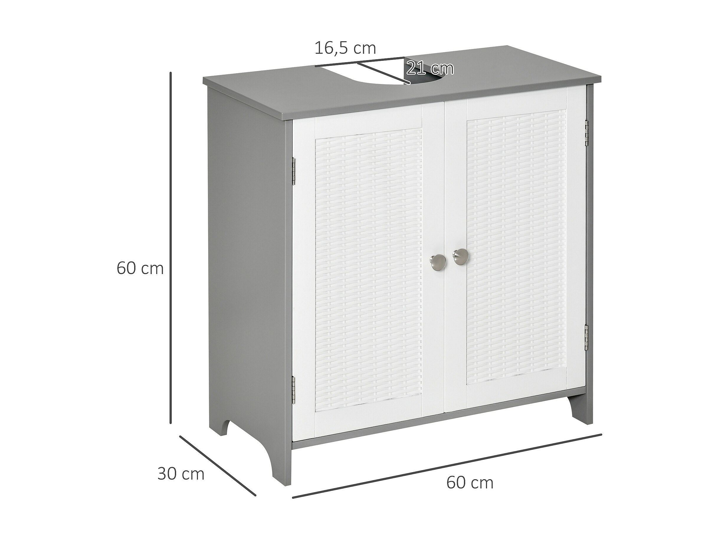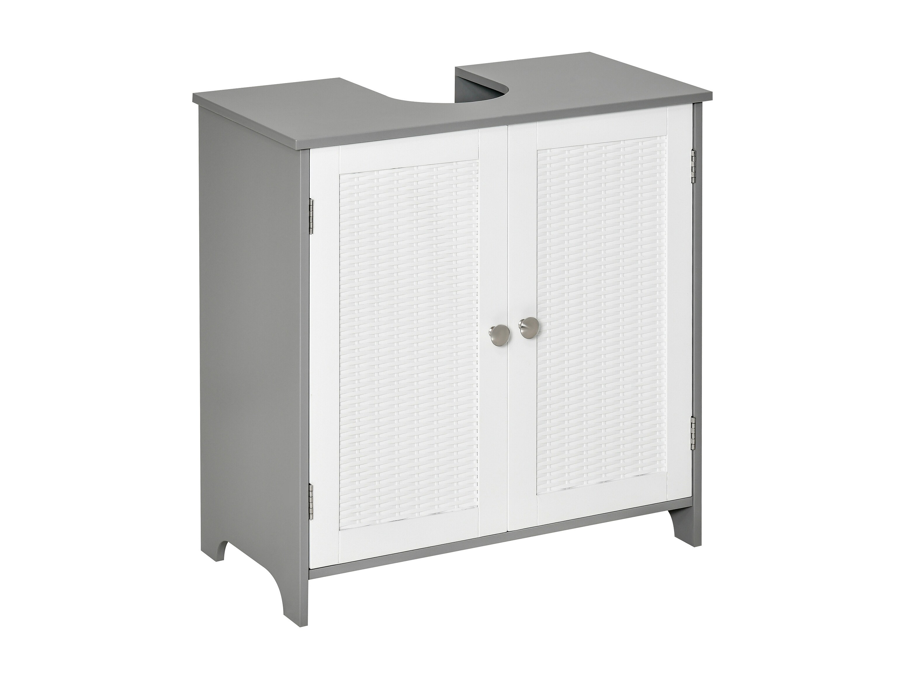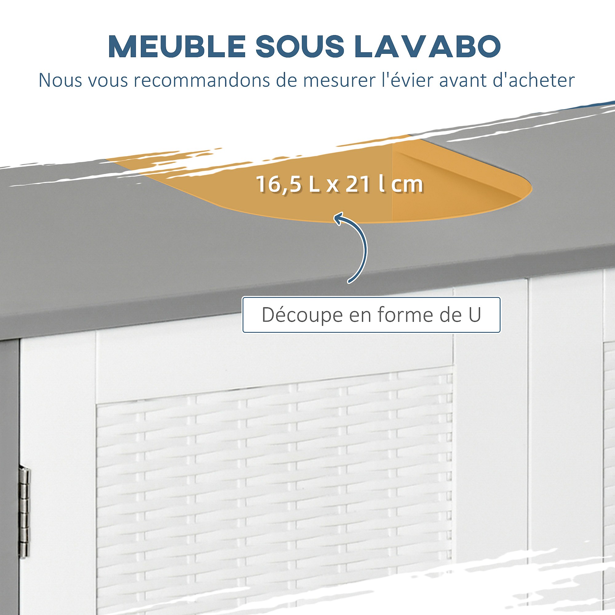 Meuble salle de bain - meuble sous-vasque - placard 2 portes aspect résine tressée avec étagère - MDF blanc gris
