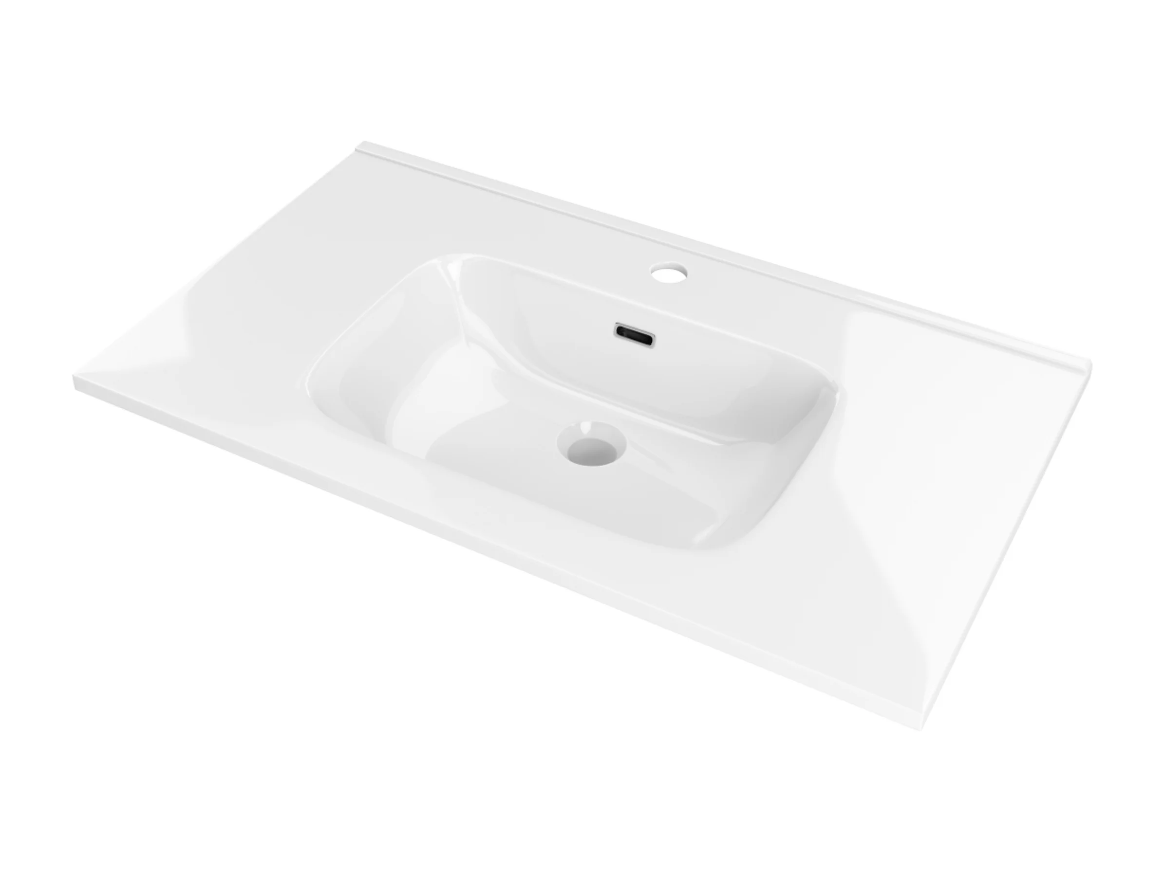 Meuble Salle de Bain POLE (101 cm x H54 x P45 cm), Plan Vasque Céramique WB, 2 Tiroirs, Laqué Blanc Mat