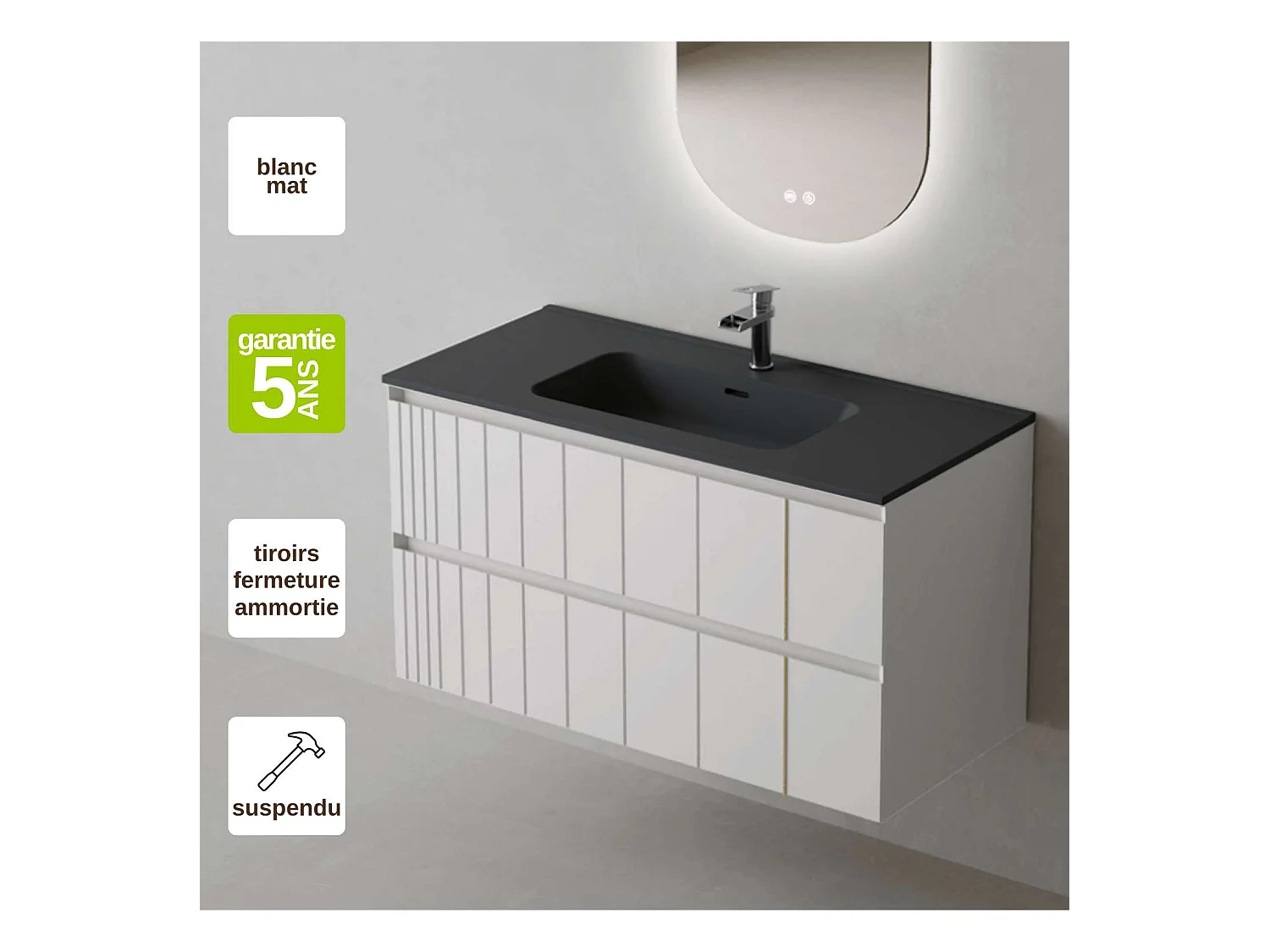 Meuble Salle de Bain POLE (81 cm x H54 x P45 cm), Plan Vasque Céramique NM, 2 Tiroirs, Laqué Blanc Mat