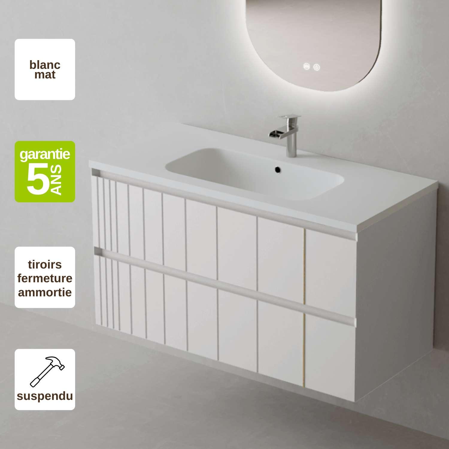 Meuble Salle de Bain POLE (81 cm x H54 x P45 cm), Plan Vasque Céramique WB, 2 Tiroirs, Laqué Blanc Mat