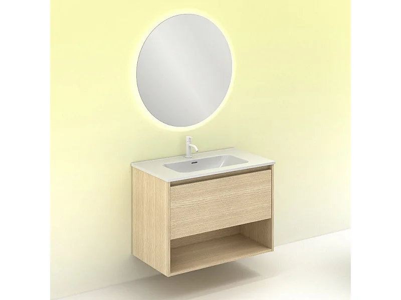 Meuble salle de bain suspendu NIWA chêne sablé 80 cm Miroir non inclus