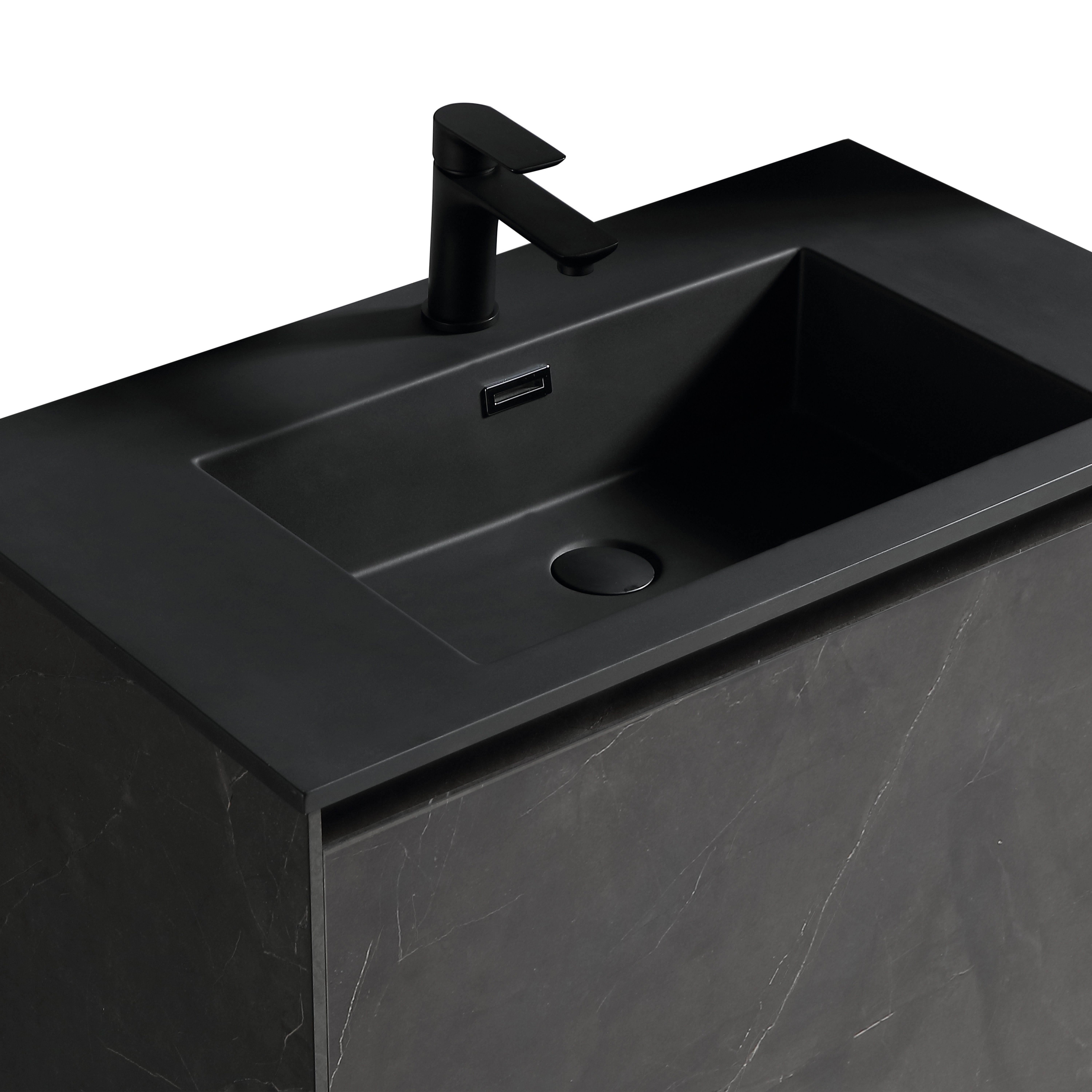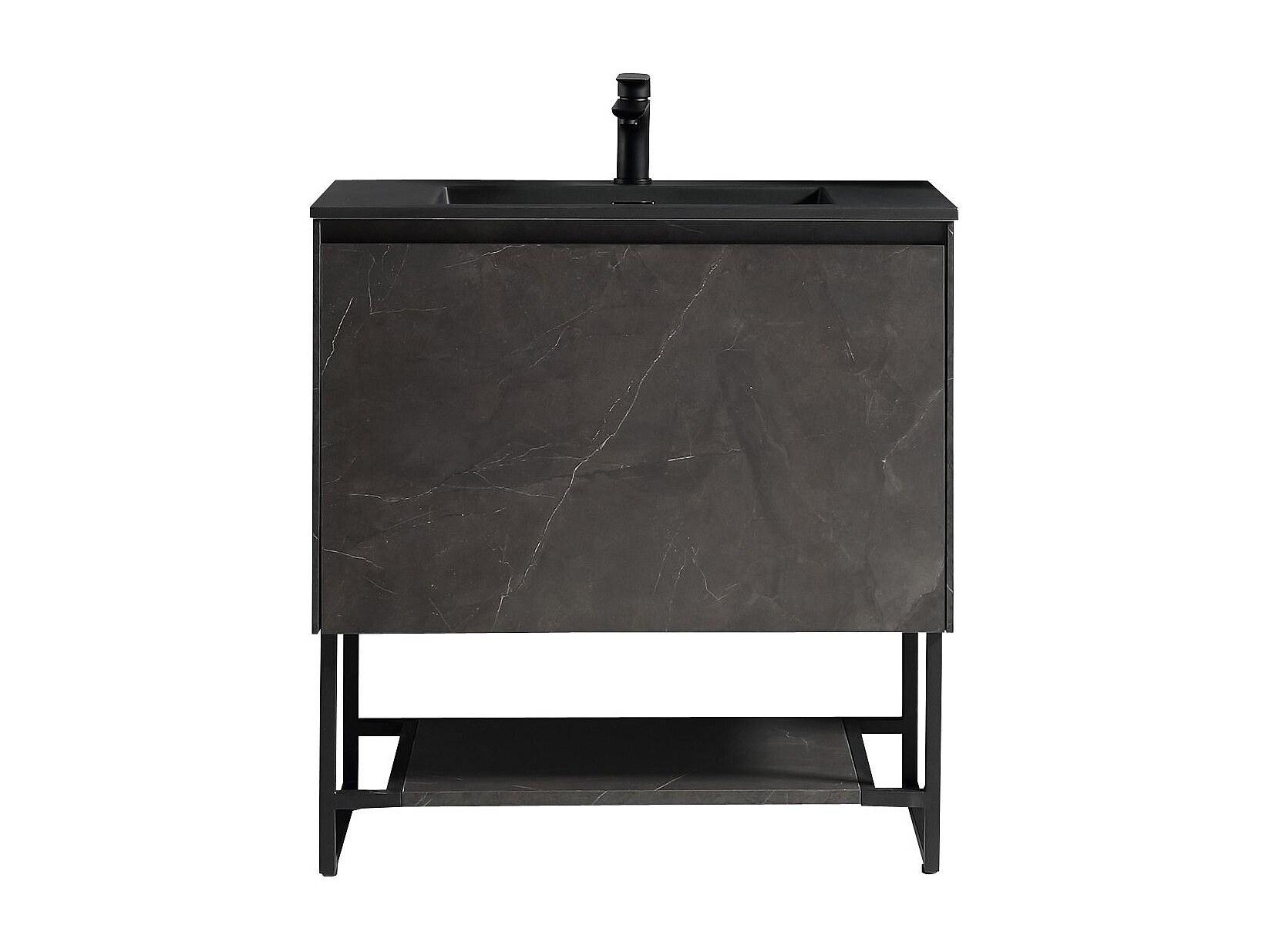 Meuble avec vasque 90 cm noir effet marbre Aquabella