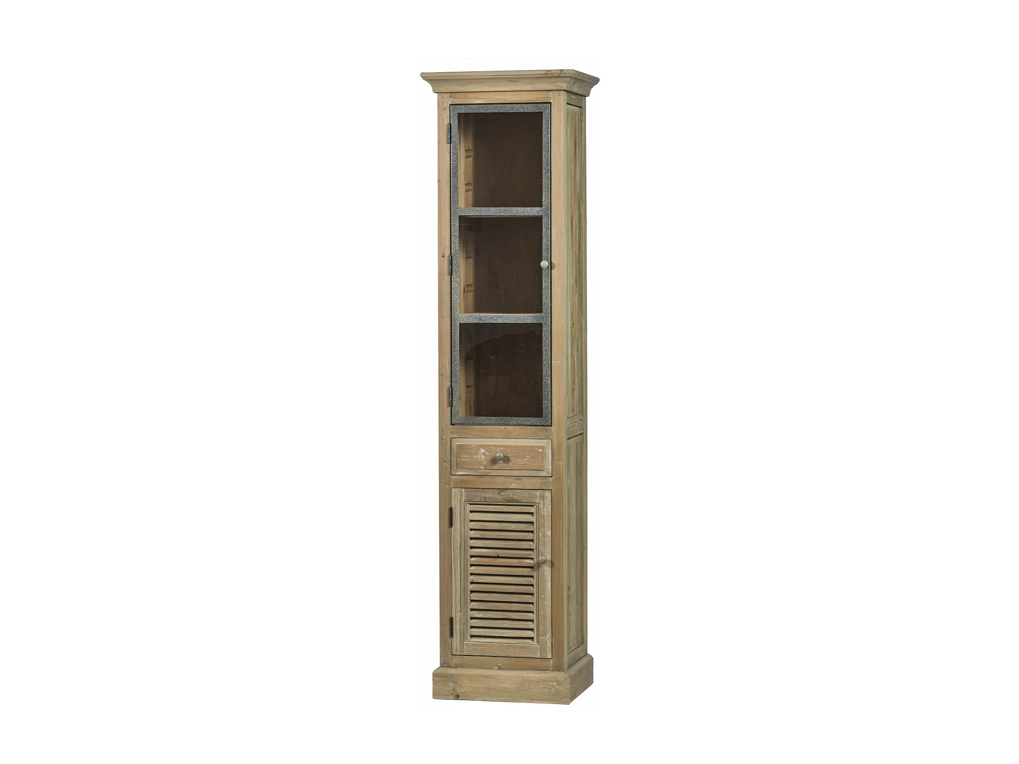 Meuble simple vasque en bois avec miroir et colonne (ensemble) - HANOÏ