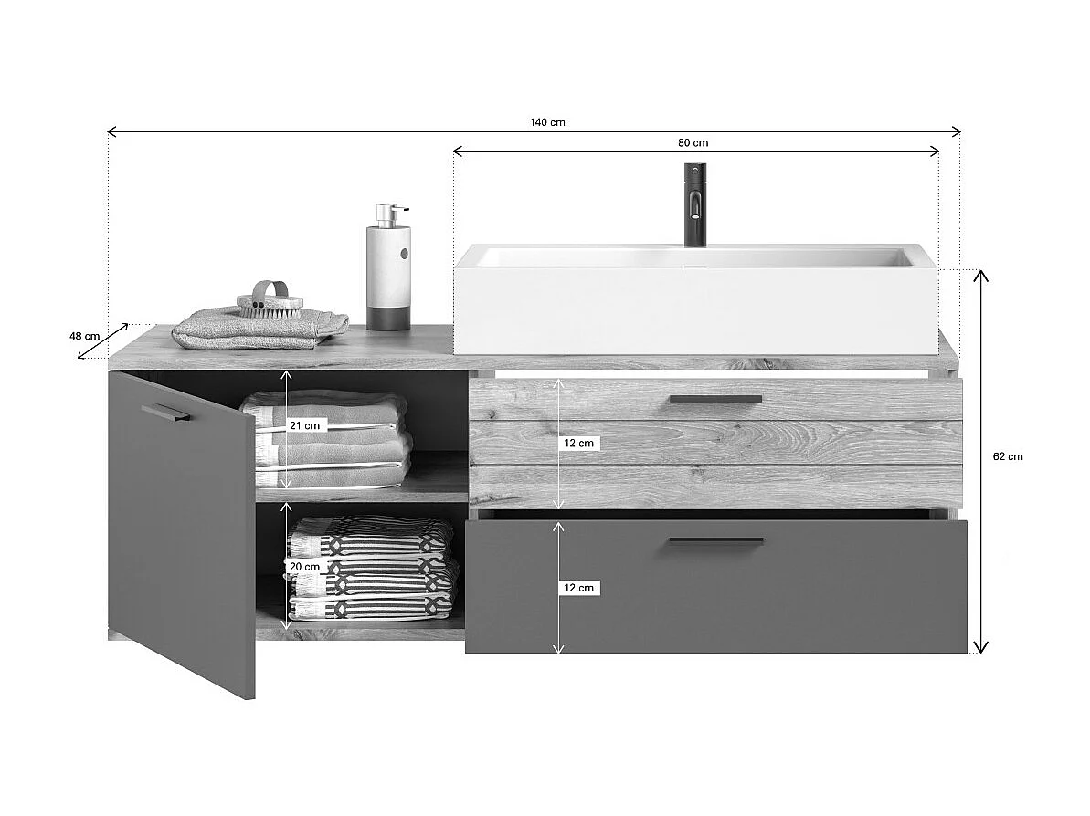 Meuble sous vasque 1 porte et 2 tiroirs – Gris anthracite et chêne clair – SELMA
