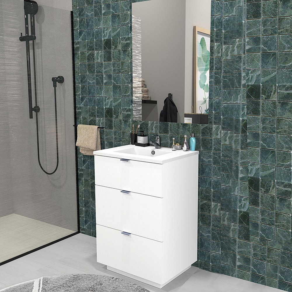 Meuble sous-vasques 3 tiroirs MARBELLA 60 cm + vasque + miroir / Blanc