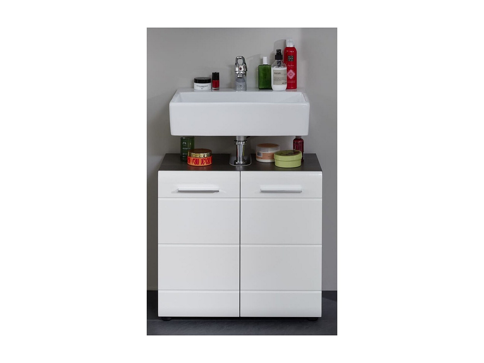Meuble de salle de bain coloris blanc avec vasque à poser en céramique - Longueur 60 x Profondeur 46 x Hauteur 56 cm