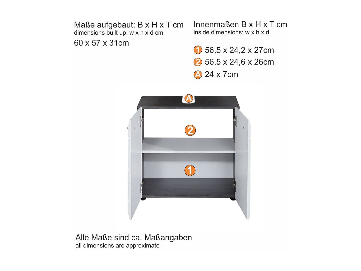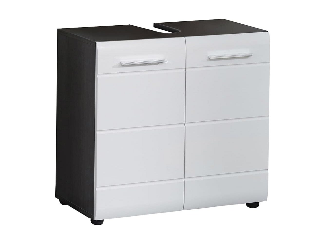 Meuble de salle de bain coloris noir avec vasque moulée en céramique - Longueur 60 x Profondeur 46 x Hauteur 56 cm