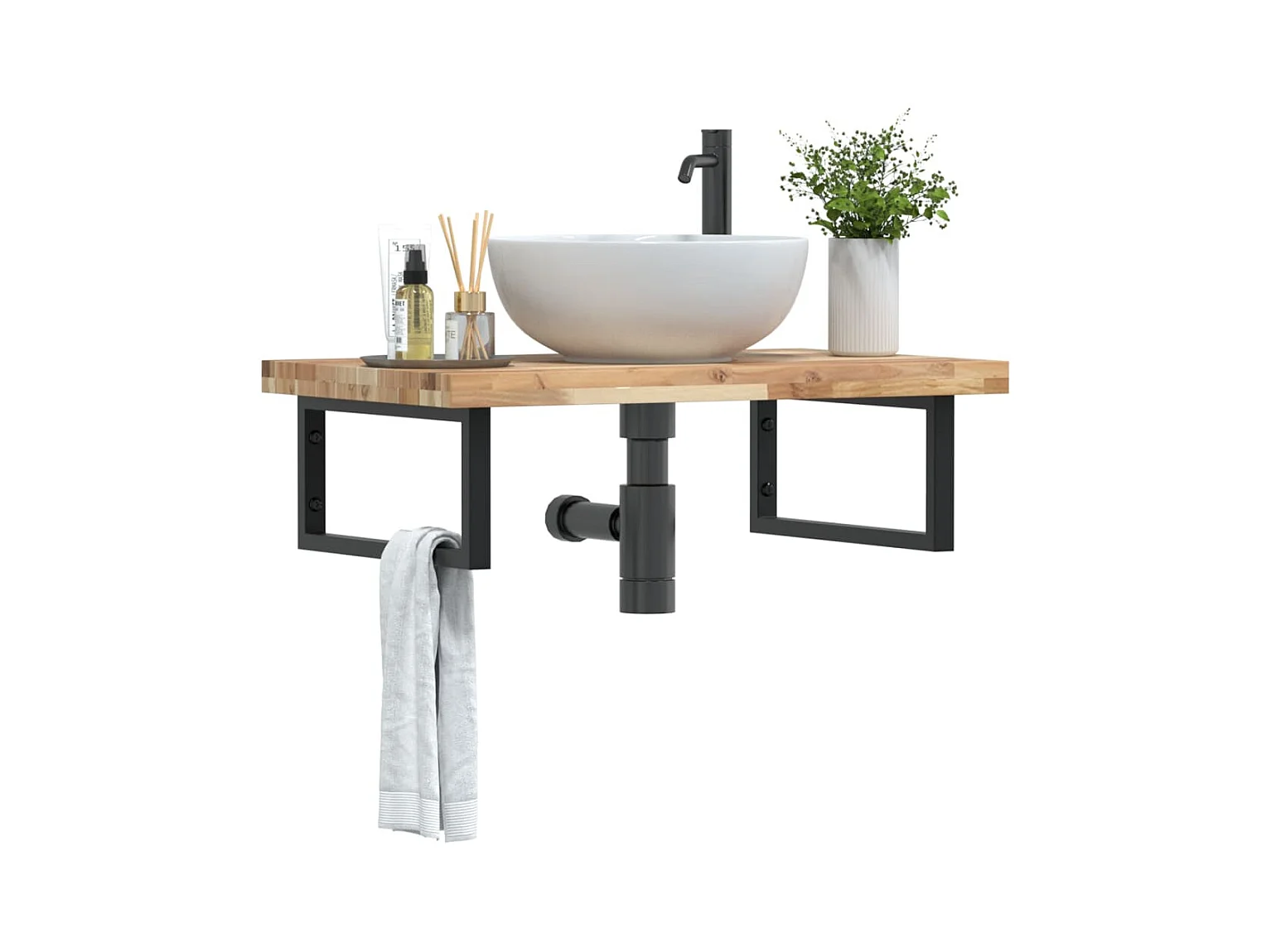Meuble sous vasque murale acier et bois massif d'acacia FR352811
