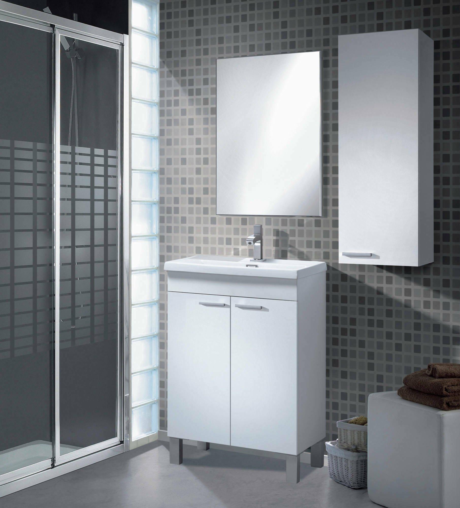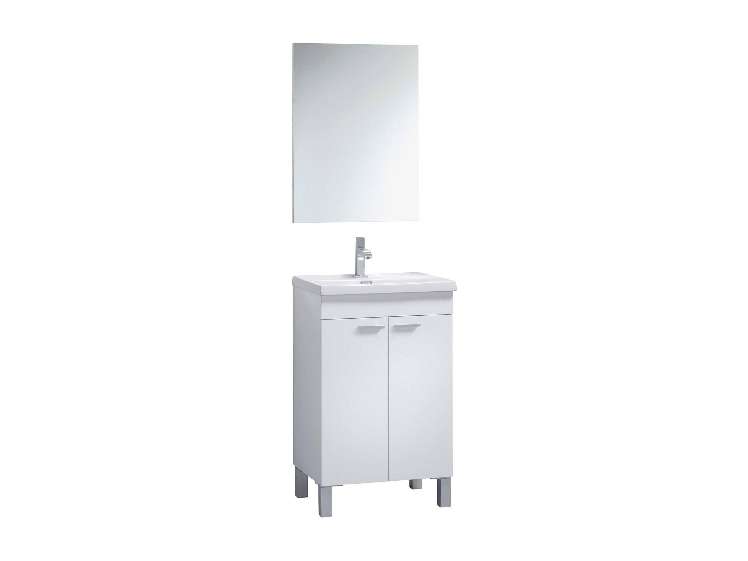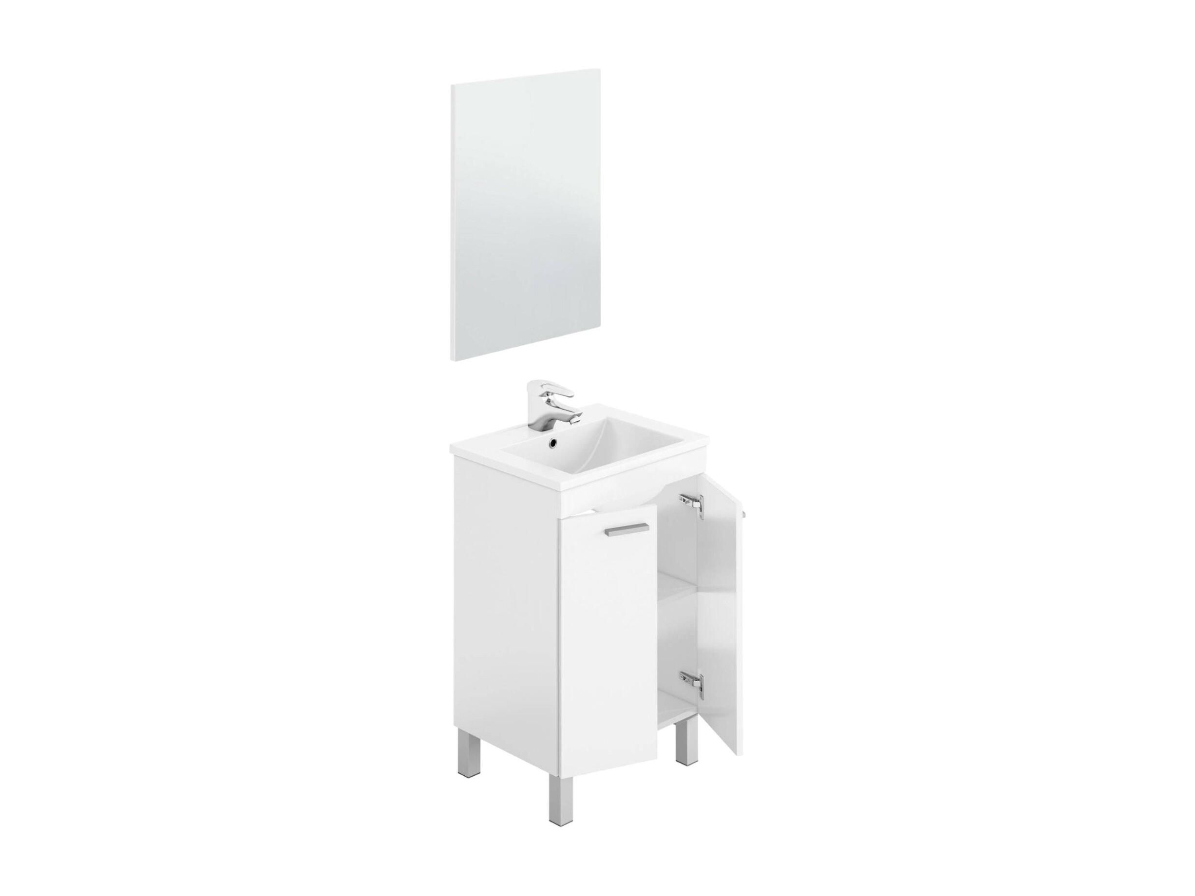 Meuble sous-vasque Naperville, Meuble de salle de bain, armoire 2 portes avec miroir, lavabo non inclus, 50x40h80 cm, Blanc