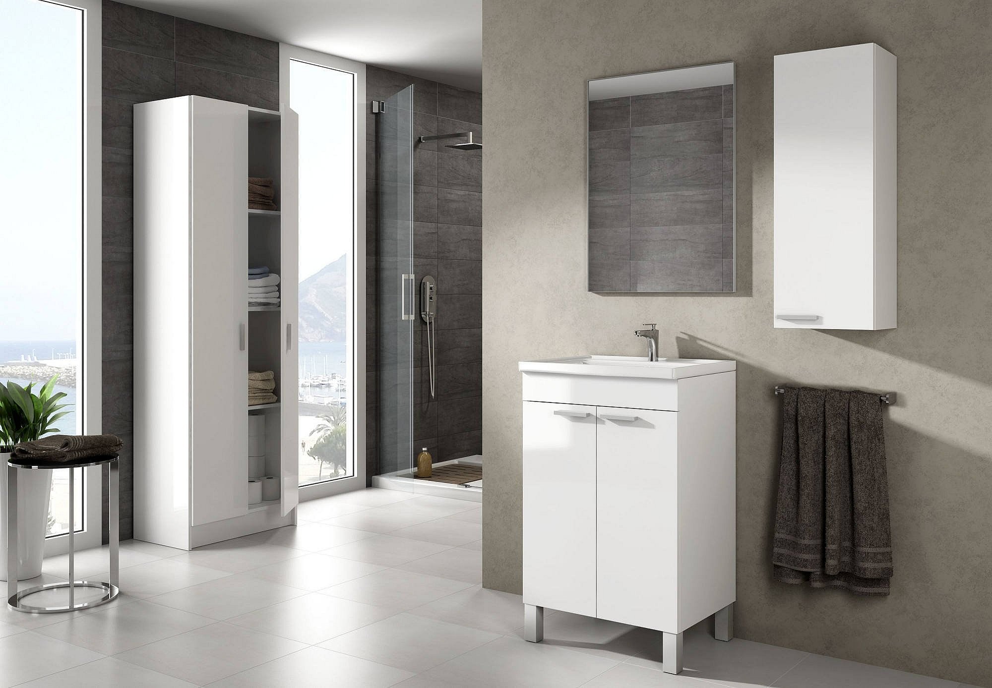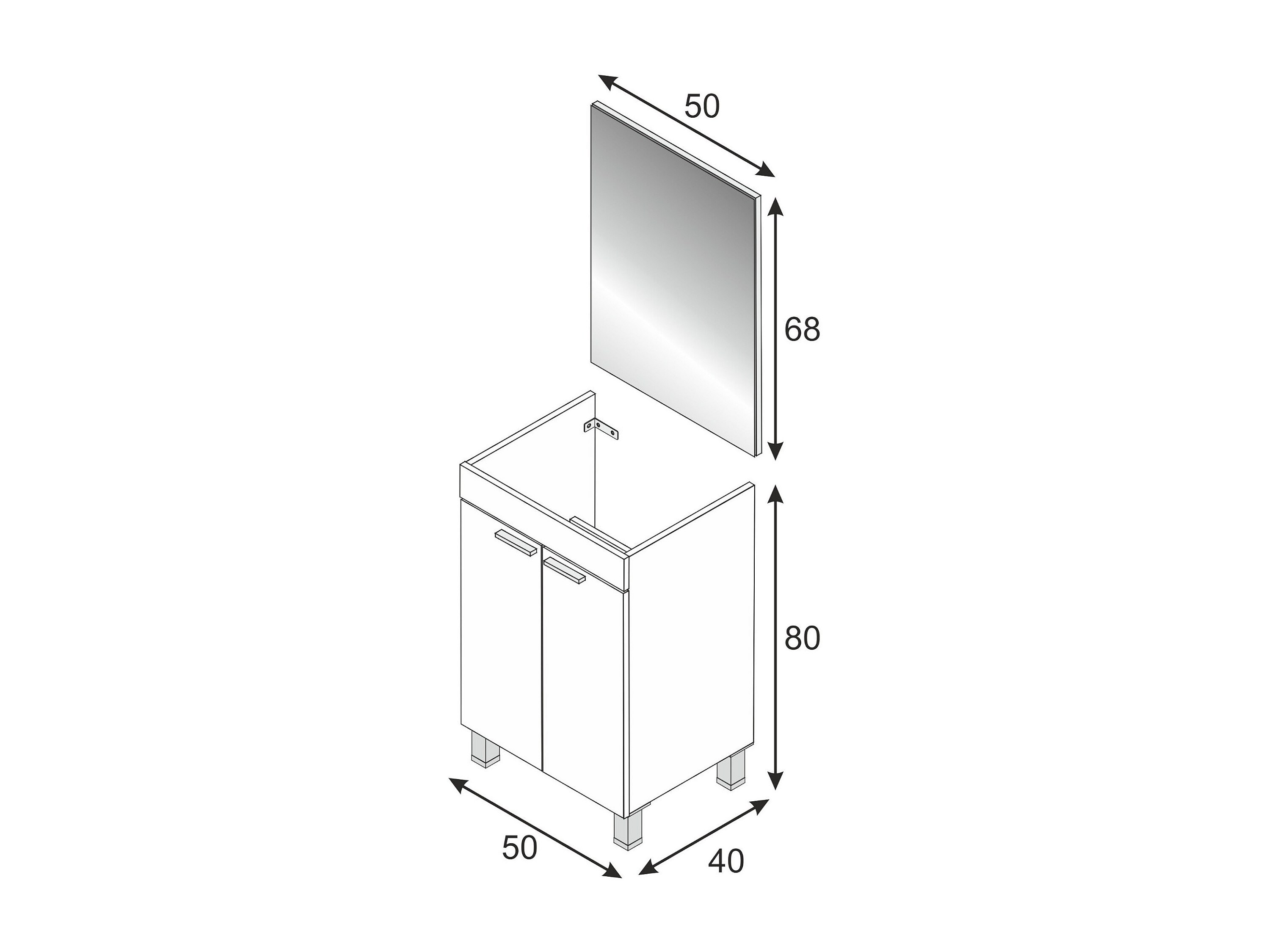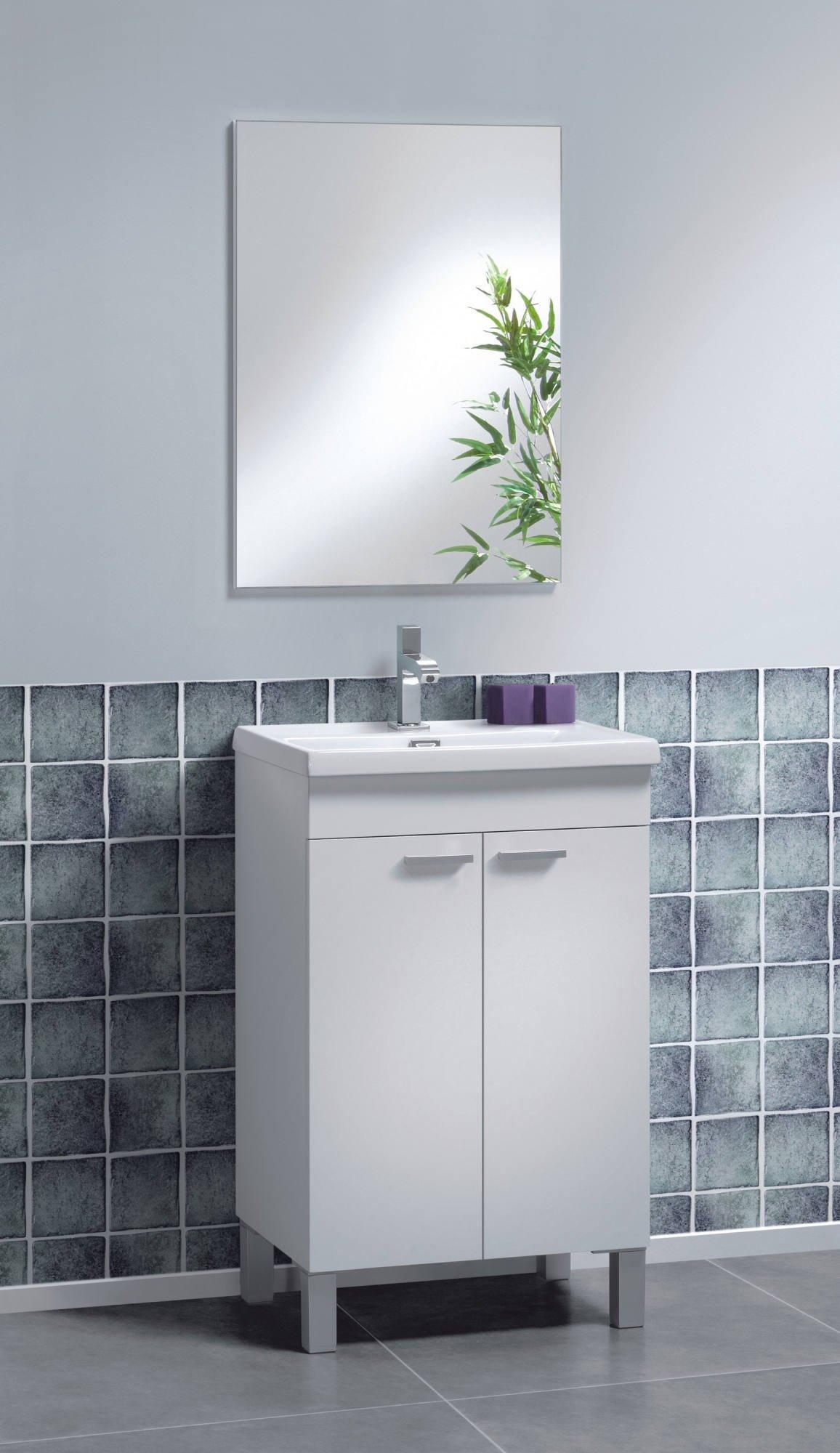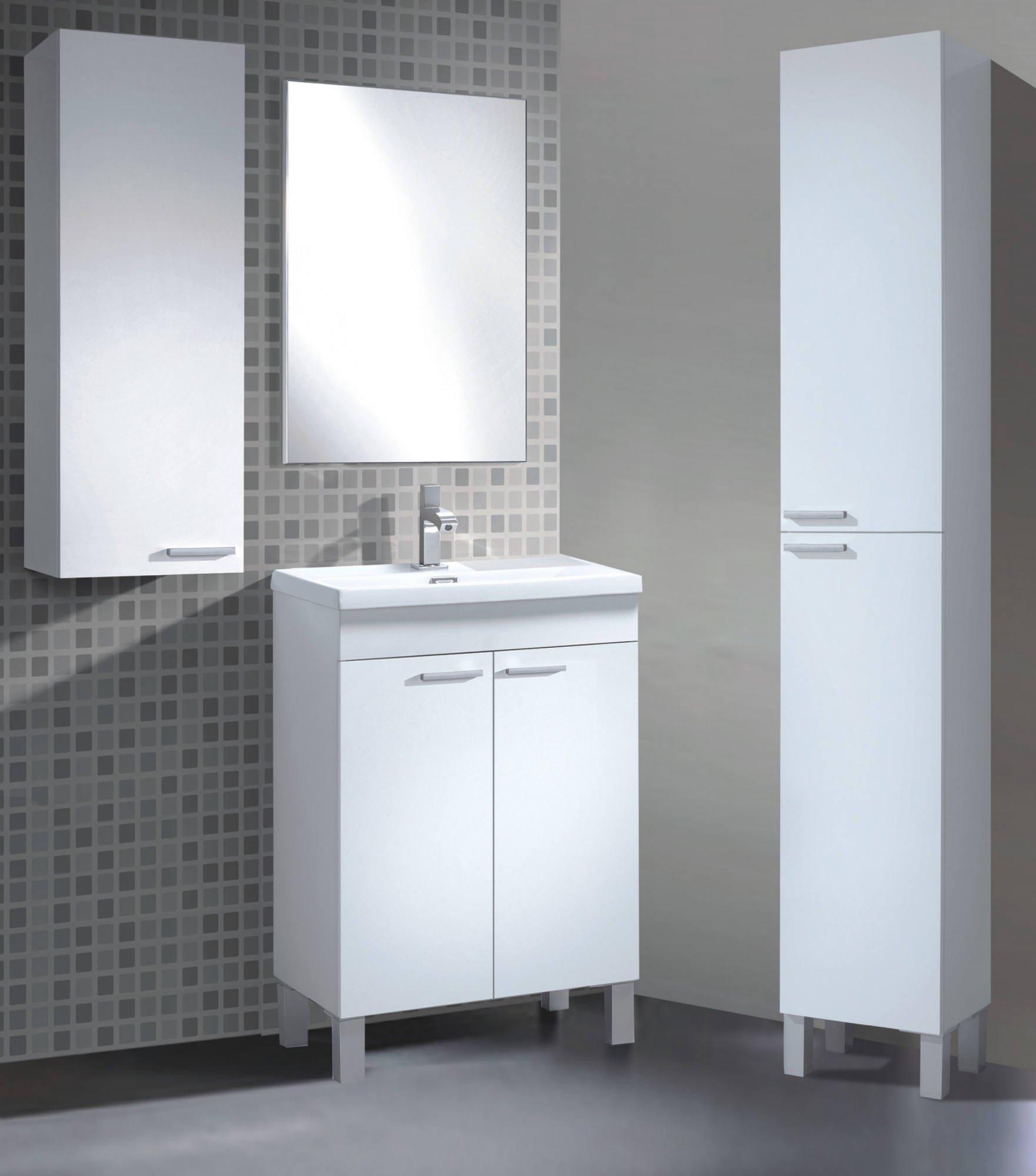 Meuble sous-vasque Naperville, Meuble de salle de bain, armoire 2 portes avec miroir, lavabo non inclus, 50x40h80 cm, Blanc