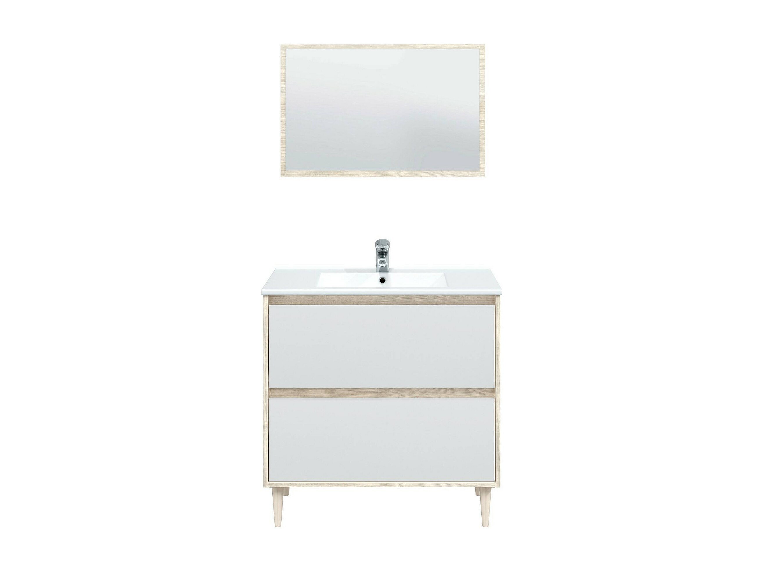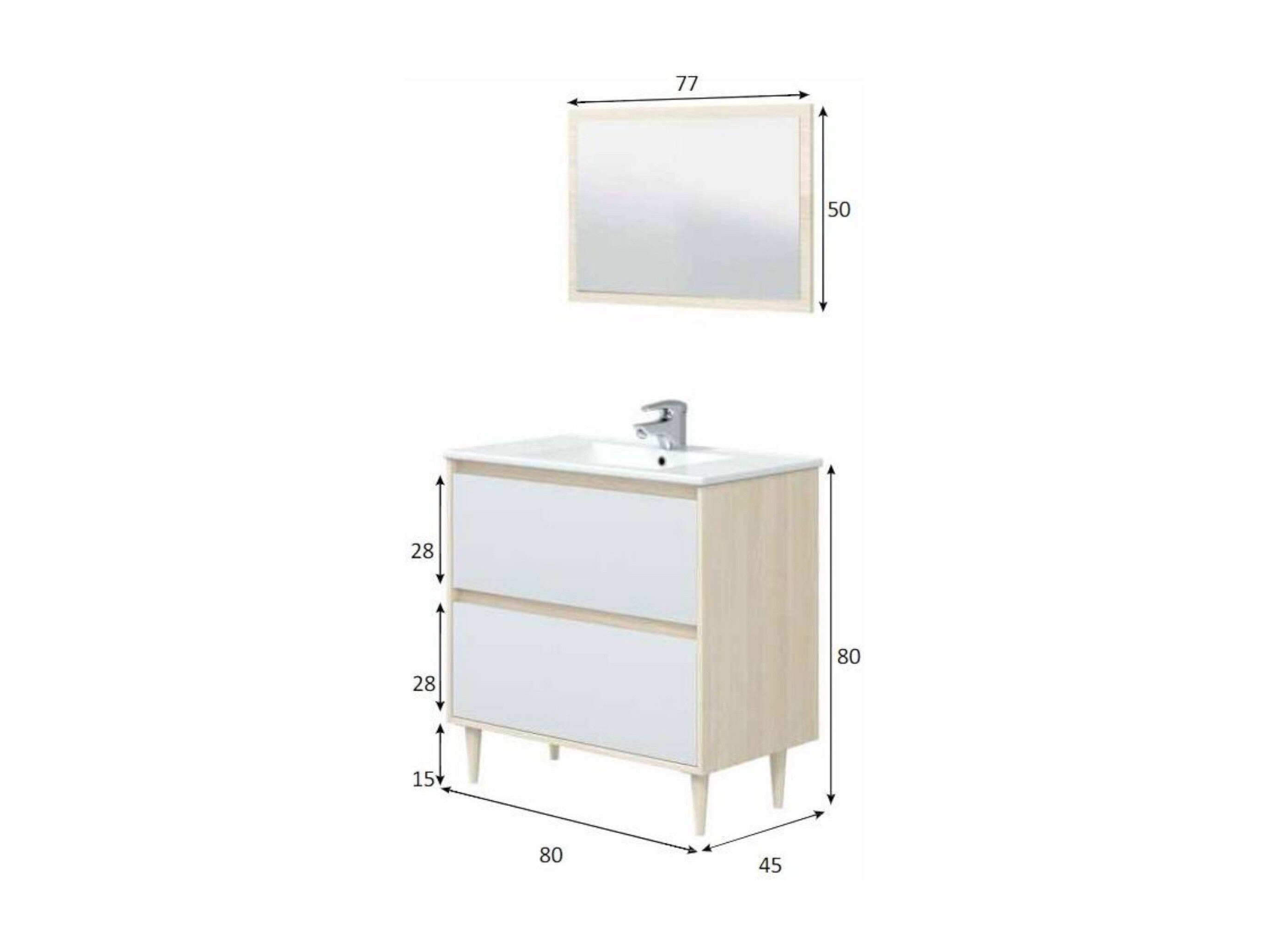 Meuble sous-vasque Yazoo, Meuble sous-vasque de salle de bain, Meuble sous-vasque avec miroir, Lavabo non inclus, 80x45h80 cm, Blanc brillant et chêne