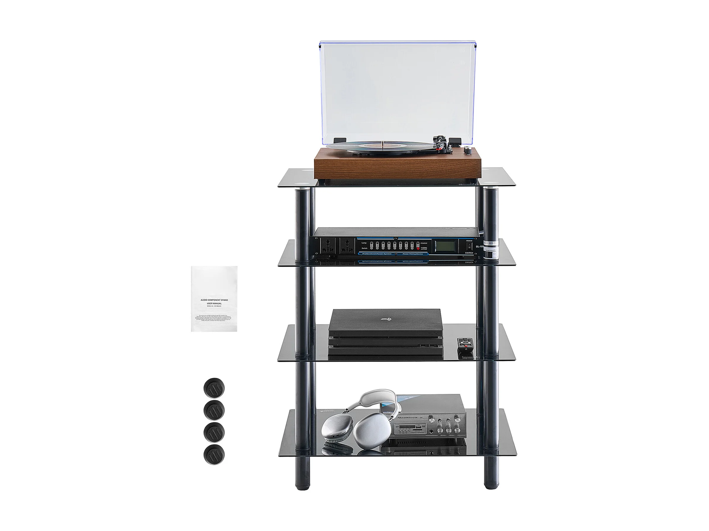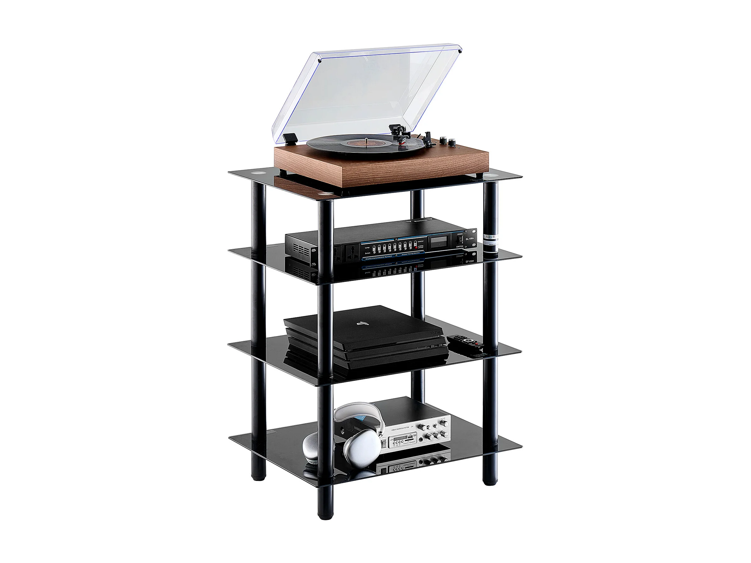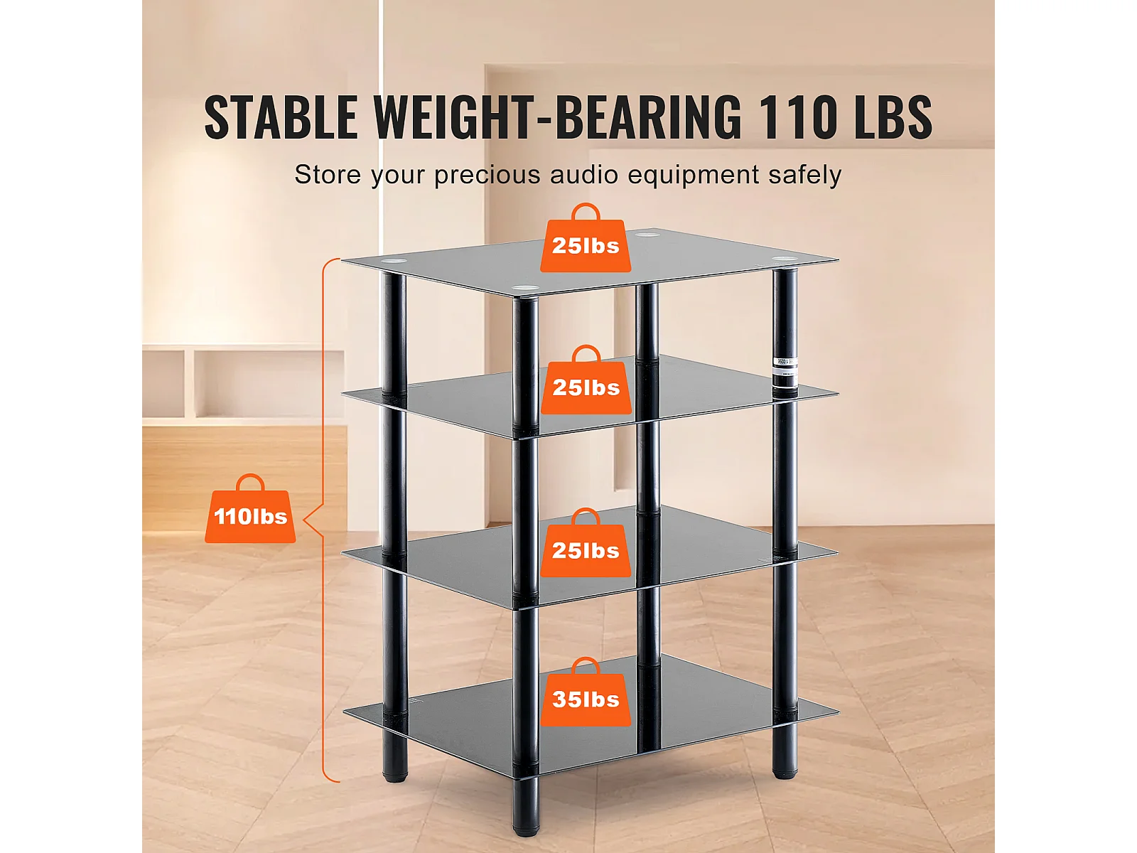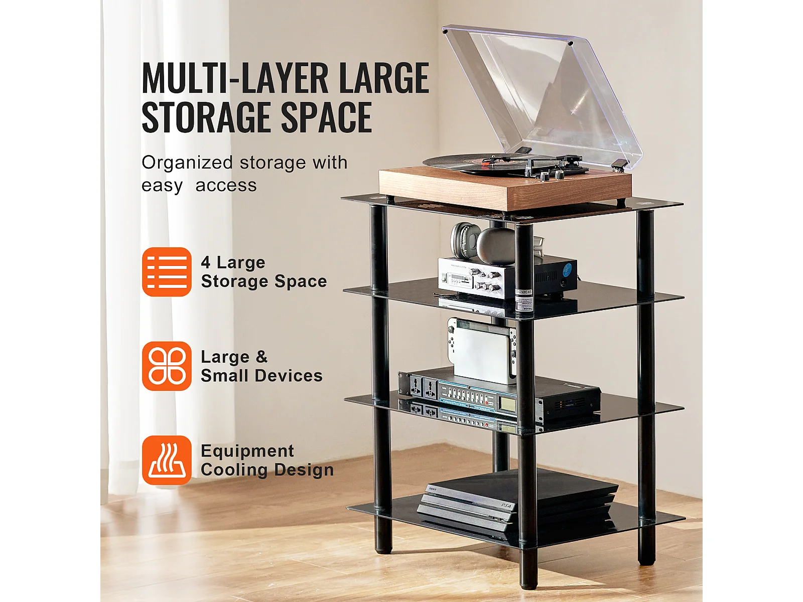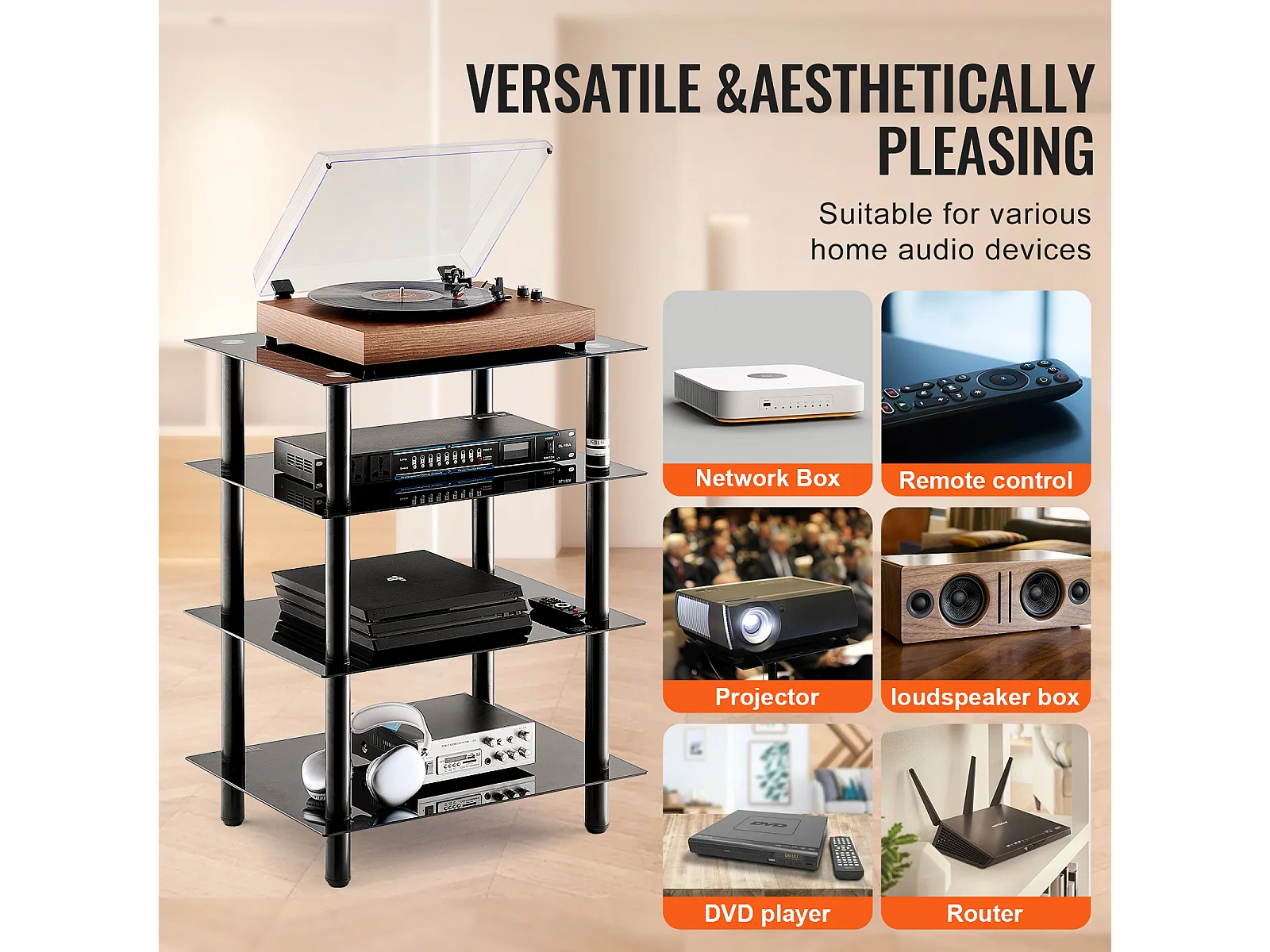 Meuble SucceBuy Support Multimédia AV à 4 Niveaux , Étagère Audio/Video en Verre Trempé pour le Stockage Multimédia