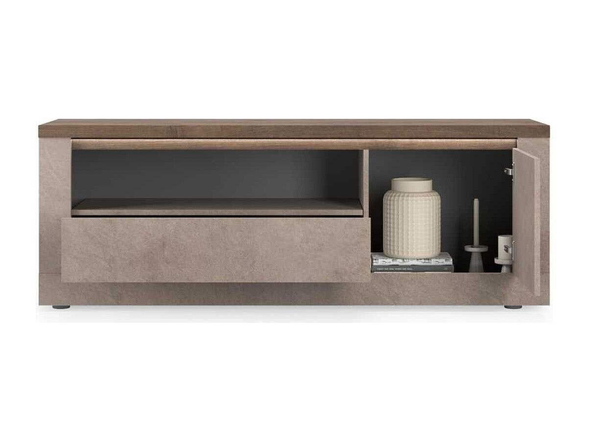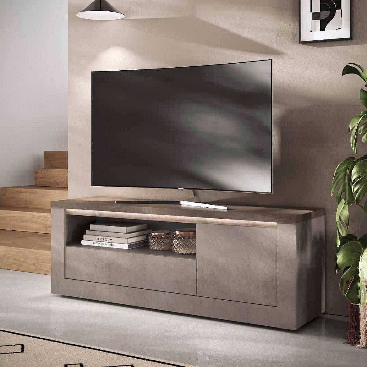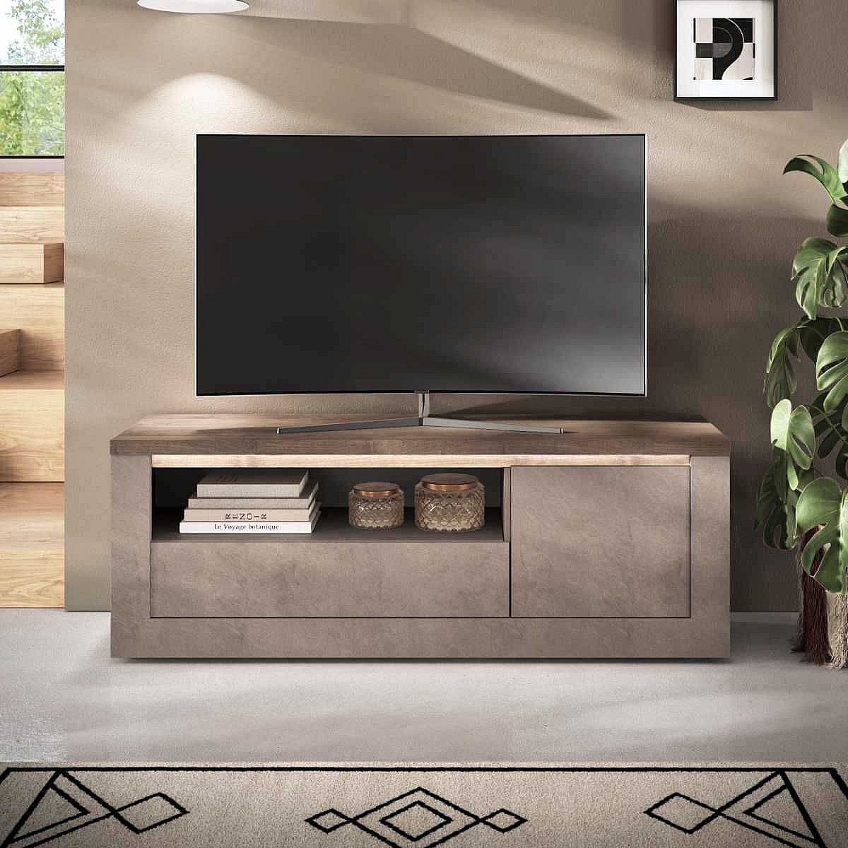 Meuble TV 1 porte aspect minéral bronze plateau bois Mercure avec LED - ISALIA BRONZE