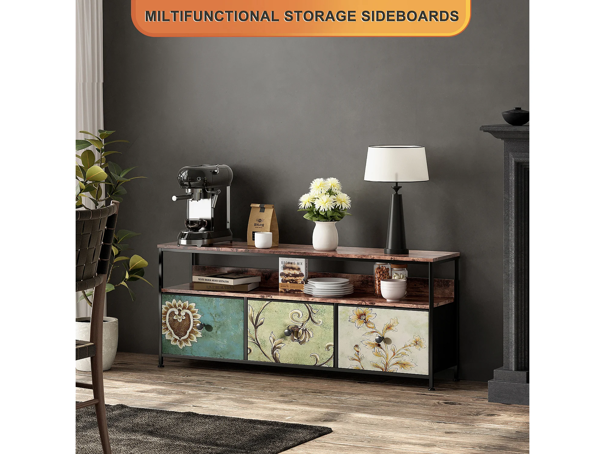 Meuble TV 137 x 30 x 57 cm , Avec éclairage LED et tiroirs , avec espace de rangement, Multicolore