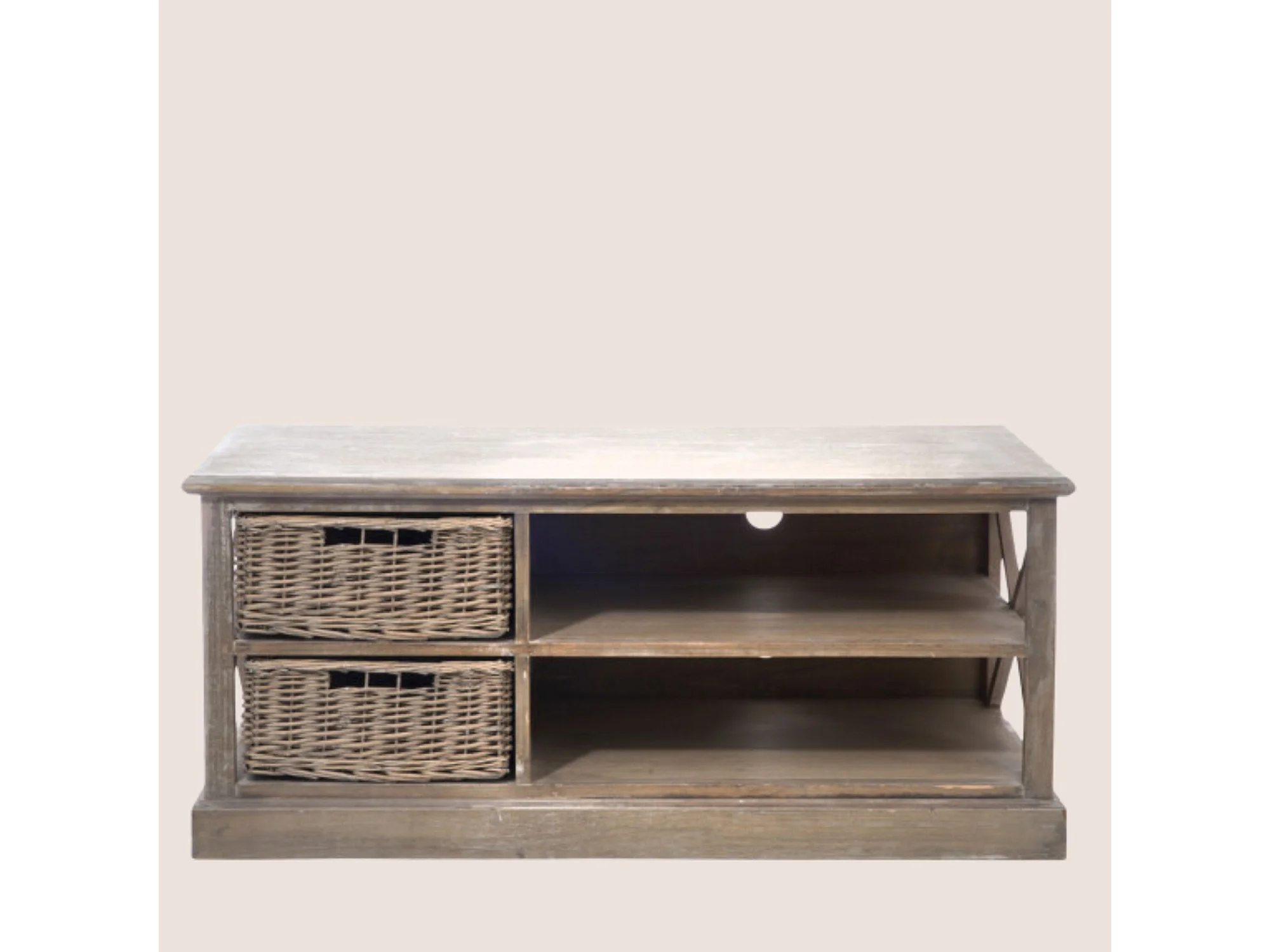 Meuble TV & 2 Paniers "Catherine" 120cm Naturel