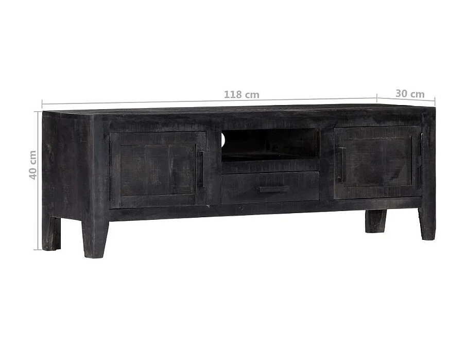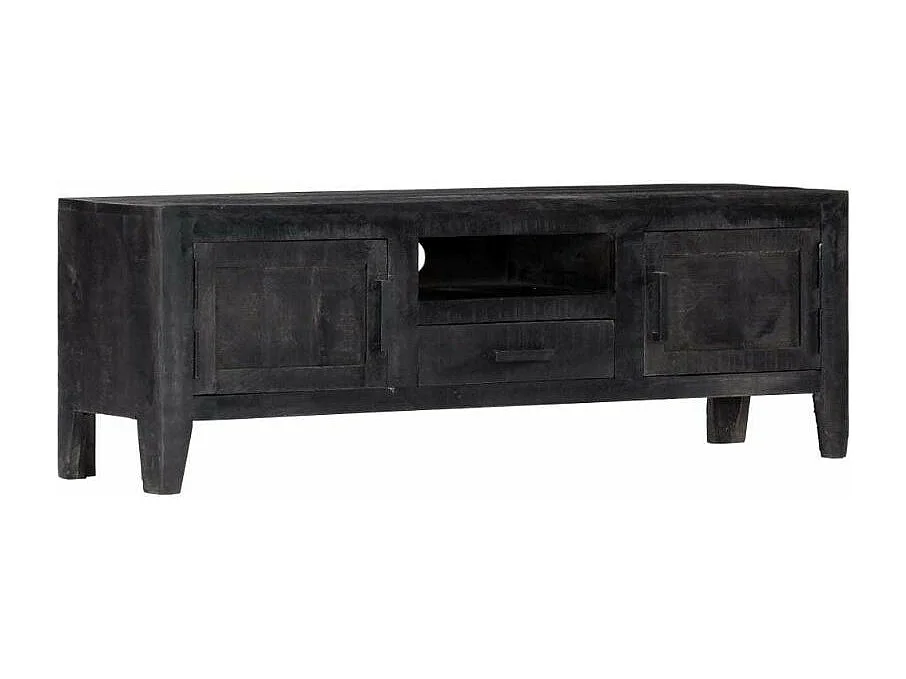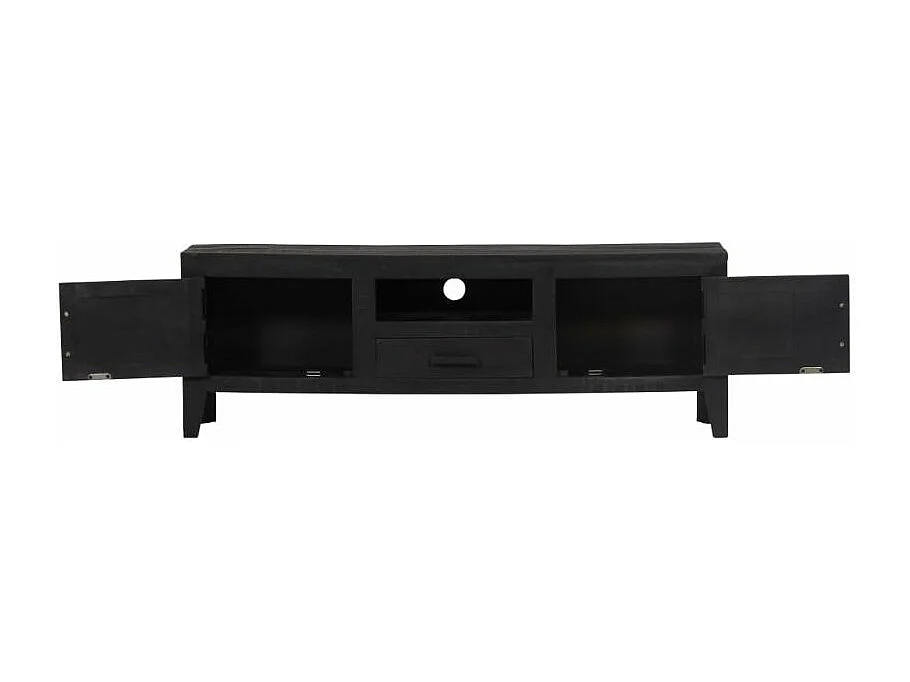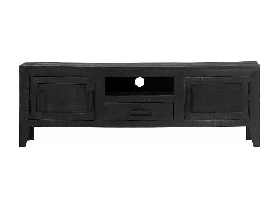 Meuble TV 2 portes 1 tiroir manguier massif noir Pinkie
