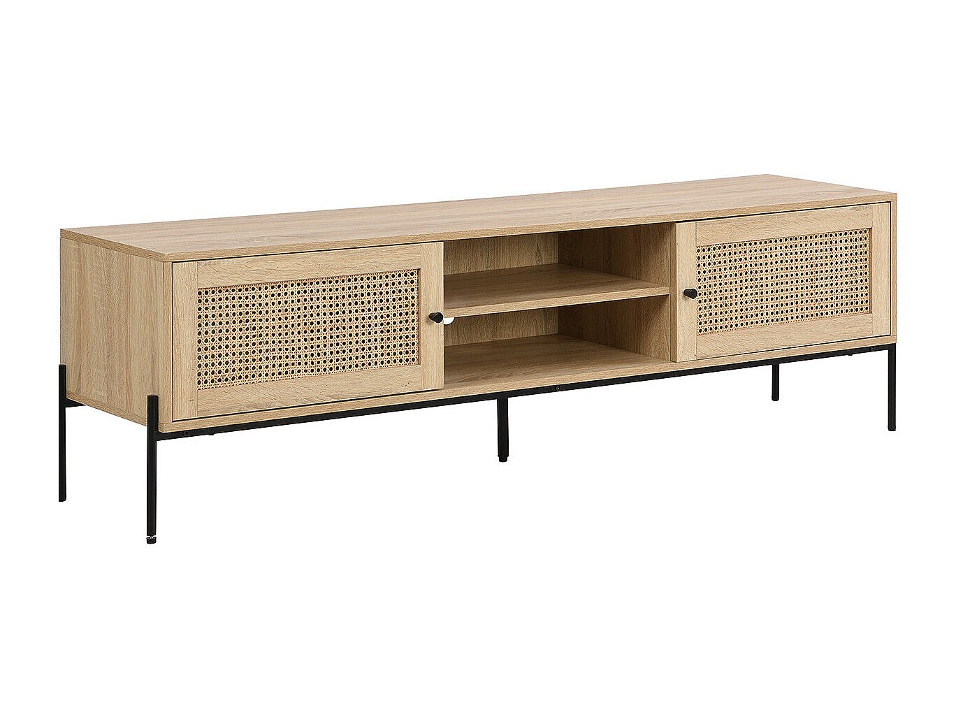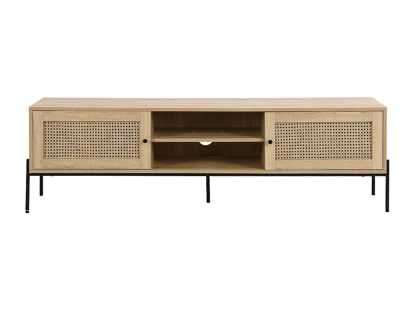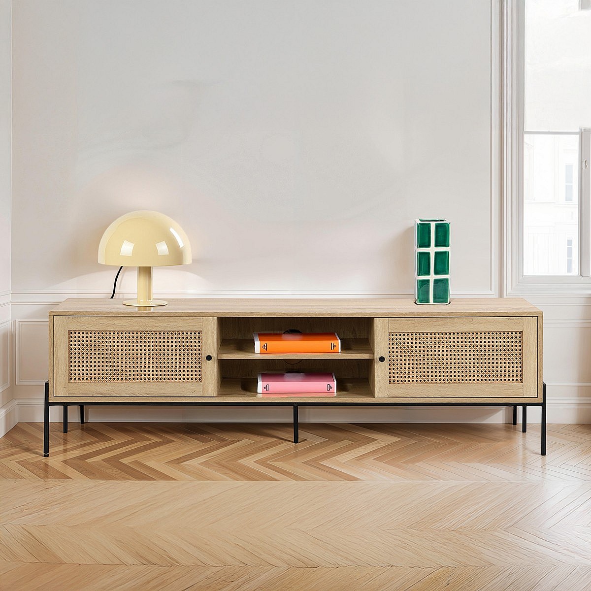 Meuble TV 2 portes en cannage naturel et effet chêne 160 cm - Iris