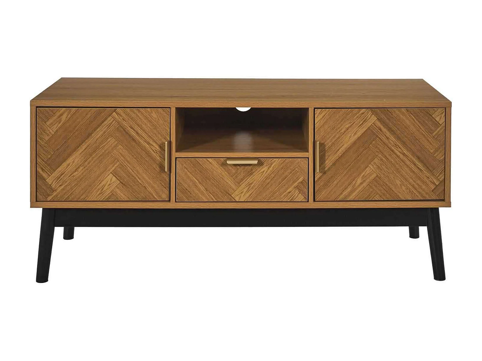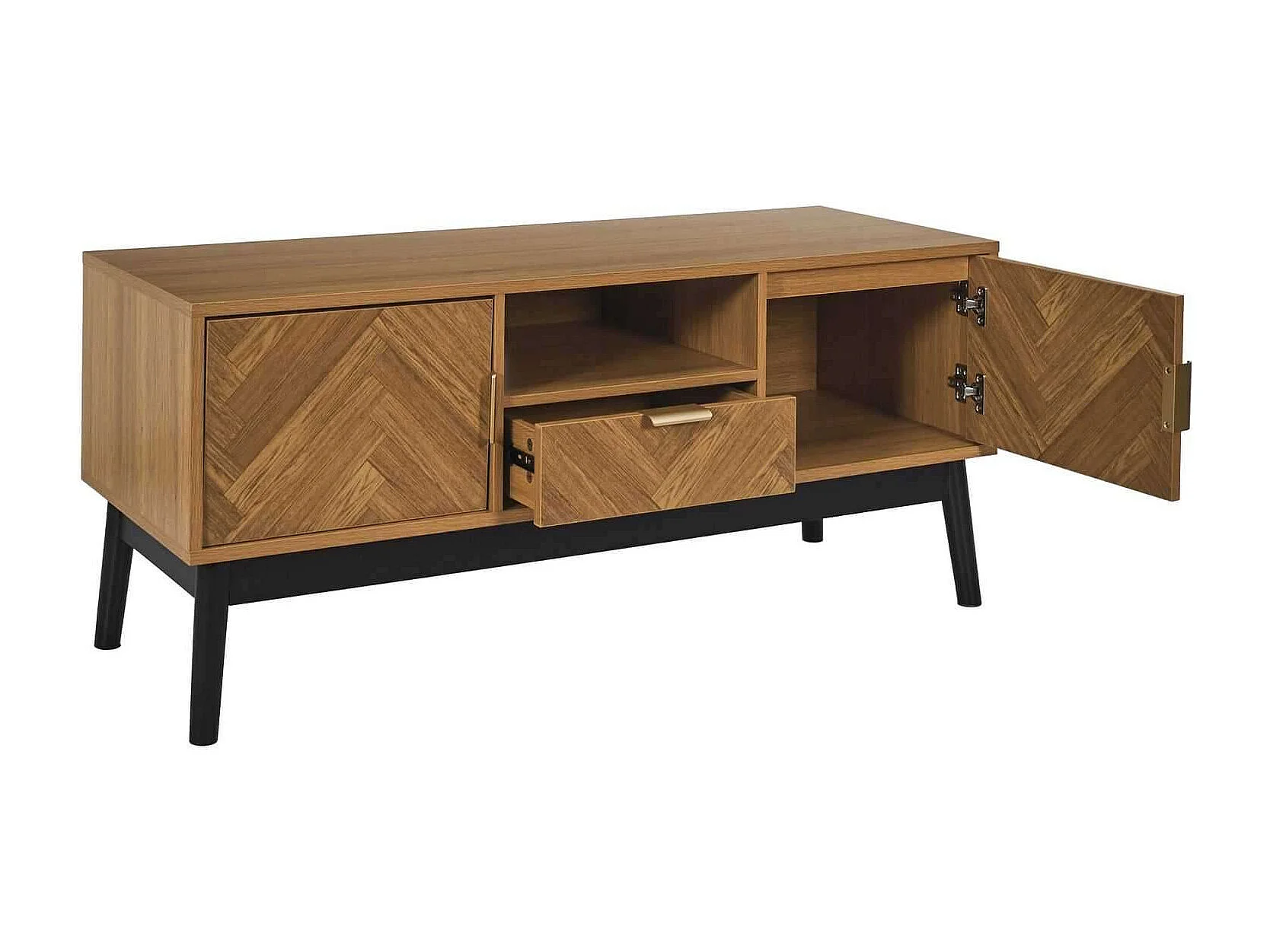 Meuble TV 2 portes et 1 tiroir en bois FELIX - Marron et noir
