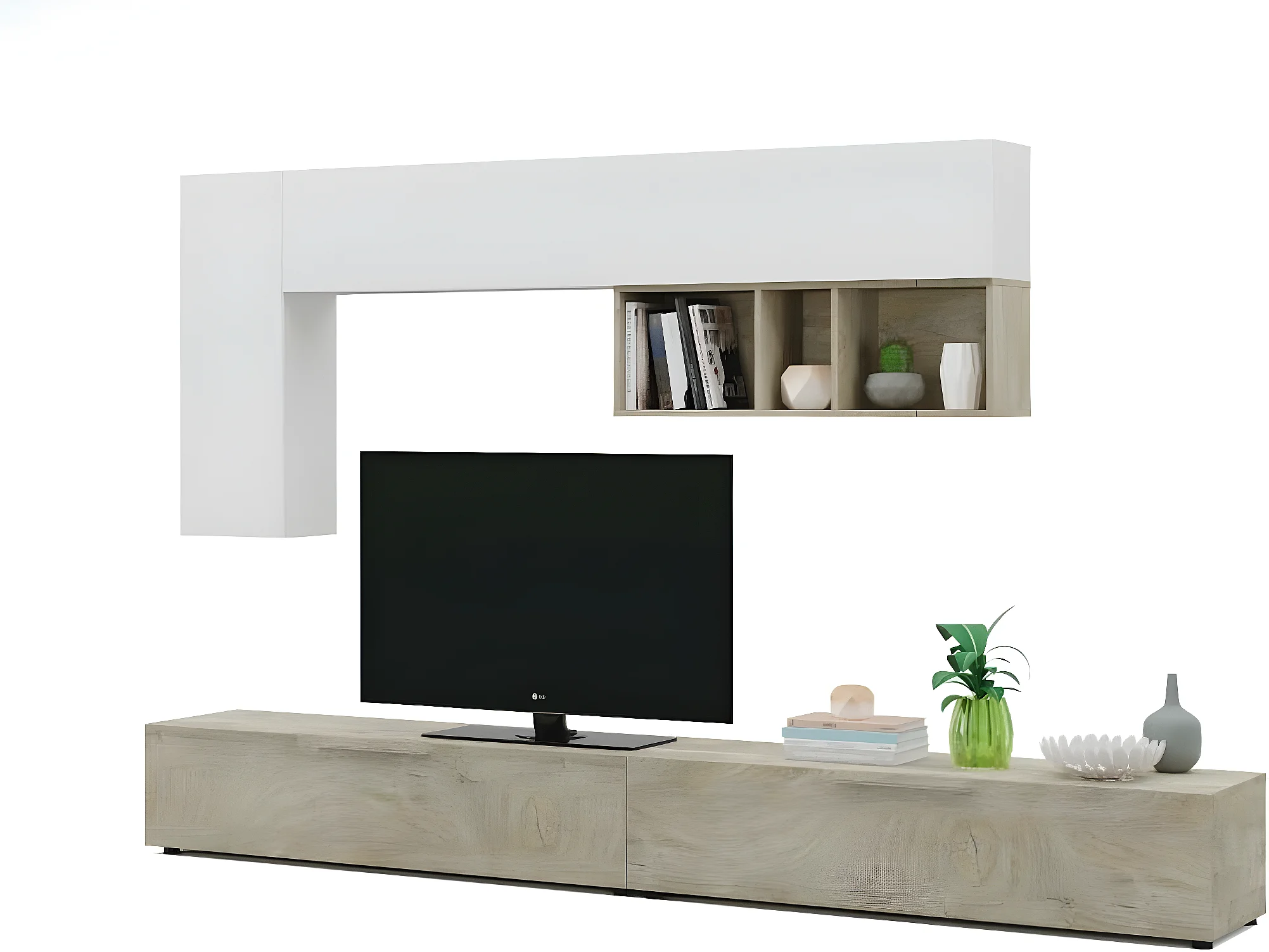 Meuble TV 2 portes L260cm et étagère murale L210 cm