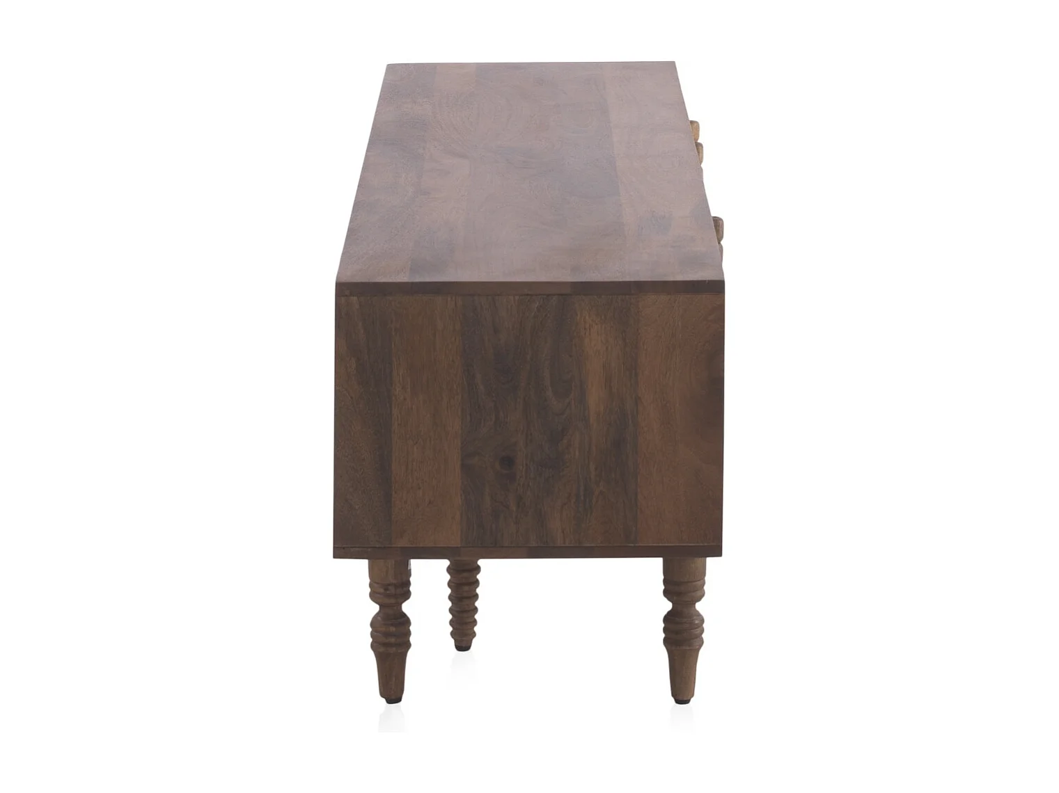 Meuble TV à 3 portes multicolores en bois massif d'acacia