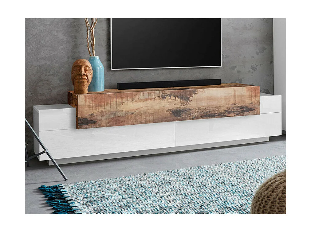 Meuble TV 4 armoires 3 portes battantes design bois blanc Blanco