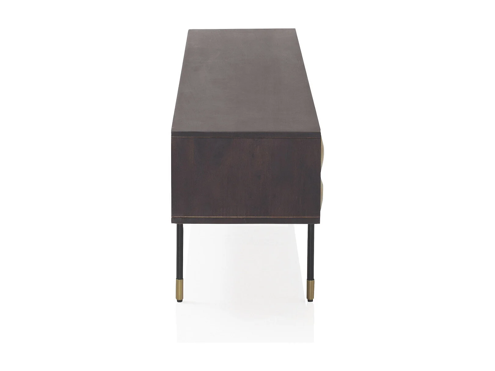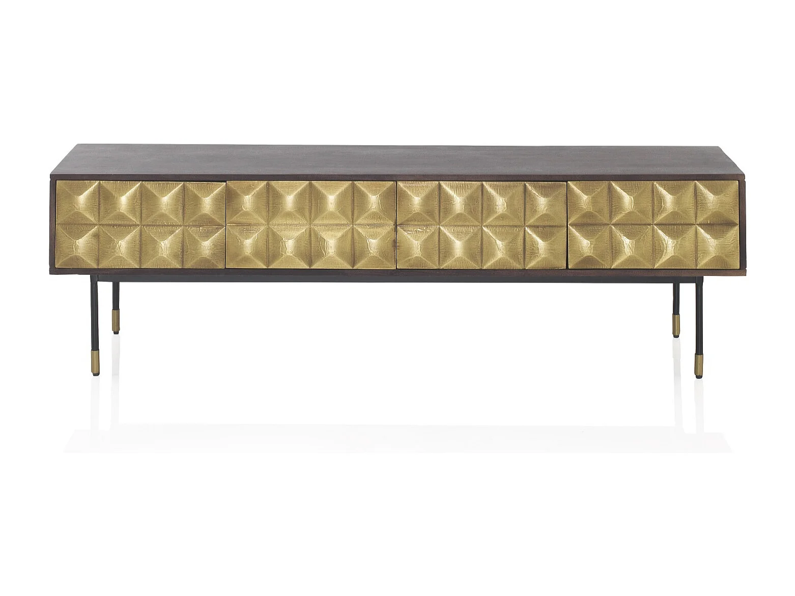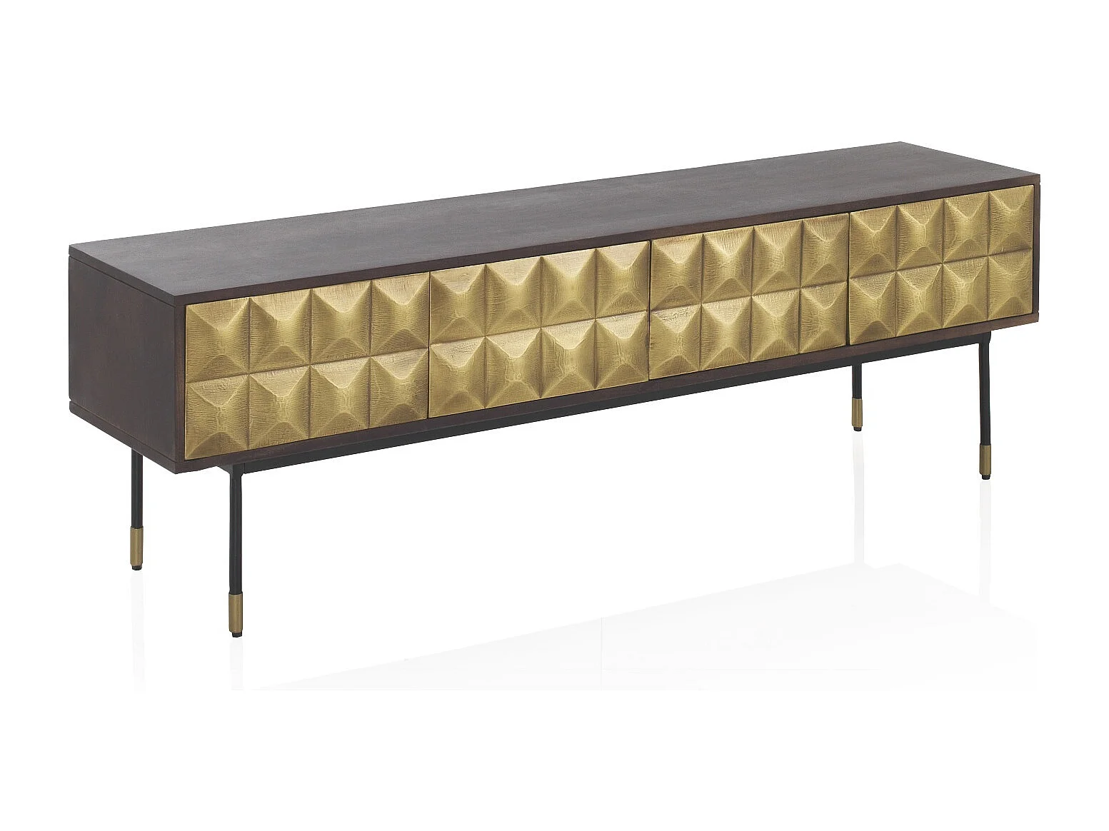 Meuble TV 4 portes en bois de manguier massif avec façade en laiton doré