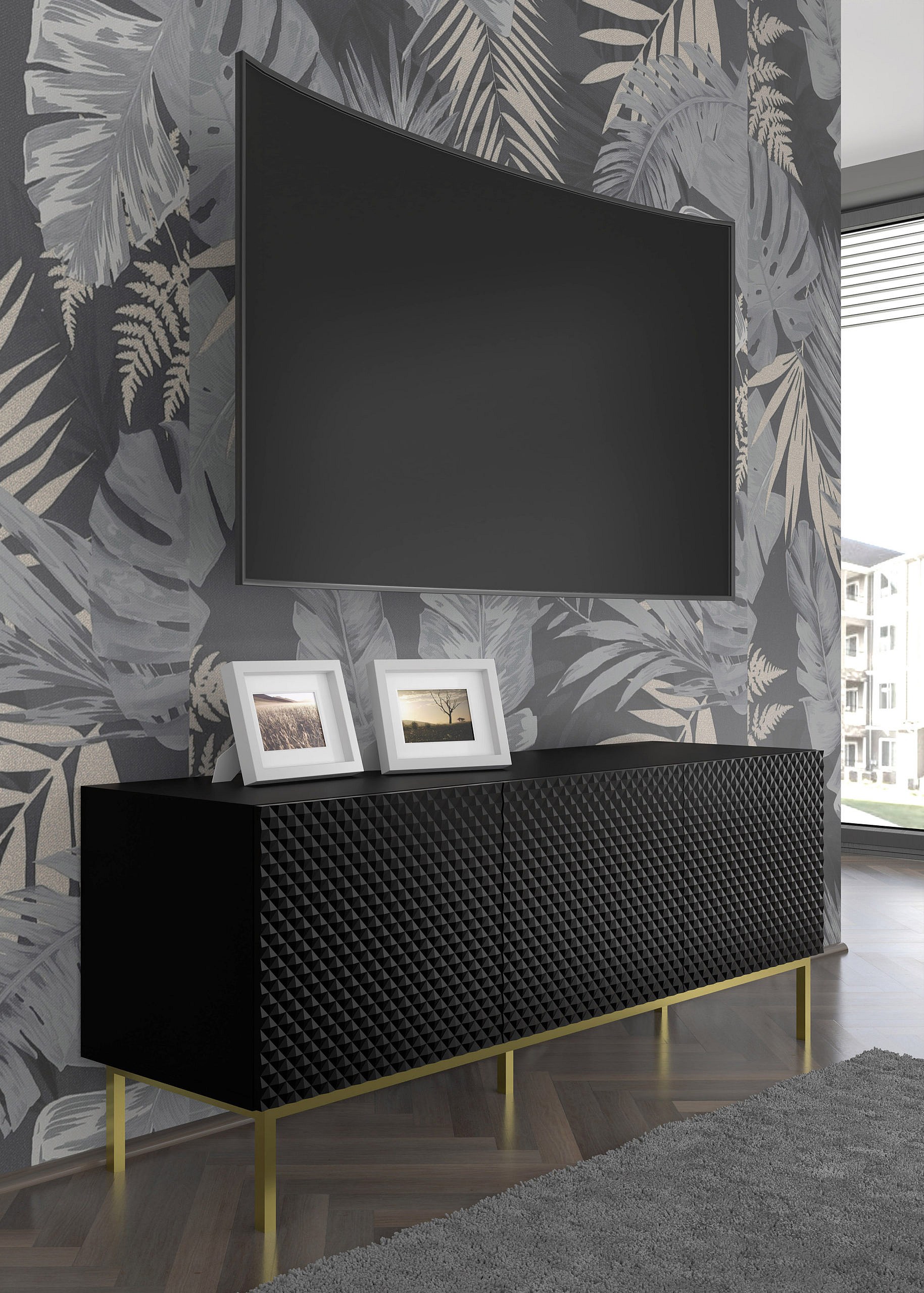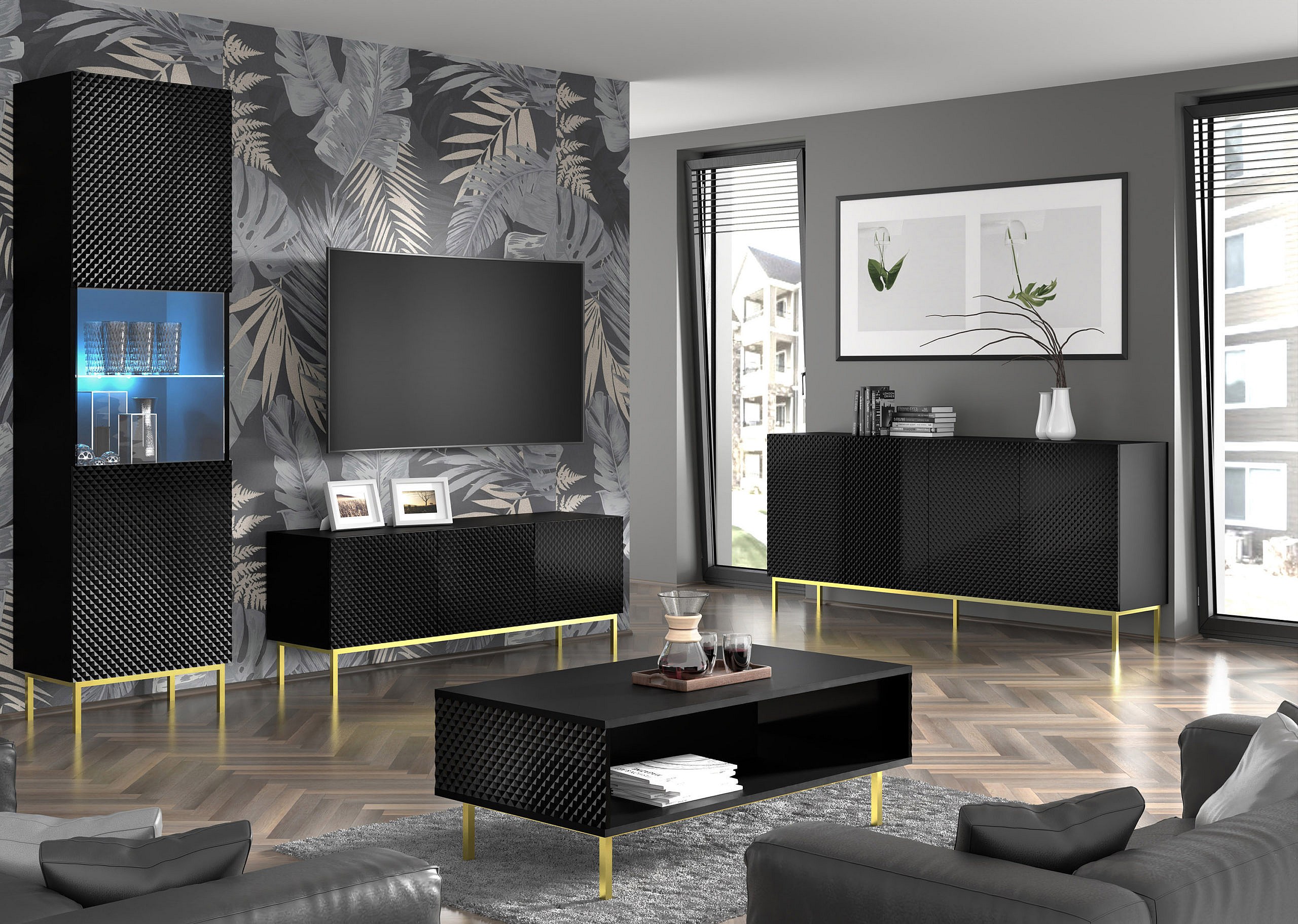 Meuble TV Ravenna C 150 cm 3D noir brillant avec cadre