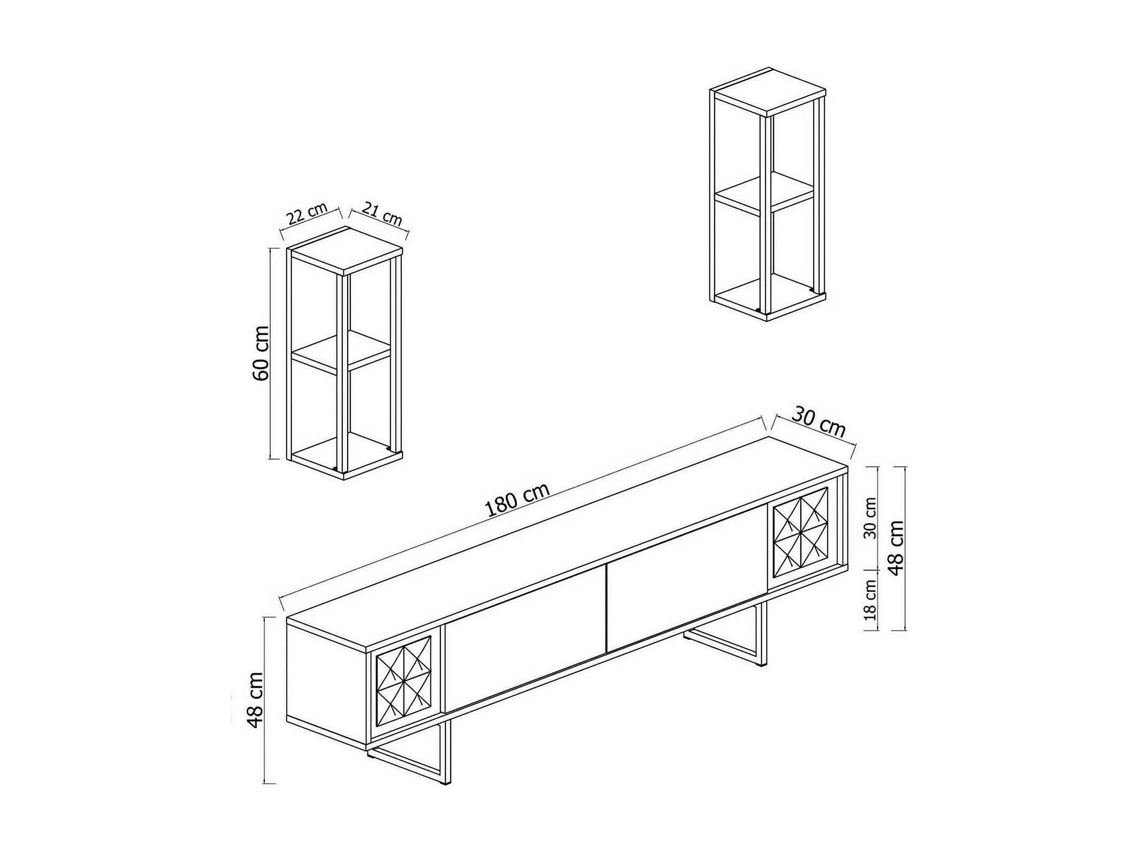 Meuble TV Ananke, Buffet de salon, Armoire basse pour TV, Base murale de rangement, 180x30h48 cm, Noyer et Noir
