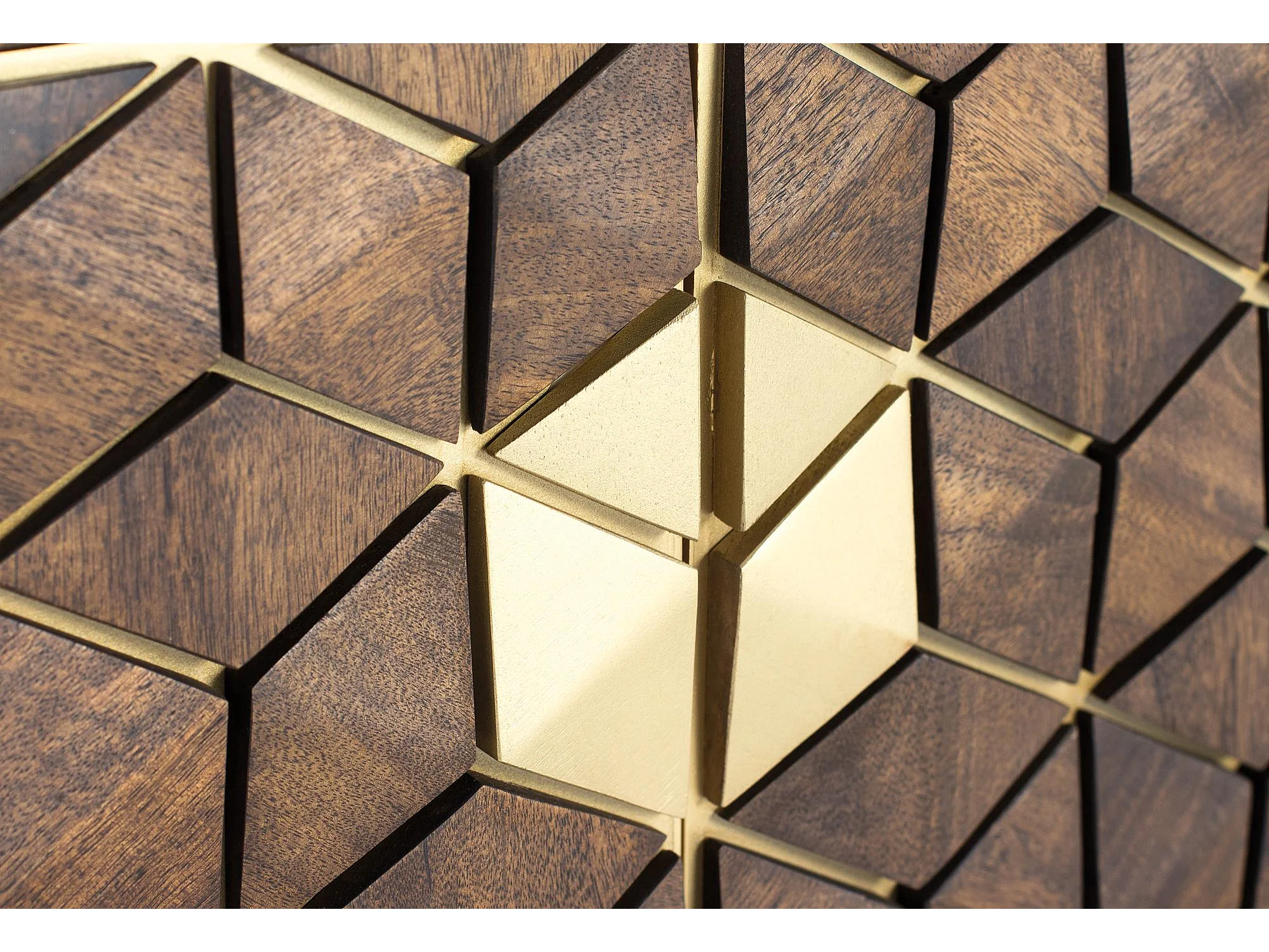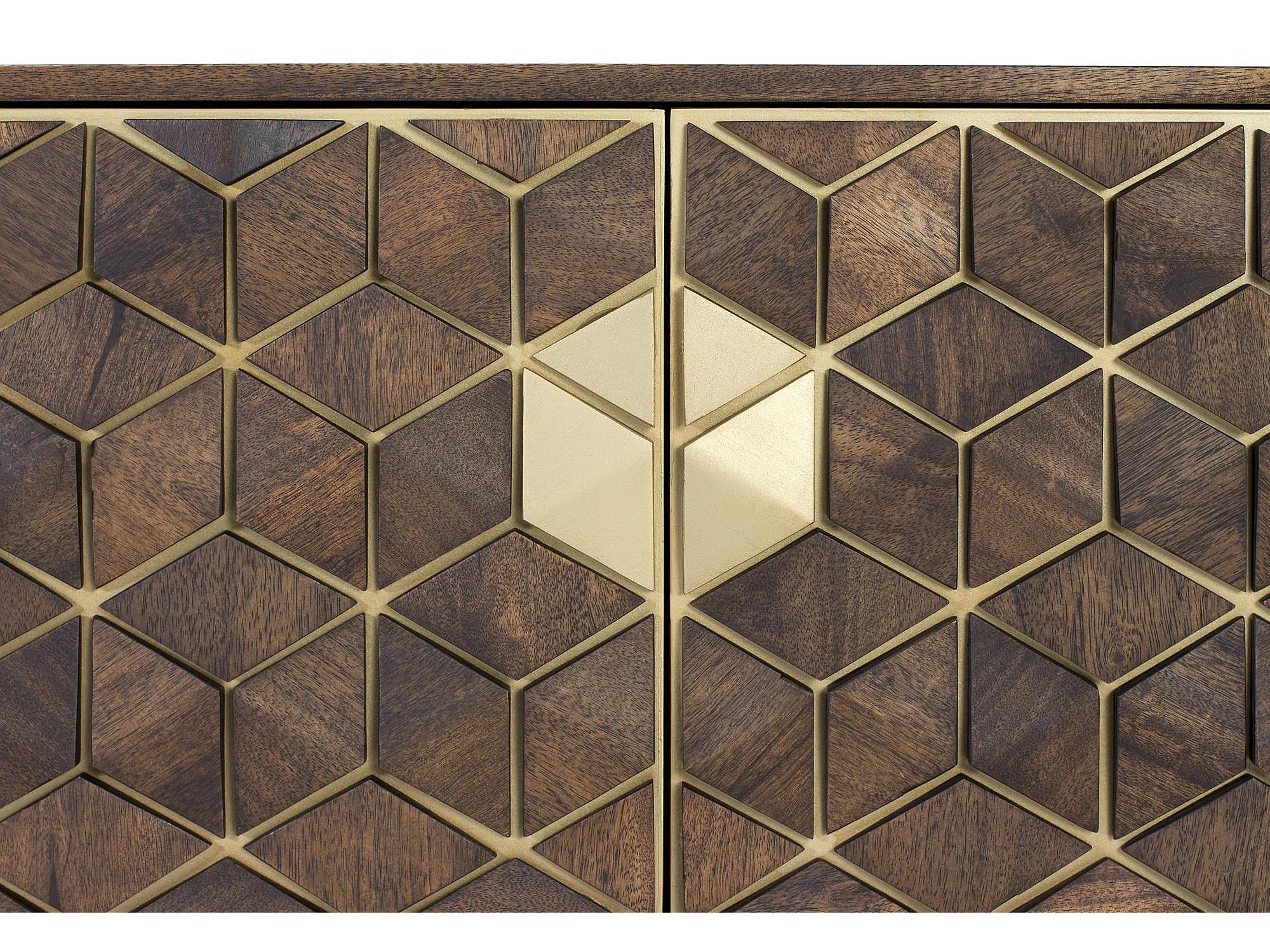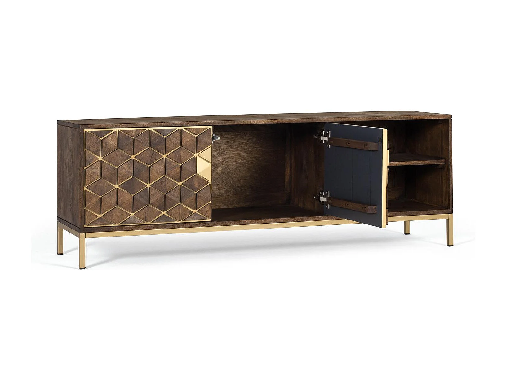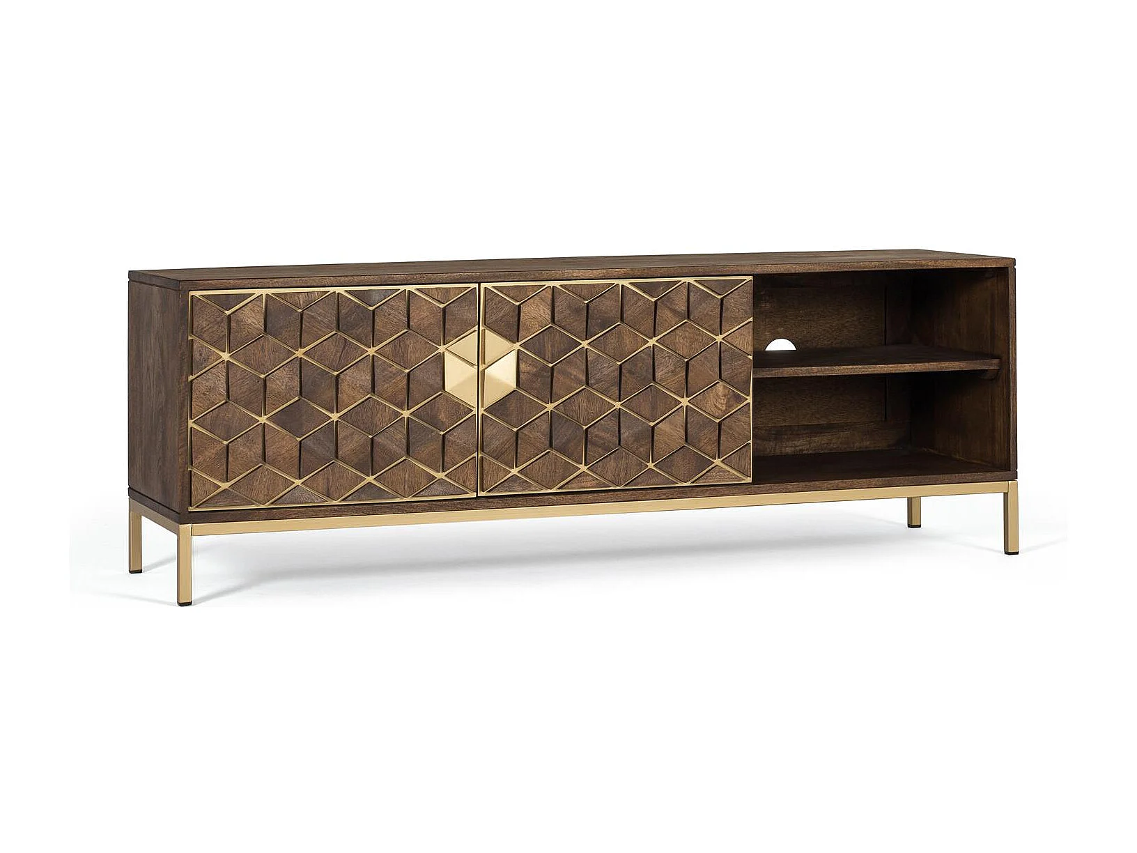 Meuble TV en bois manguier noyer et métal doré
