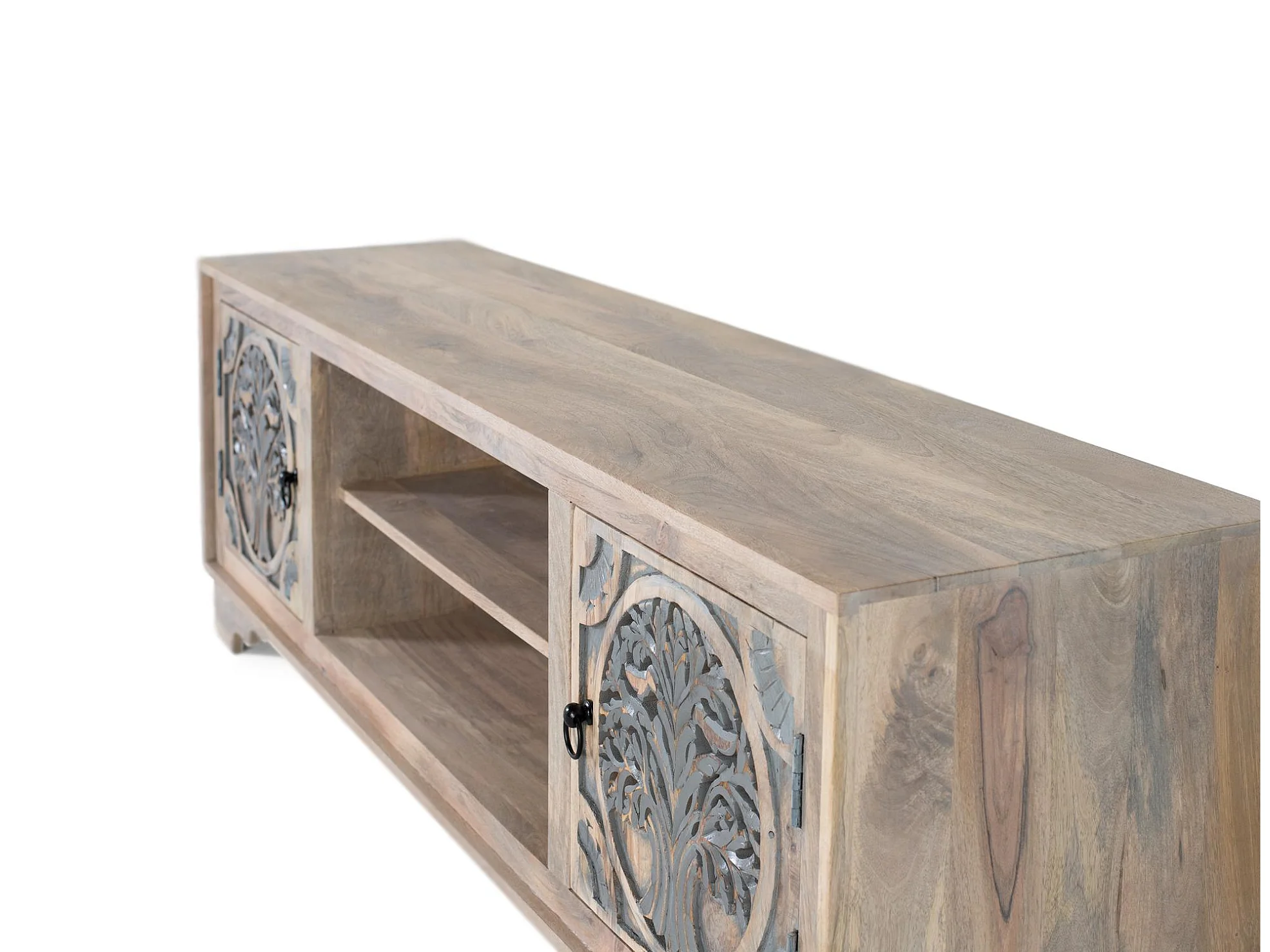 Meuble TV avec 2 portes et 2 compartiments en bois de manguier