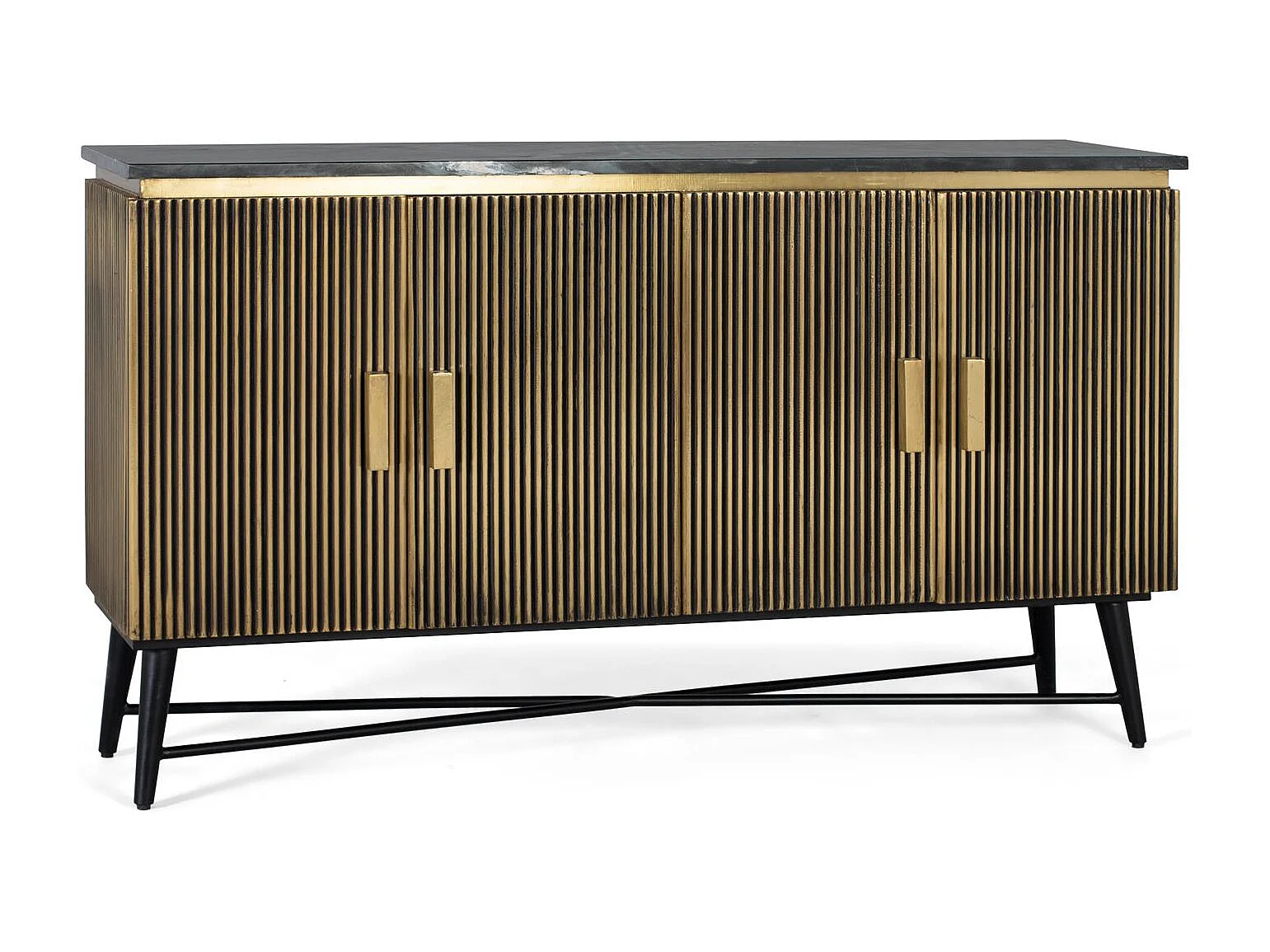 Buffet avec 4 portes en bois recouvert de bronze et plateau en marbre