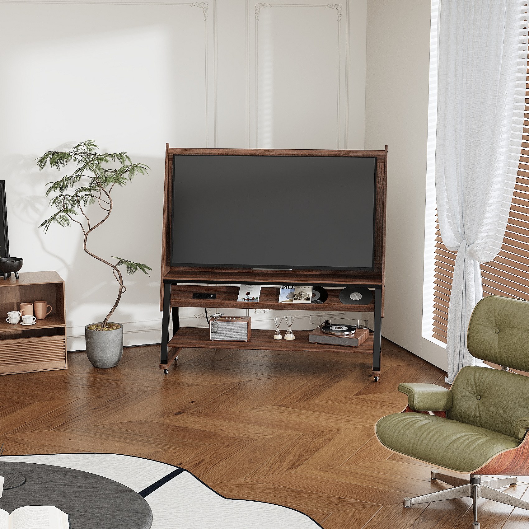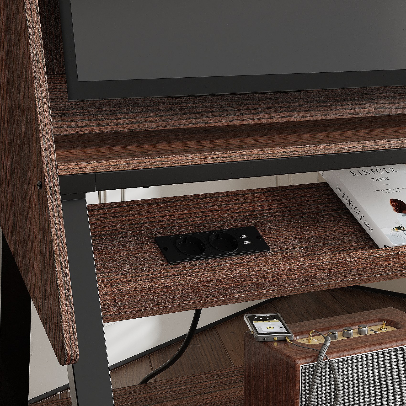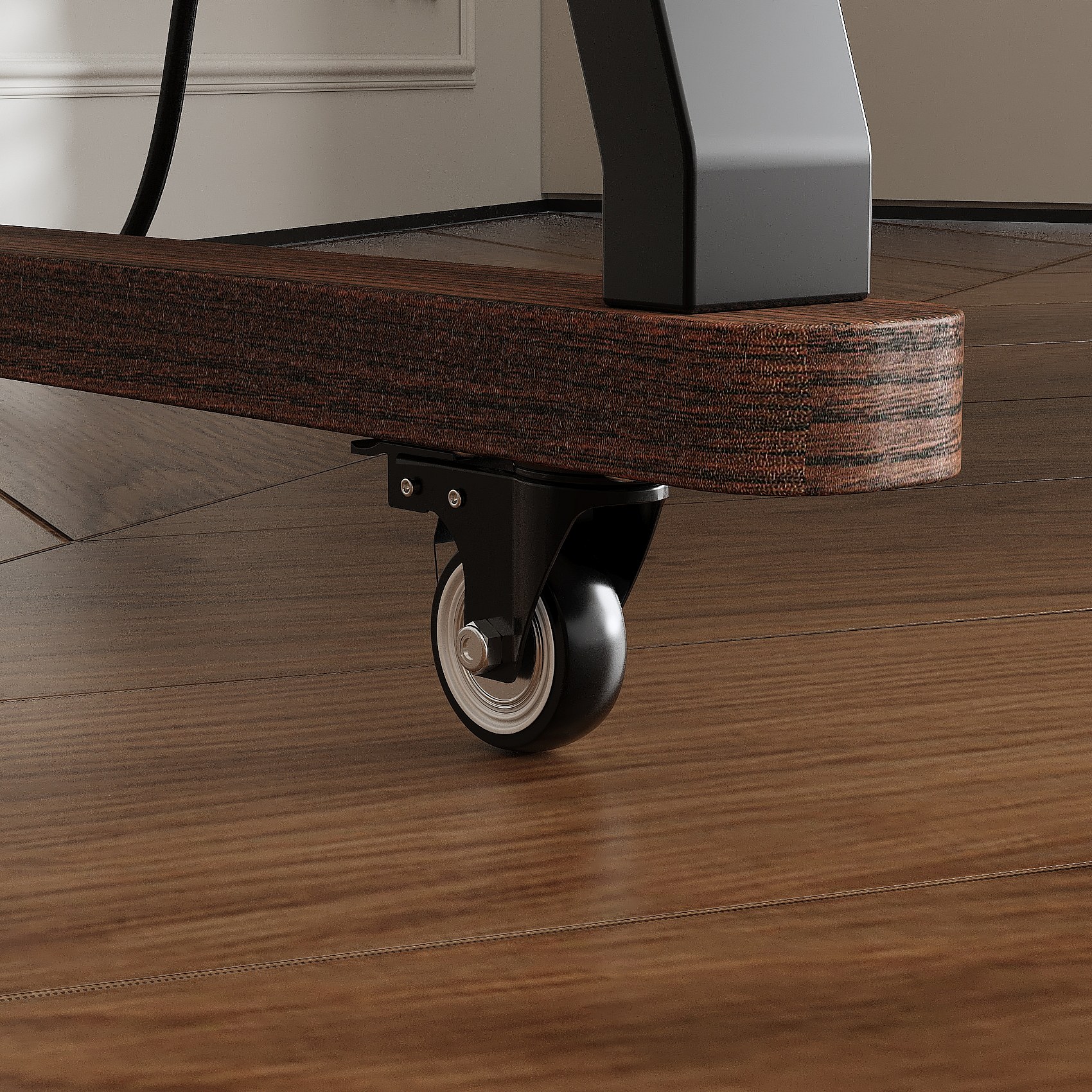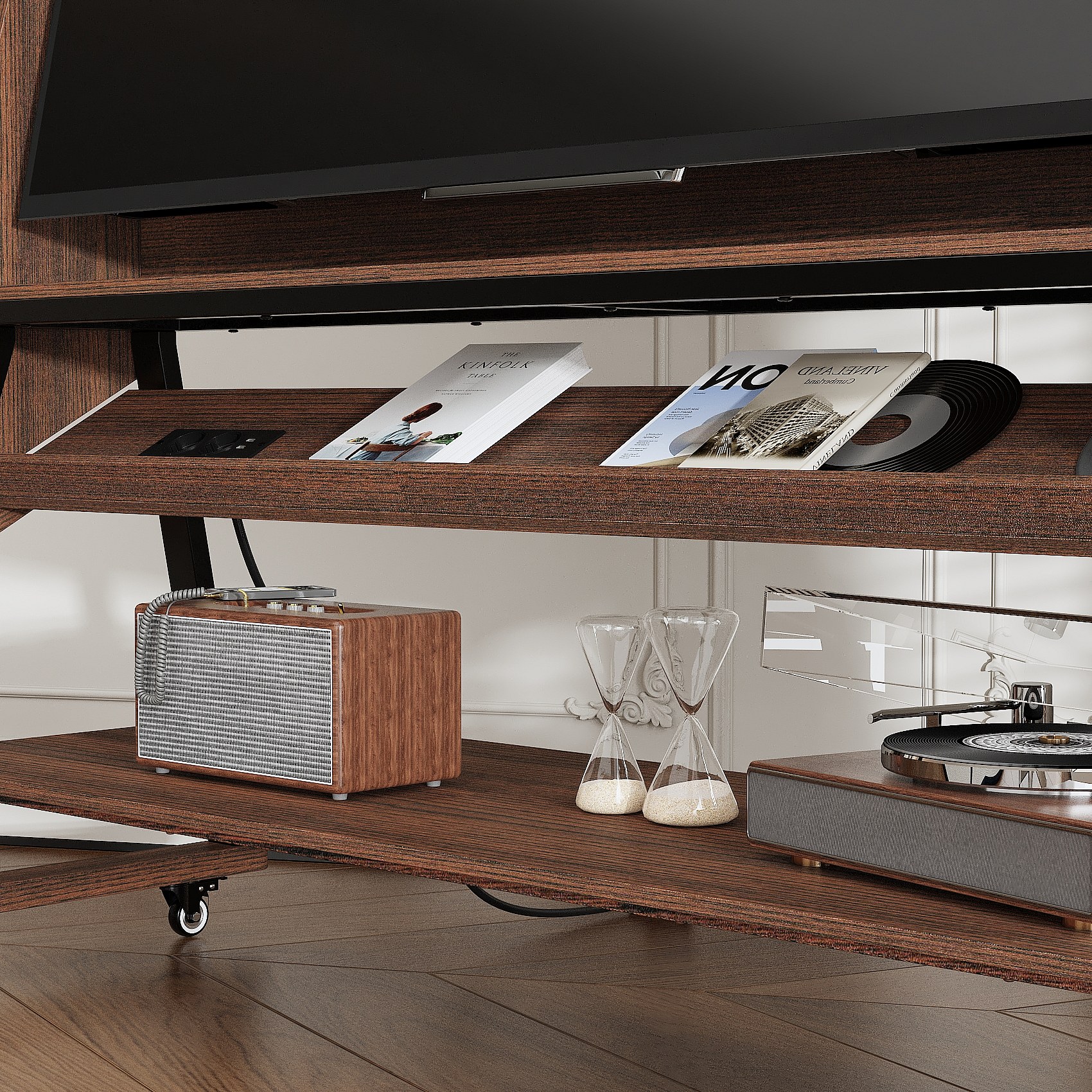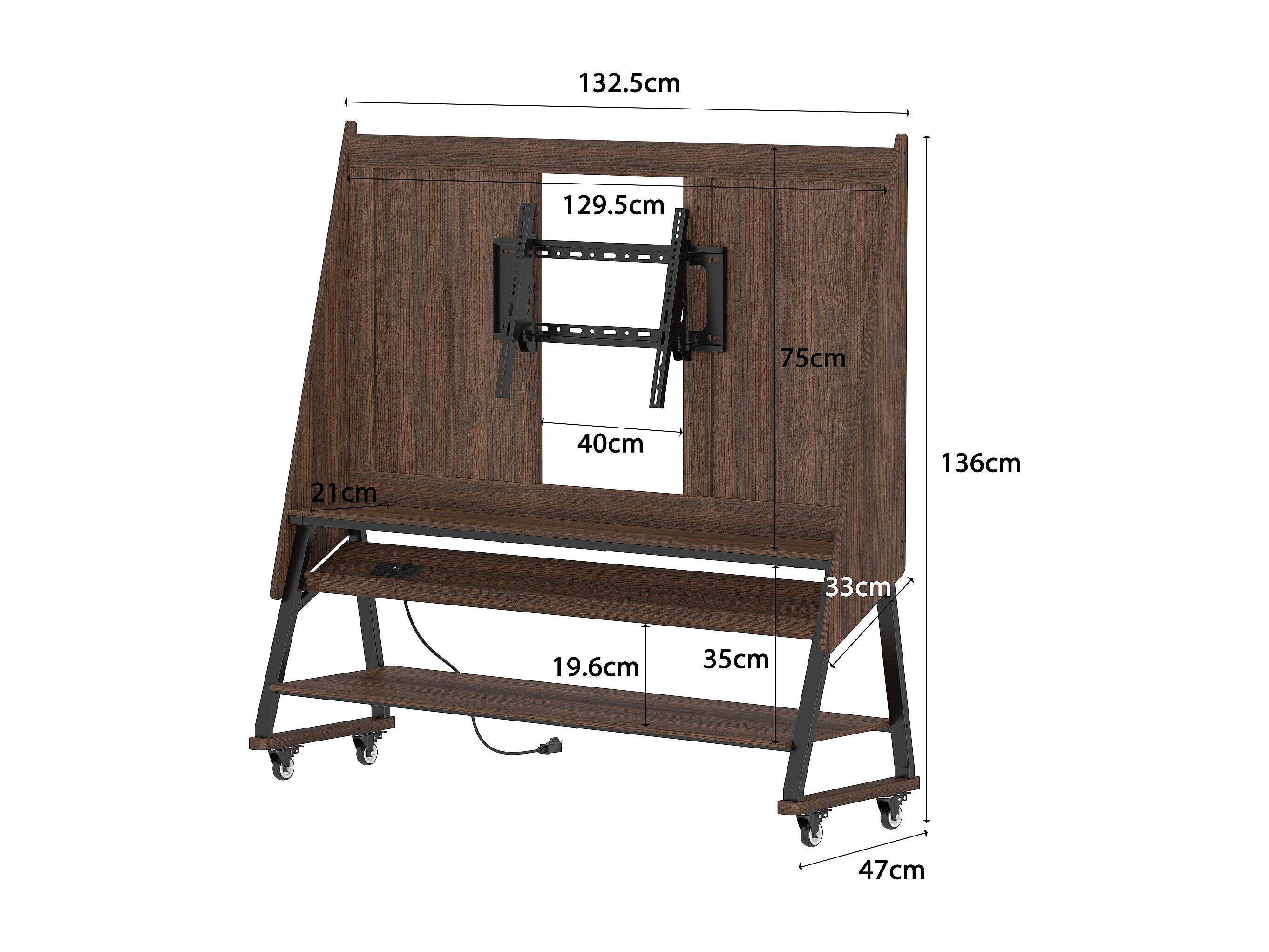 Meuble TV avec 3 Étagères, 2 Prises et 2 Ports USB, Cadre en Métal, à Roulettes, 133 x 47 x 136 CM, Salon, Café