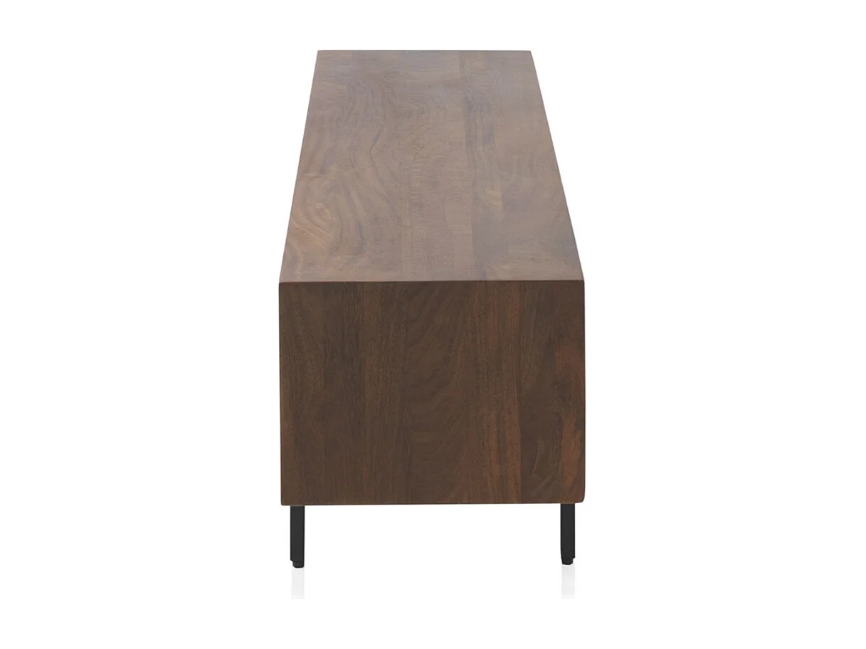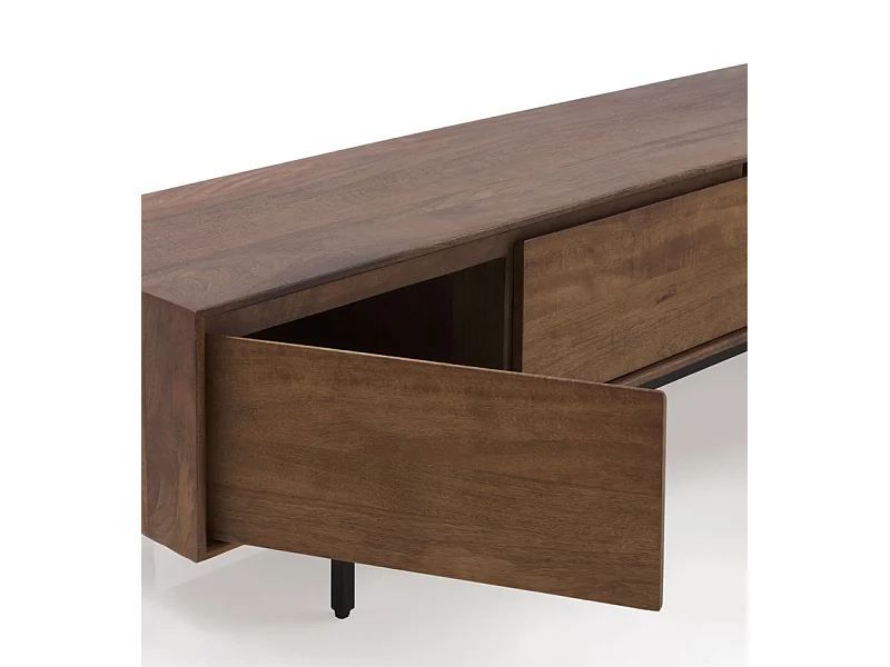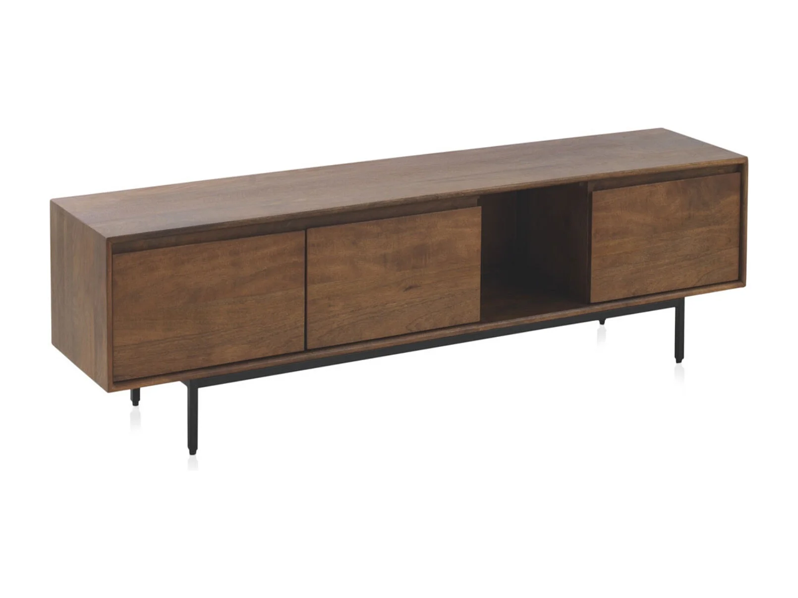 Meuble TV 3 portes en bois massif de manguier et base métallique