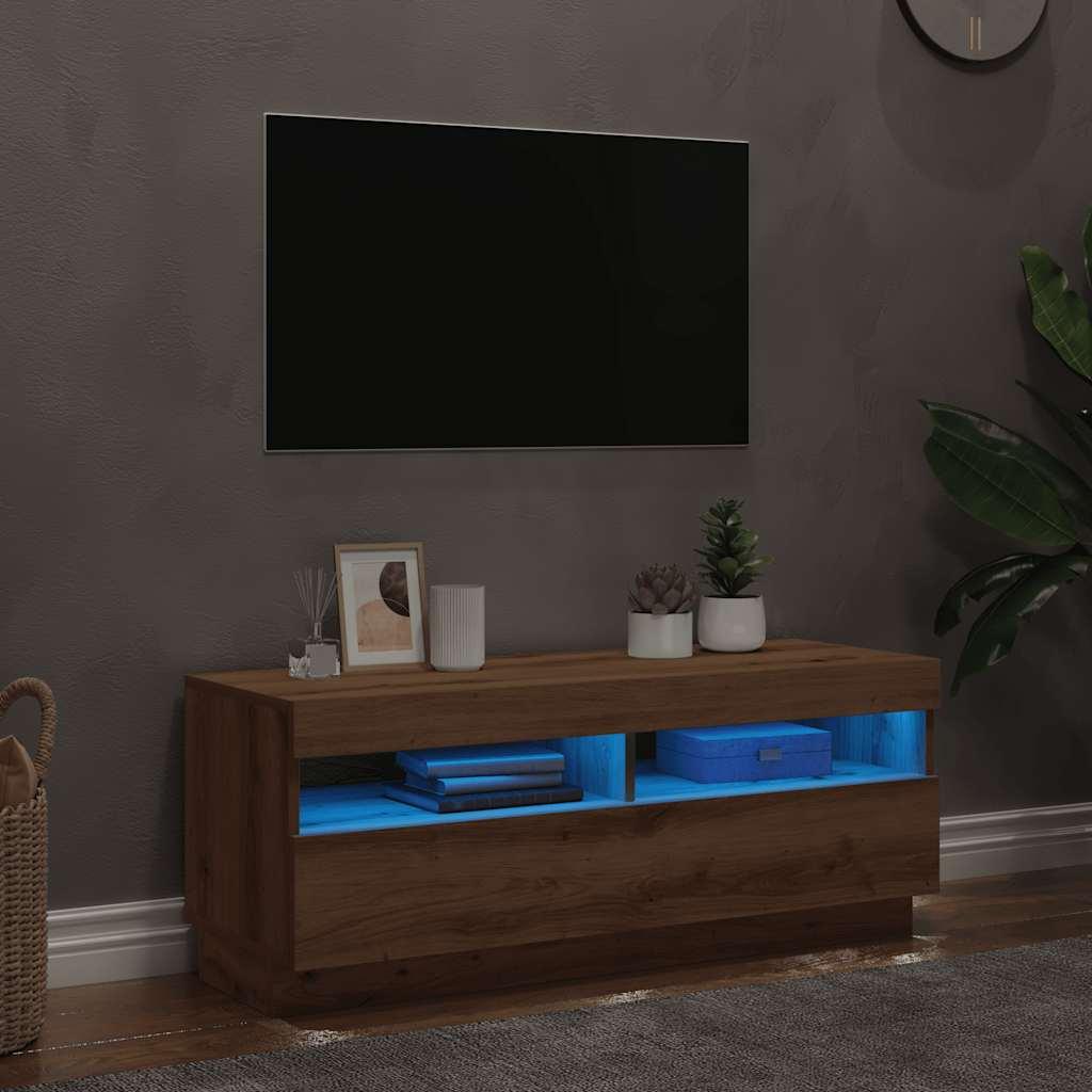 Meuble TV avec lumières LED chêne artisanal bois d'ingénierie
