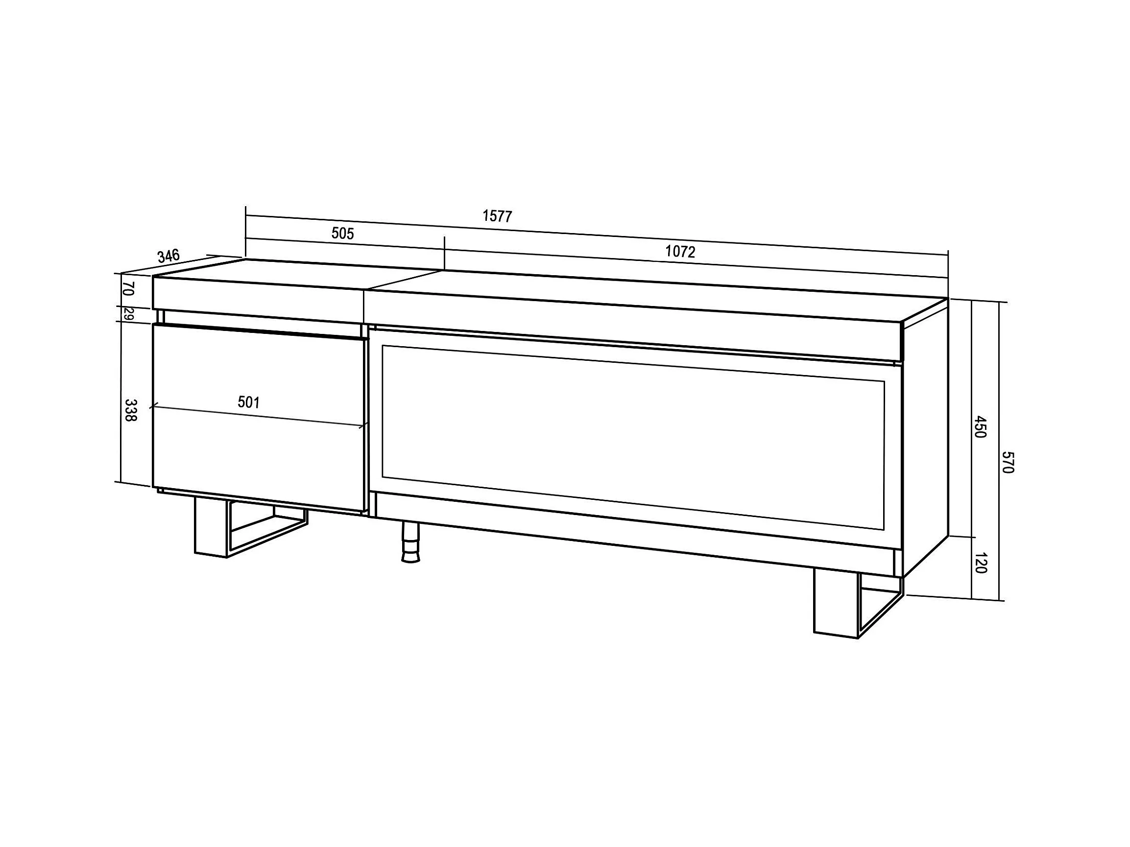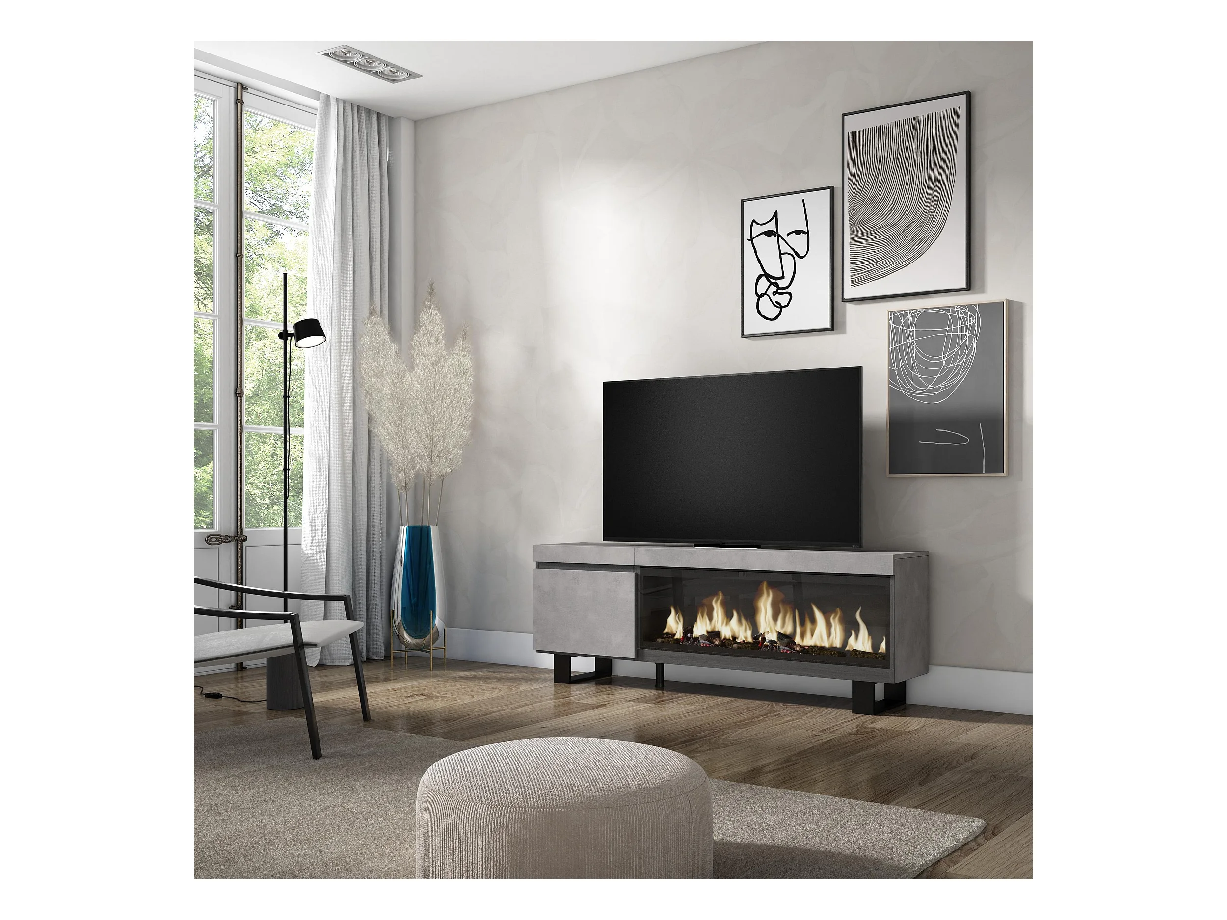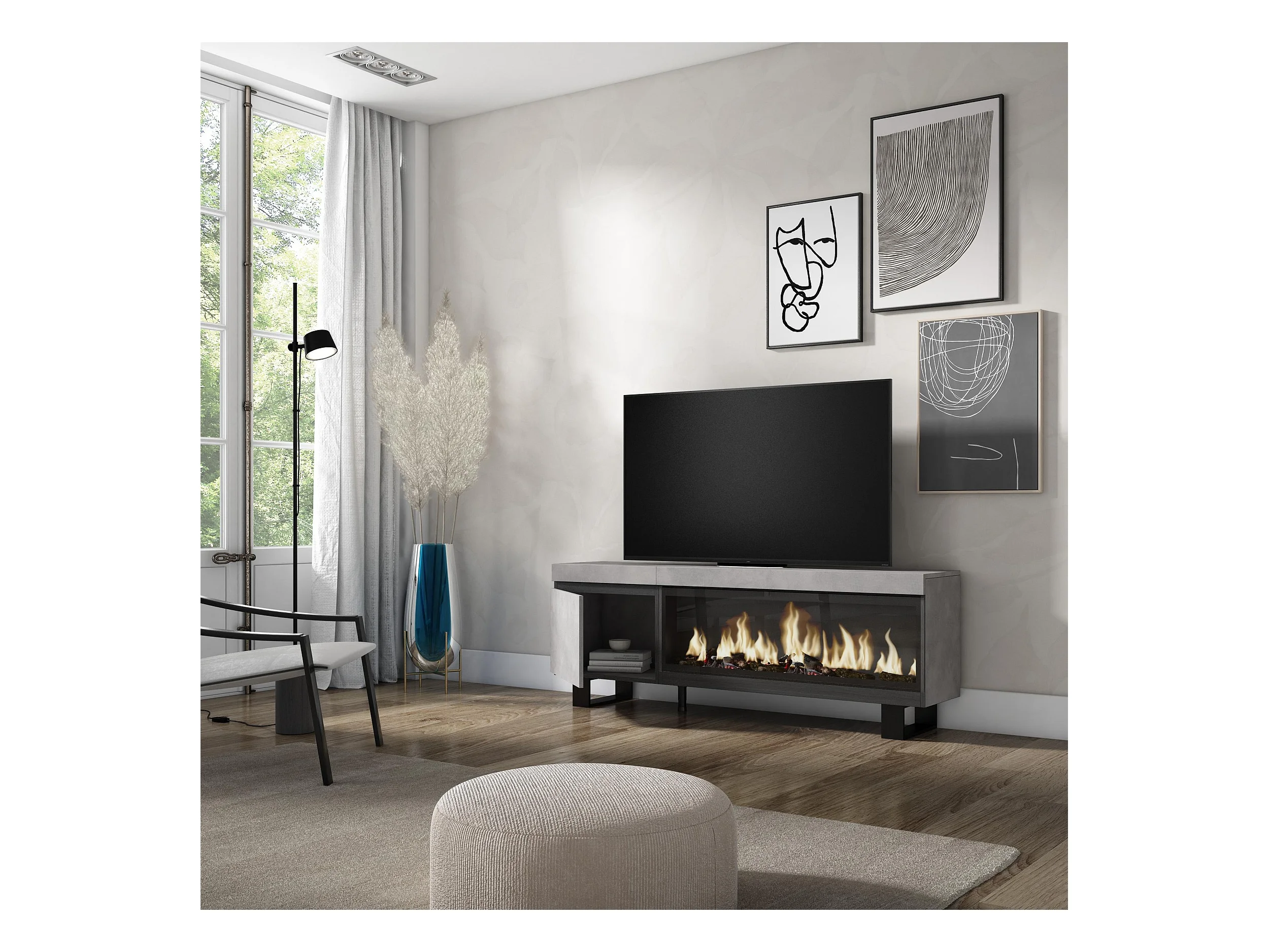 Meuble TV, Banc Télé, 158x35x57cm, Pour les TV jusqu'à 65", Cheminée électrique XXL, Design industriel, Ciment