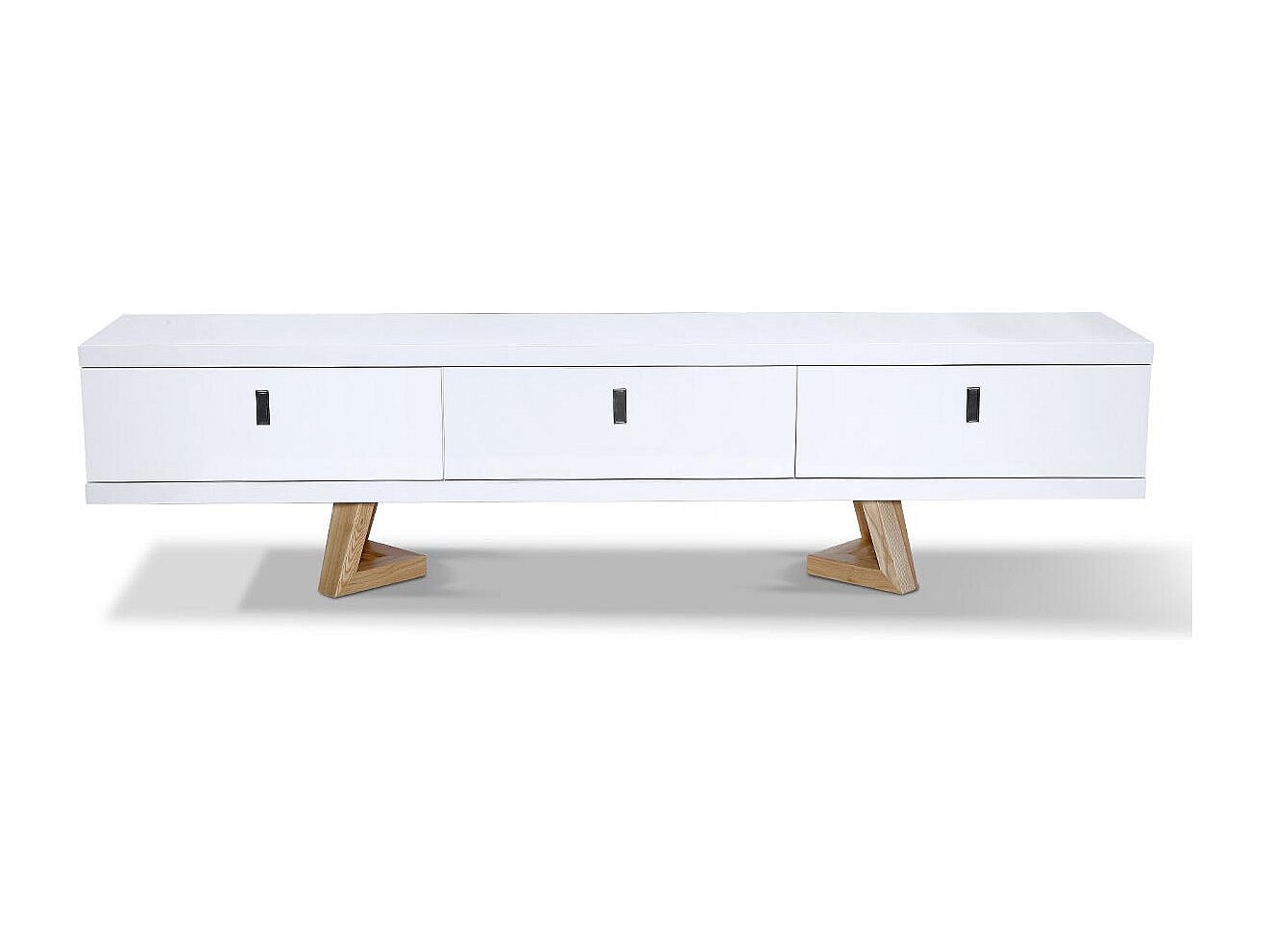 Meuble TV bois/laqué DUNE - Frêne/Blanc