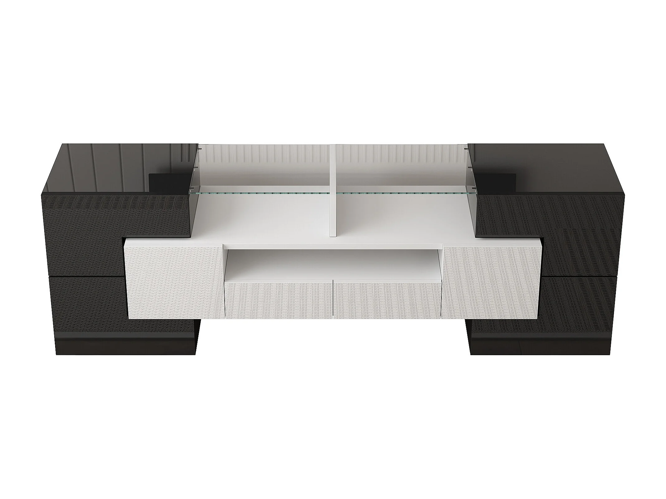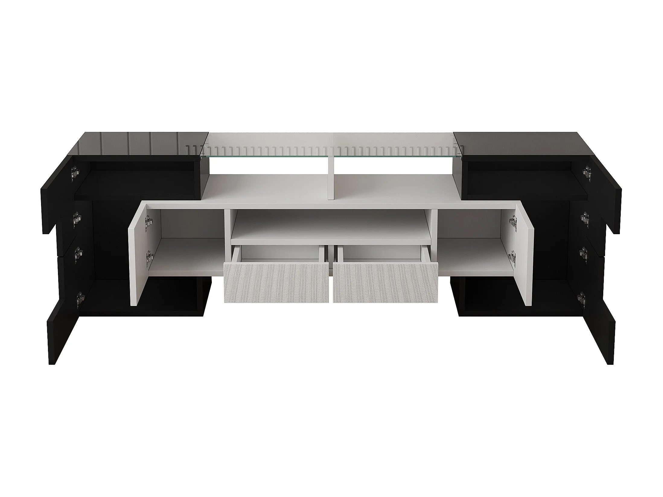 Meuble TV brillant - Meuble TV de salon avec éclairage LED - 6 portes et 2 tiroirs - noir et blanc