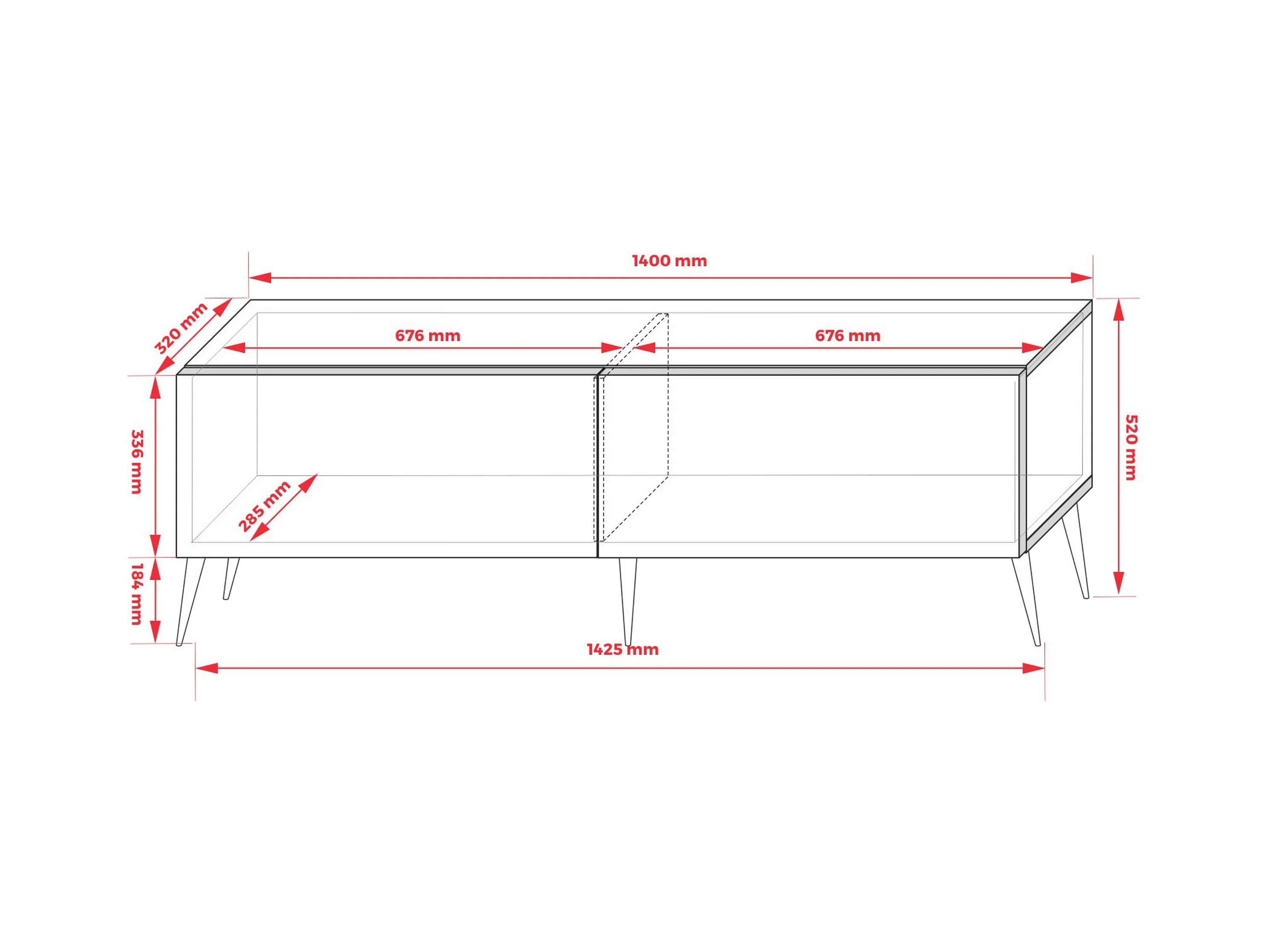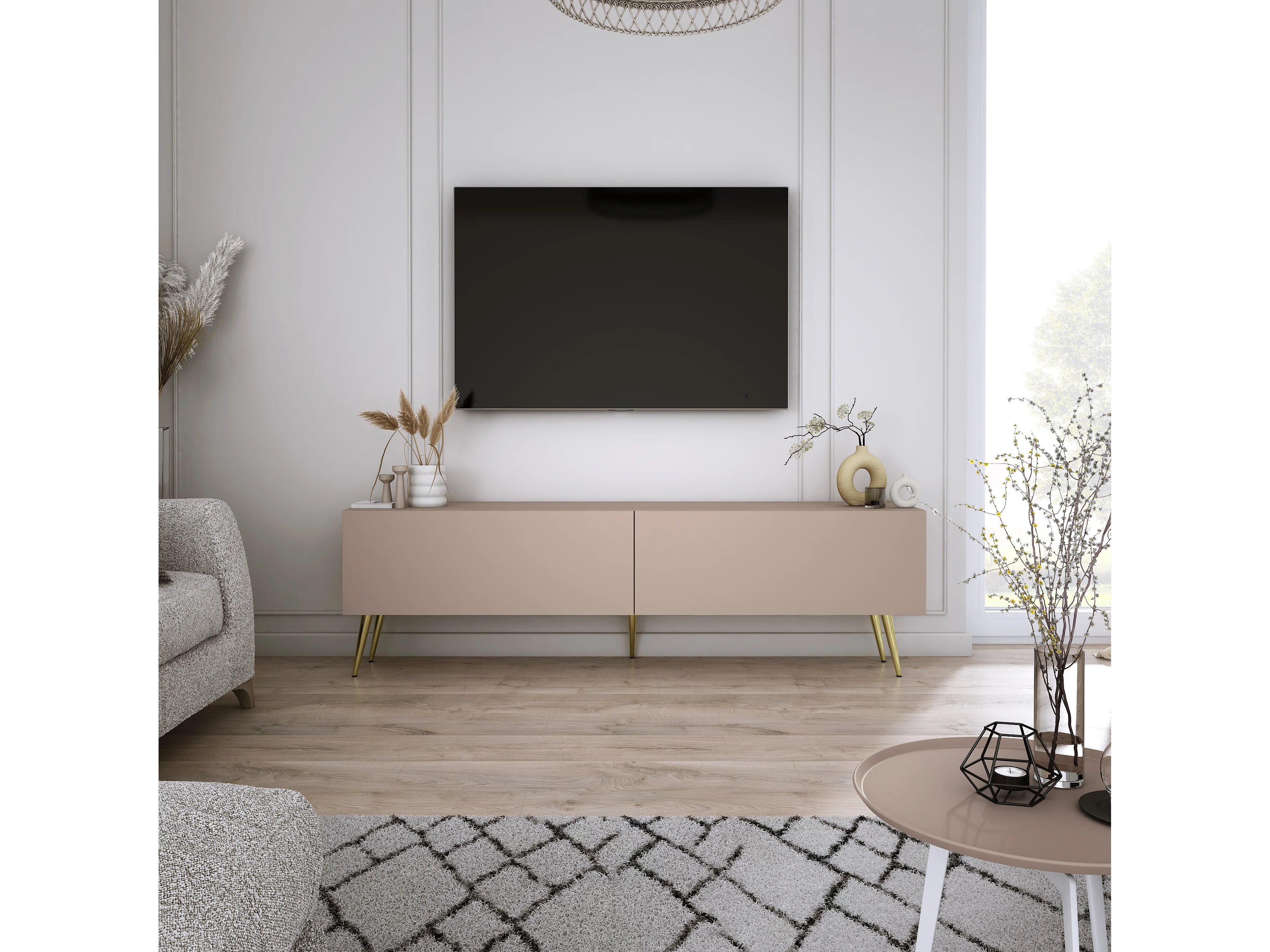 Meuble TV : Brun Caramel, 140 x 52 x 32 cm, pieds dorées