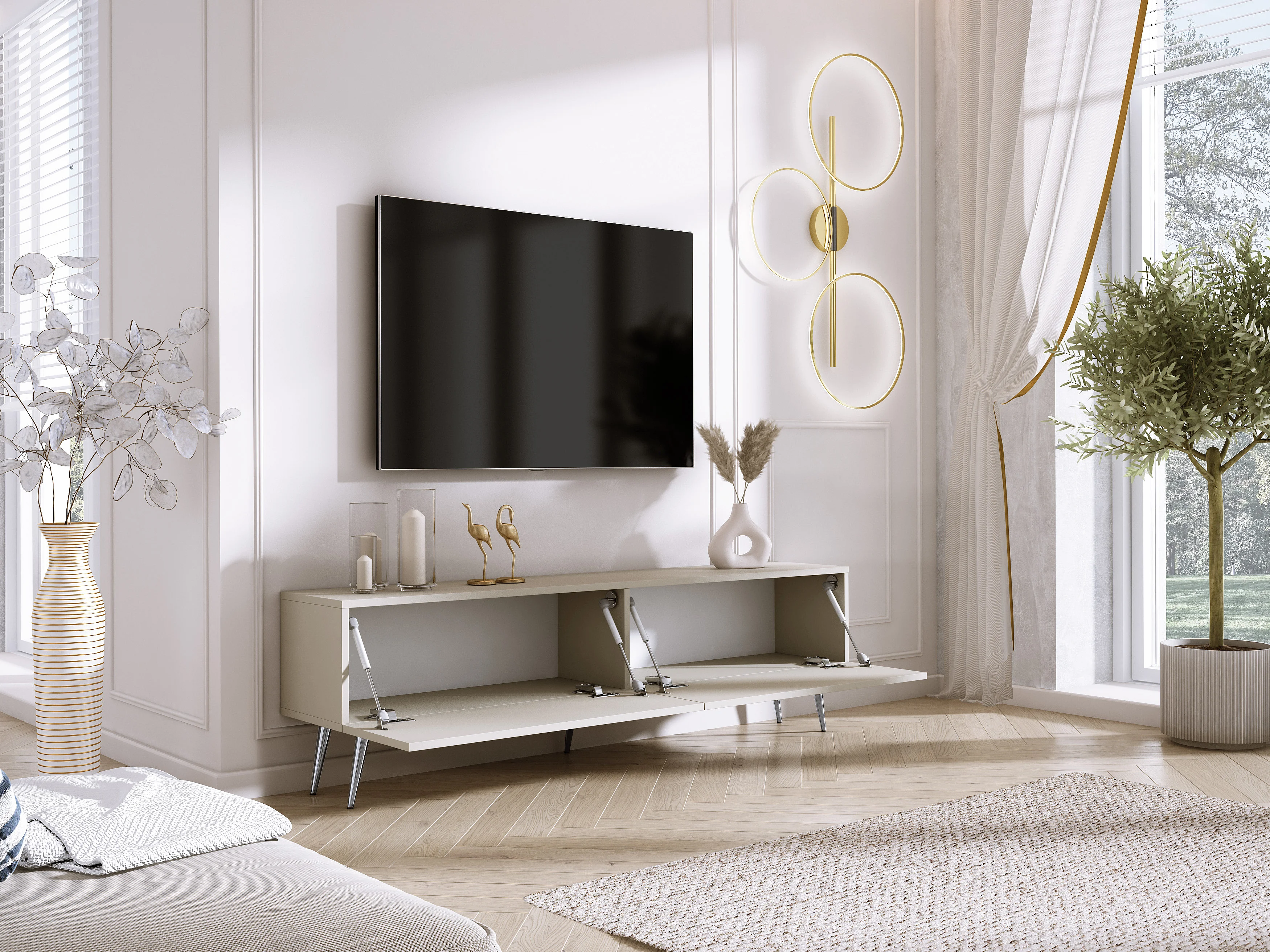 Meuble TV : Cachemire, pieds Chrome, 170 x 52 x 32 cm