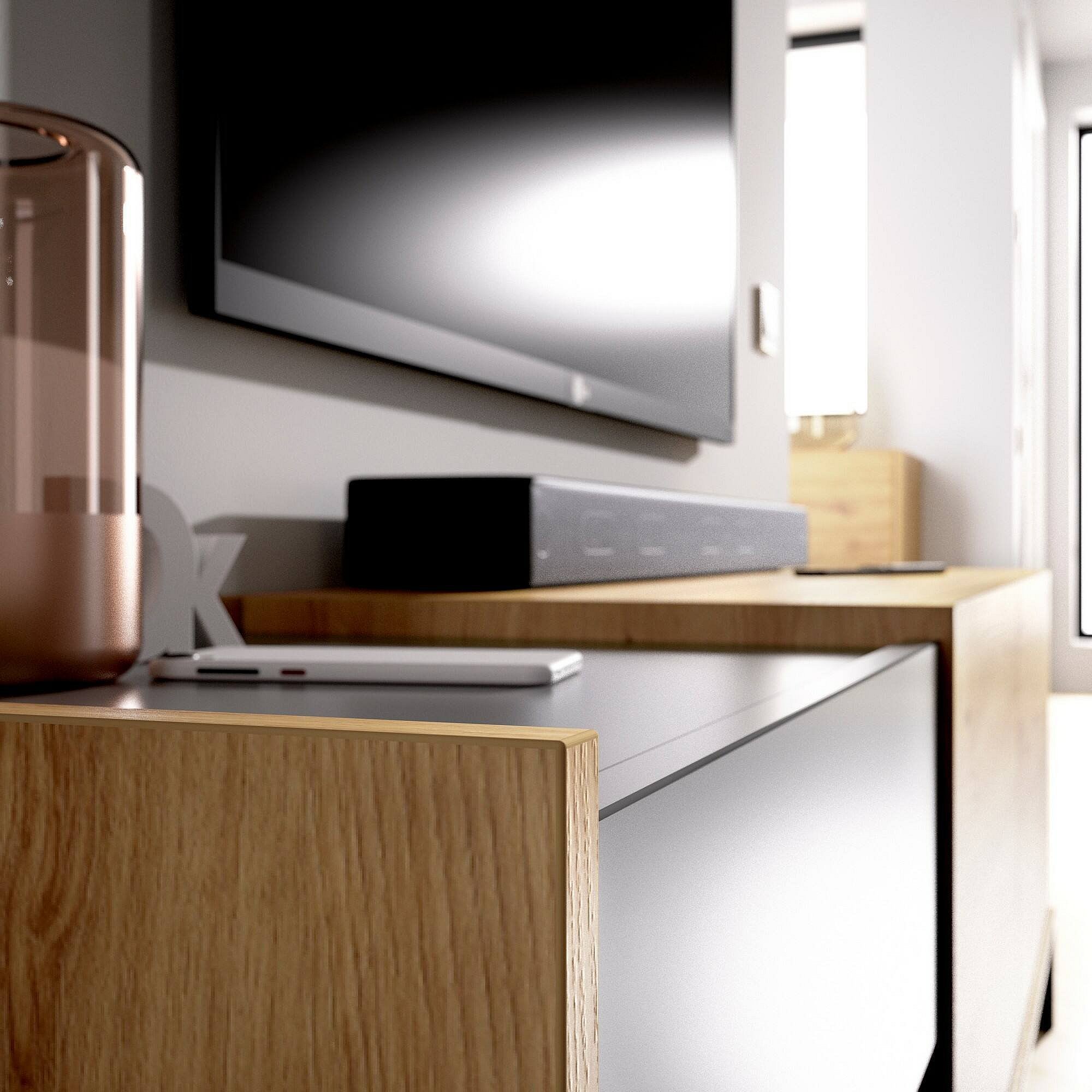 Meuble TV Cengalo, Buffet bas de salon, Buffet de salon pour télévision, 164x39h49 cm, Chêne noué et Anthracite