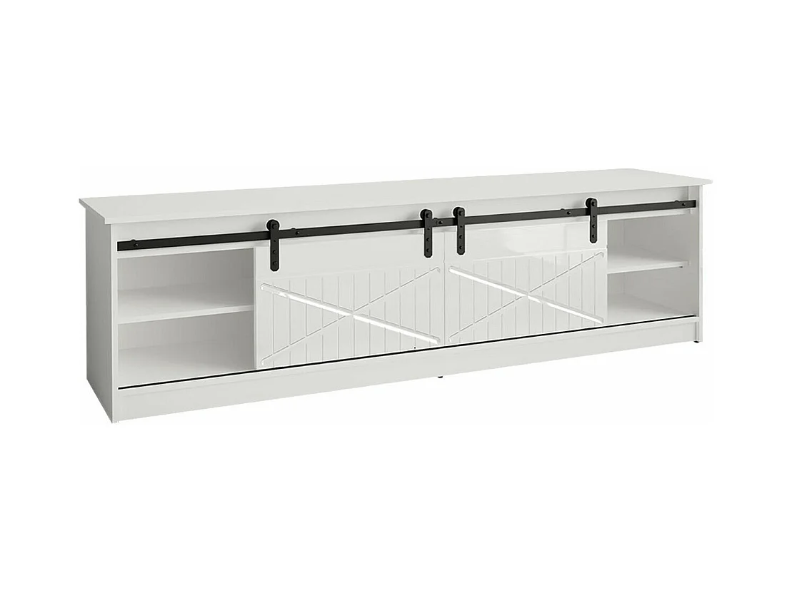 Meuble TV Charlotte 165, Blanc|Blanc brillant|Noir, Le nombre de portes: 2, 200x57x35cm