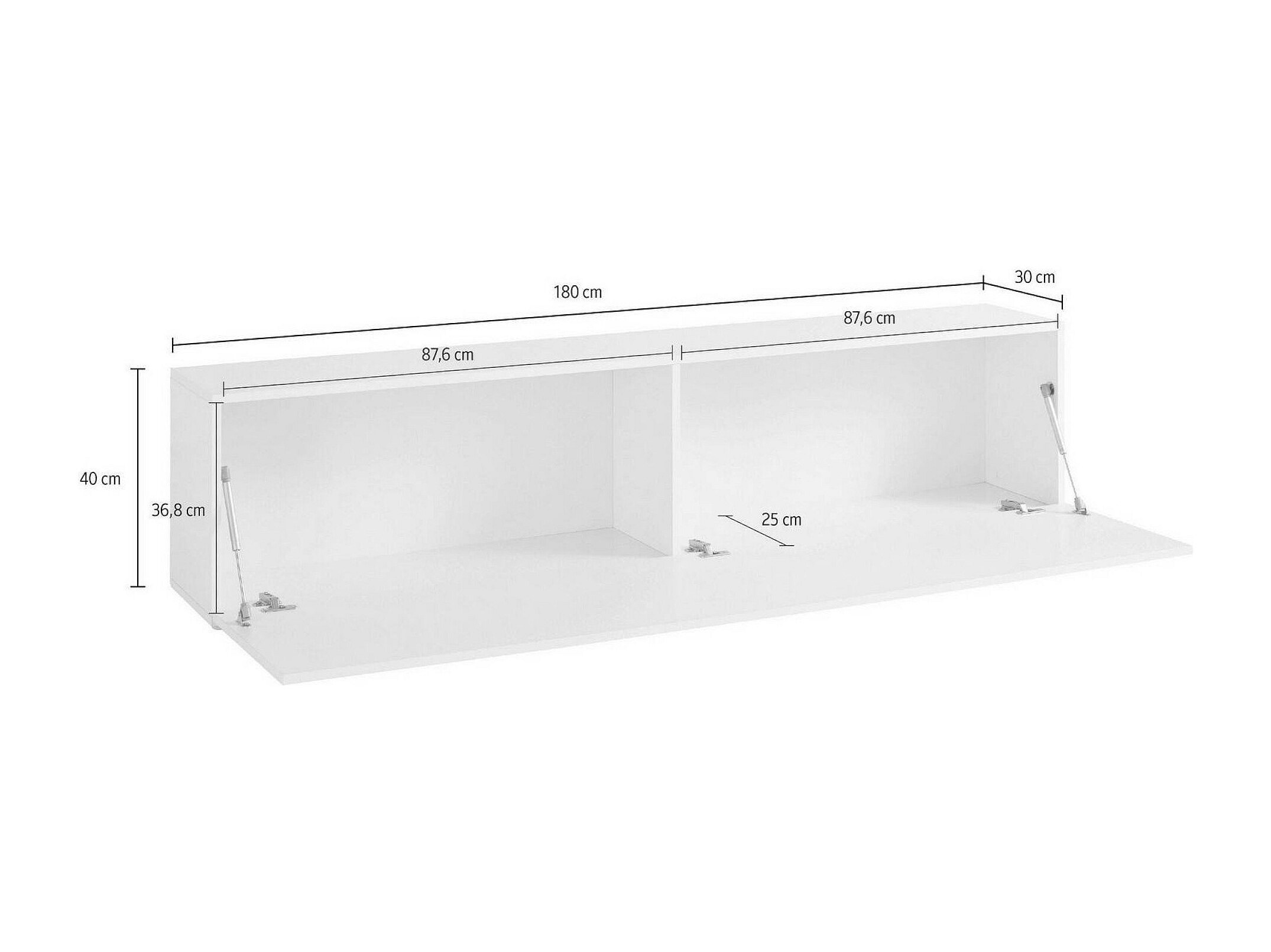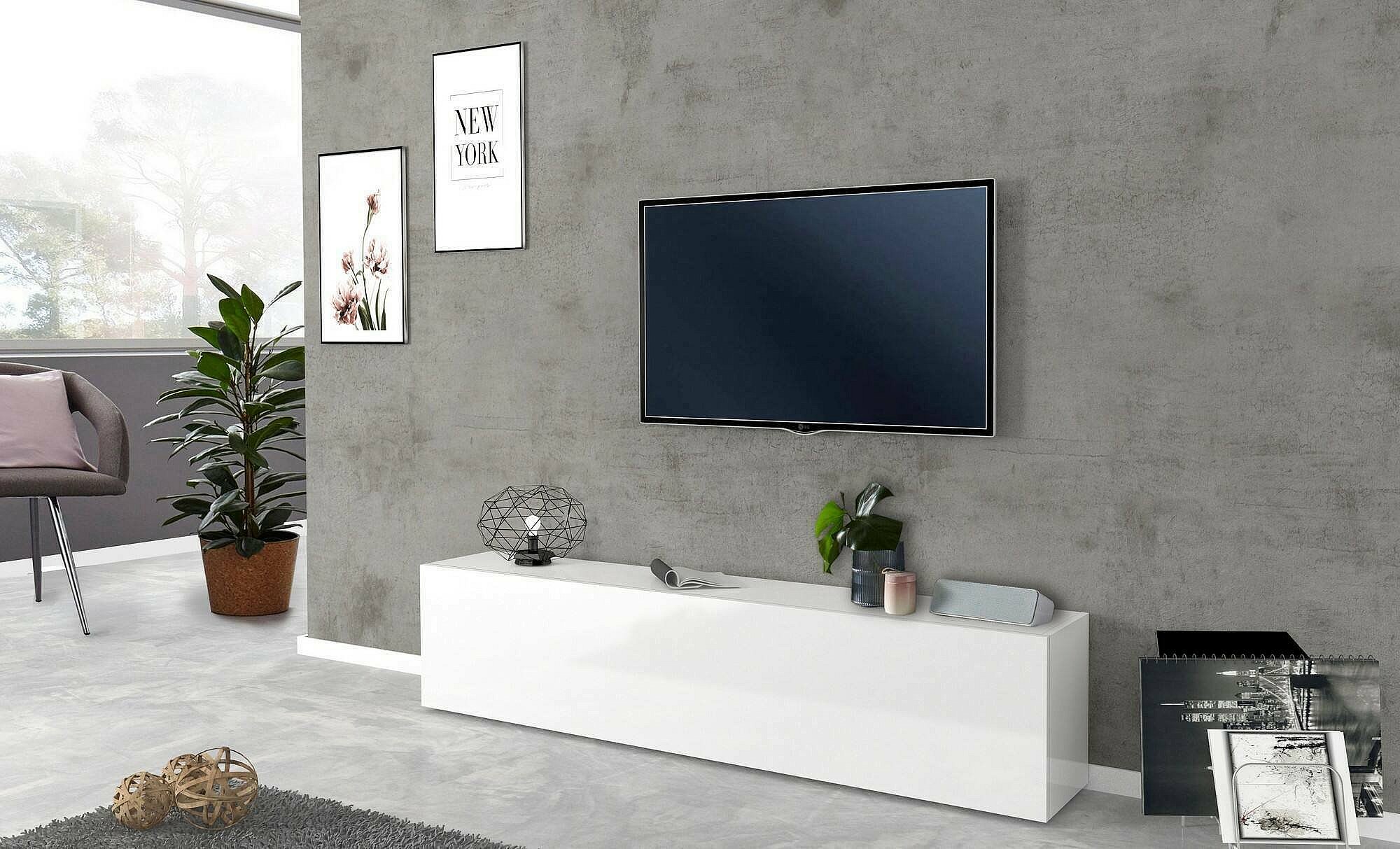Meuble TV Dbarell, Buffet bas de salon, Base pour meuble TV, 100% Made in Italy, 180x30h40 cm, Blanc brillant