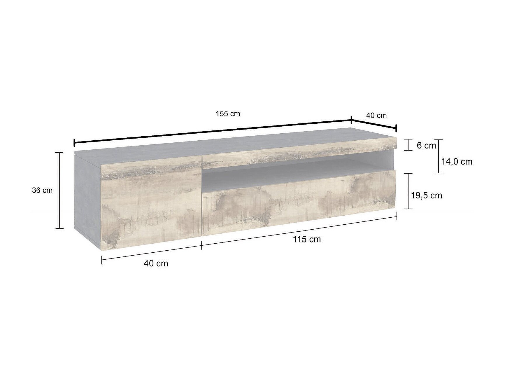 Meuble TV Dbele, Buffet bas de salon, Base pour meuble TV, 100% Made in Italy, 150x40h37 cm, Ardoise et Érable, avec lumière LED