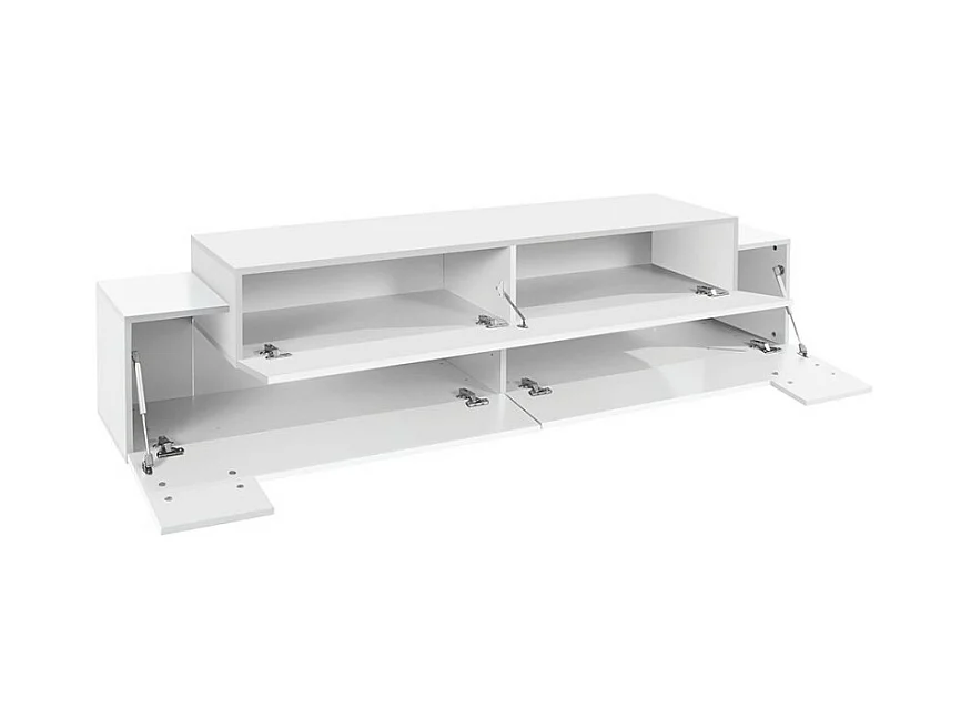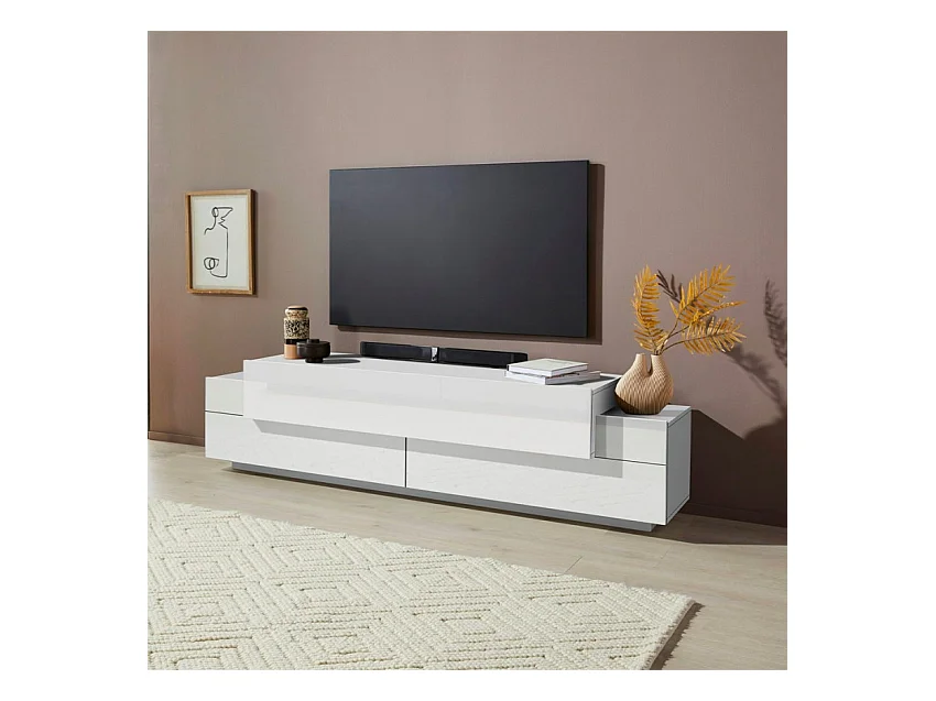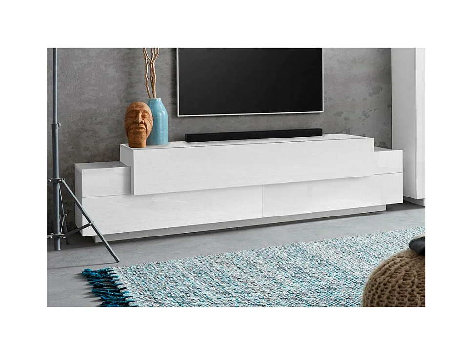 Meuble TV de salon blanc 200cm 4 armoires et 3 portes Ronda