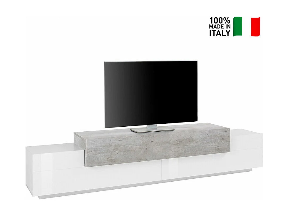 Meuble TV Design 240cm 4 armoires 3 portes blanc gris Lumen C