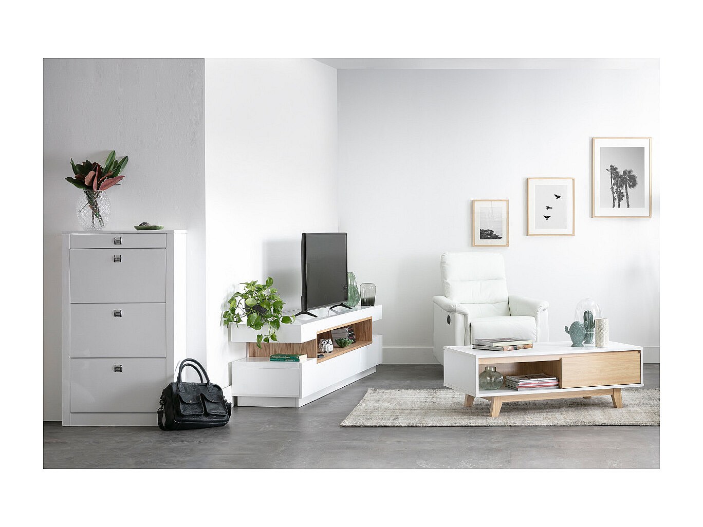 Meuble TV design blanc laqué brillant L200 cm LIVO